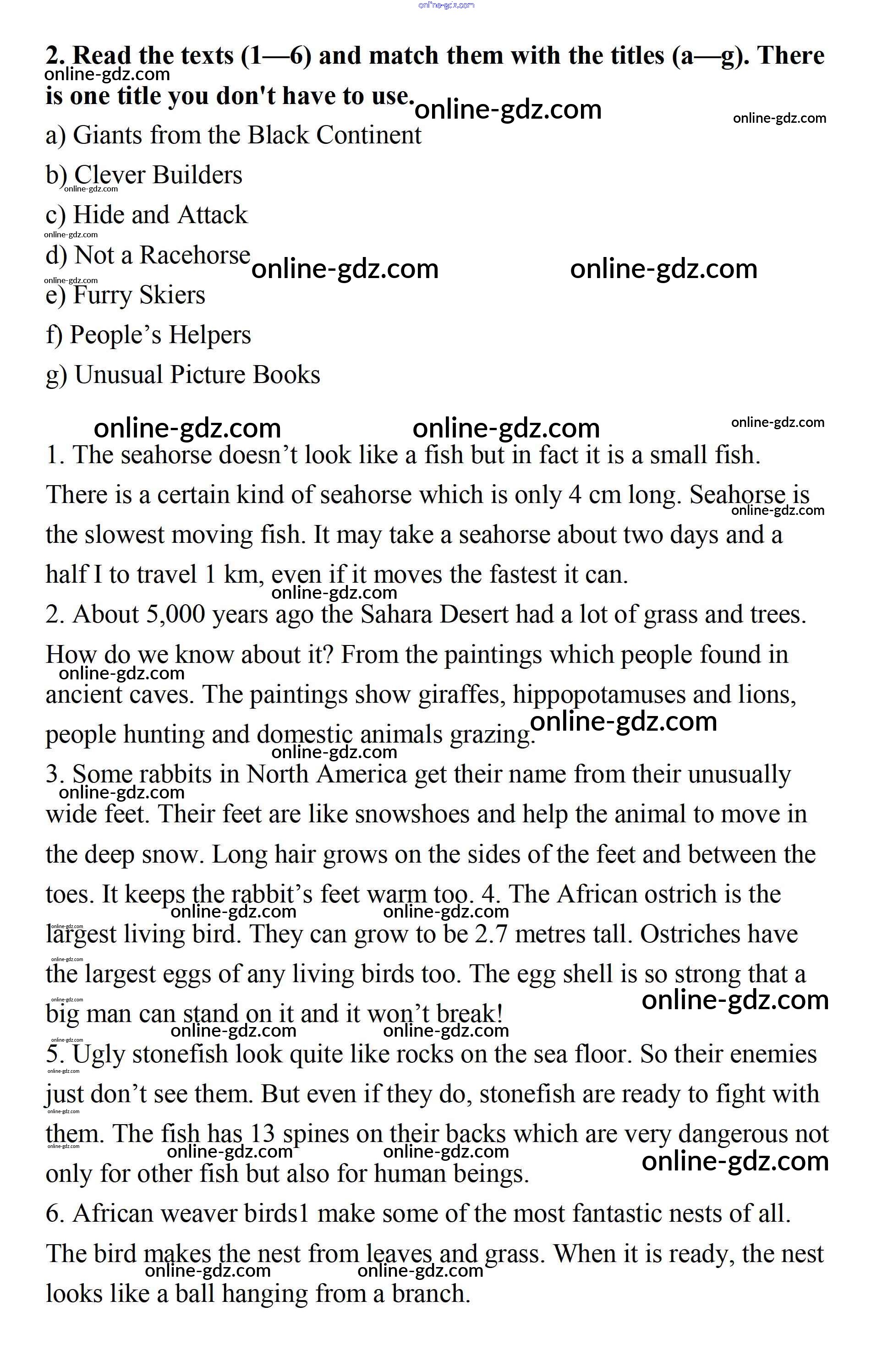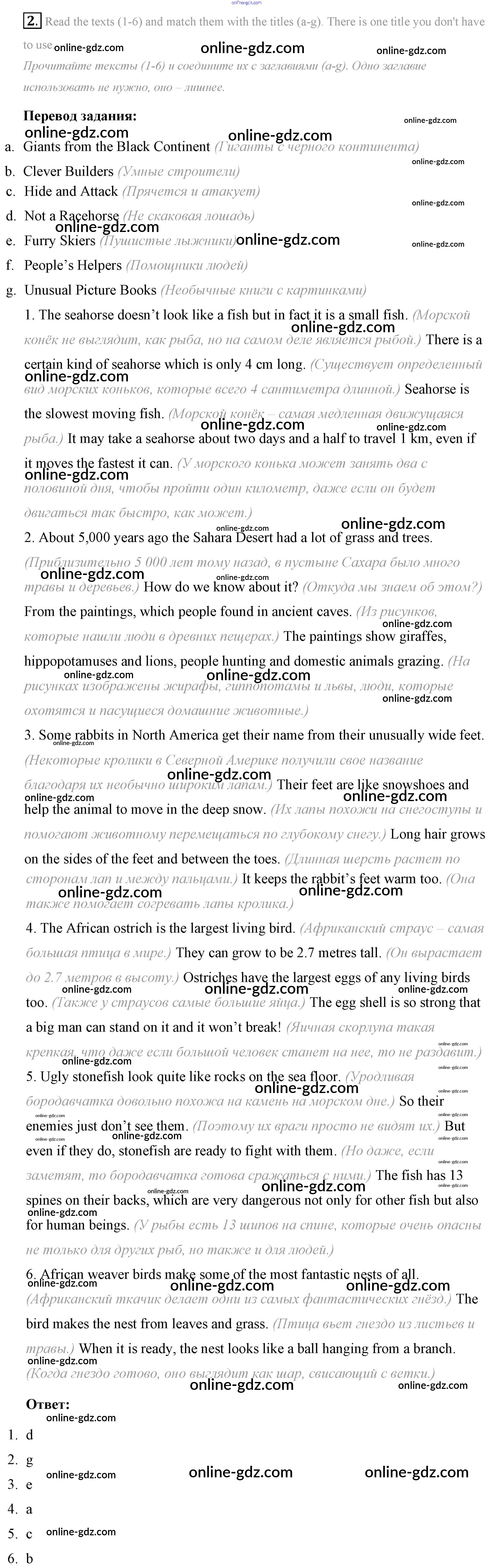 Готовые домашние задания по Английскому языку за 7 класс Учебник Афанасьева, Михеева Rainbow 2019 - Step 9 Consolidation Class: UNIT 4. LIVING THINGS AROUND US. 2