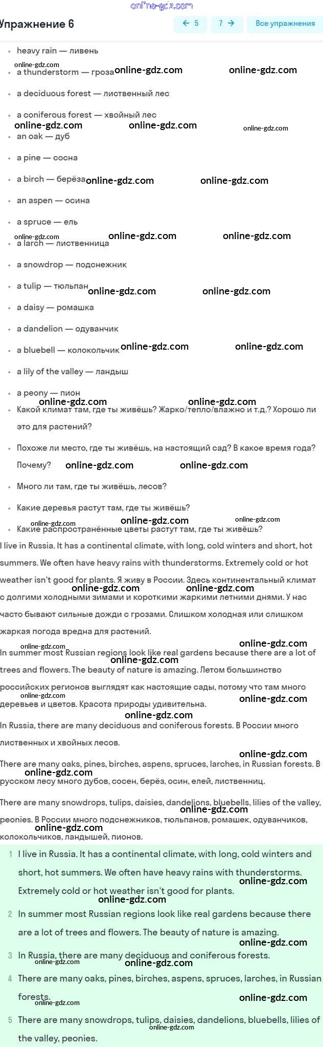 Готовые домашние задания по Английскому языку за 7 класс Учебник Афанасьева, Михеева Rainbow 2019 - Step 9 Consolidation Class: UNIT 4. LIVING THINGS AROUND US. 6