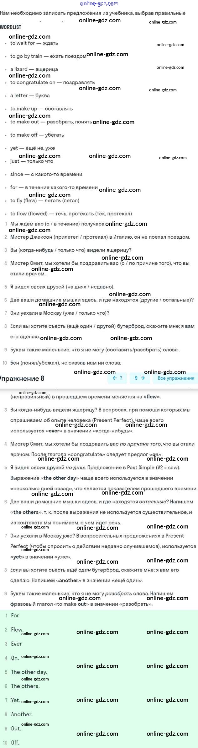 Готовые домашние задания по Английскому языку за 7 класс Учебник Афанасьева, Михеева Rainbow 2019 - Step 9 Consolidation Class: UNIT 4. LIVING THINGS AROUND US. 8