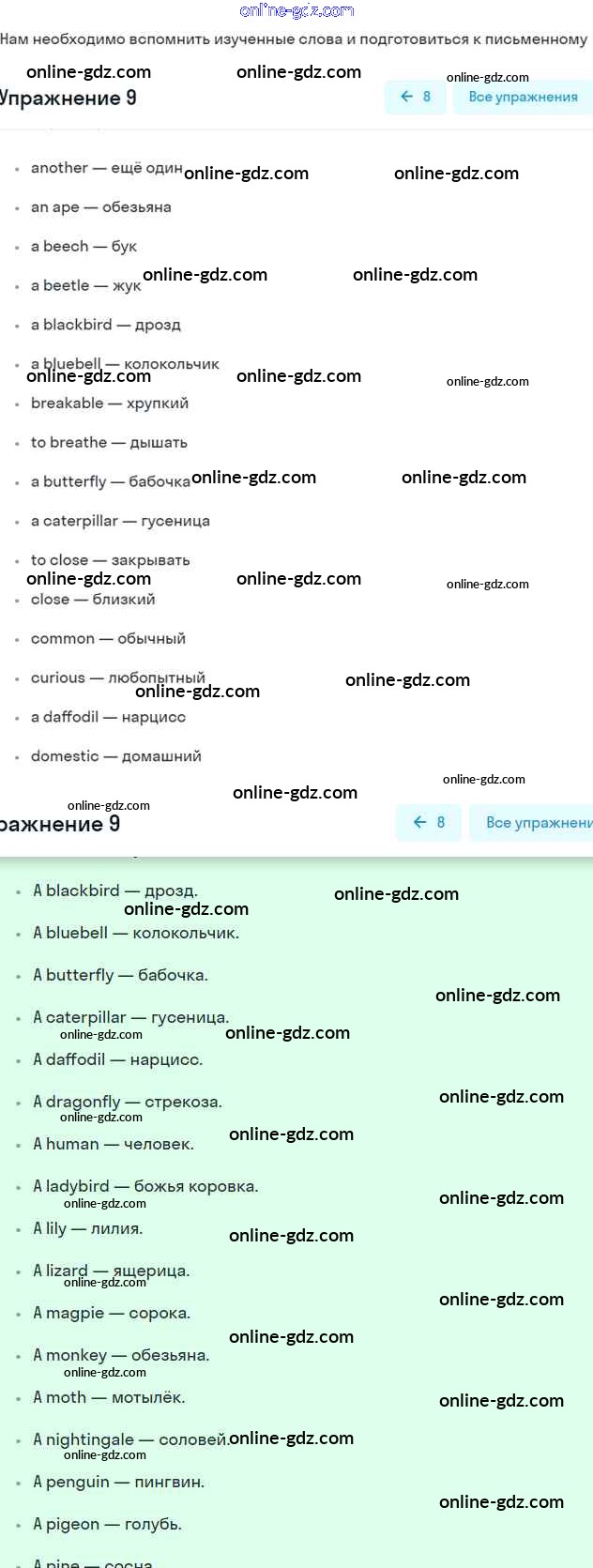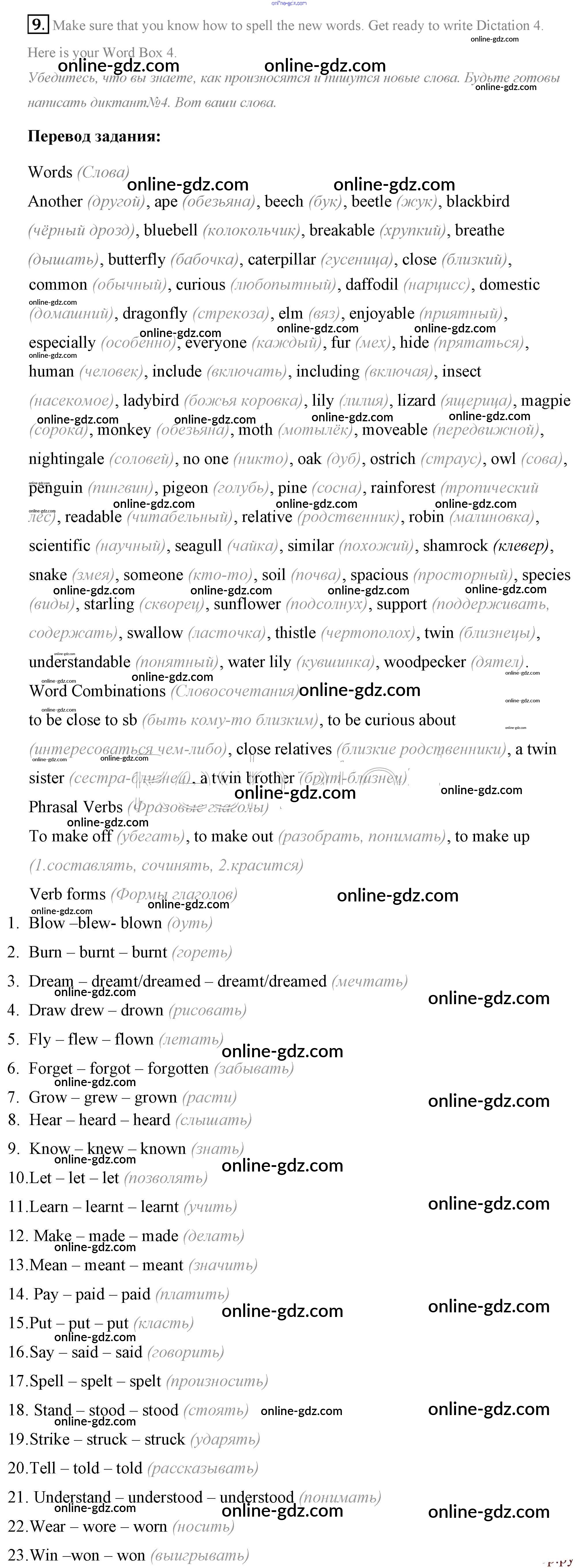 Готовые домашние задания по Английскому языку за 7 класс Учебник Афанасьева, Михеева Rainbow 2019 - Step 9 Consolidation Class: UNIT 4. LIVING THINGS AROUND US. 9