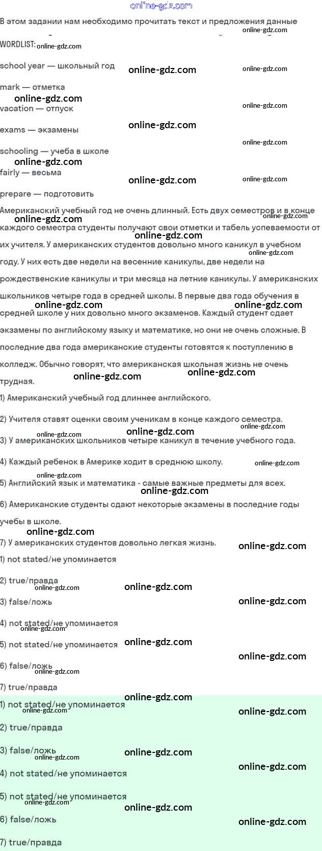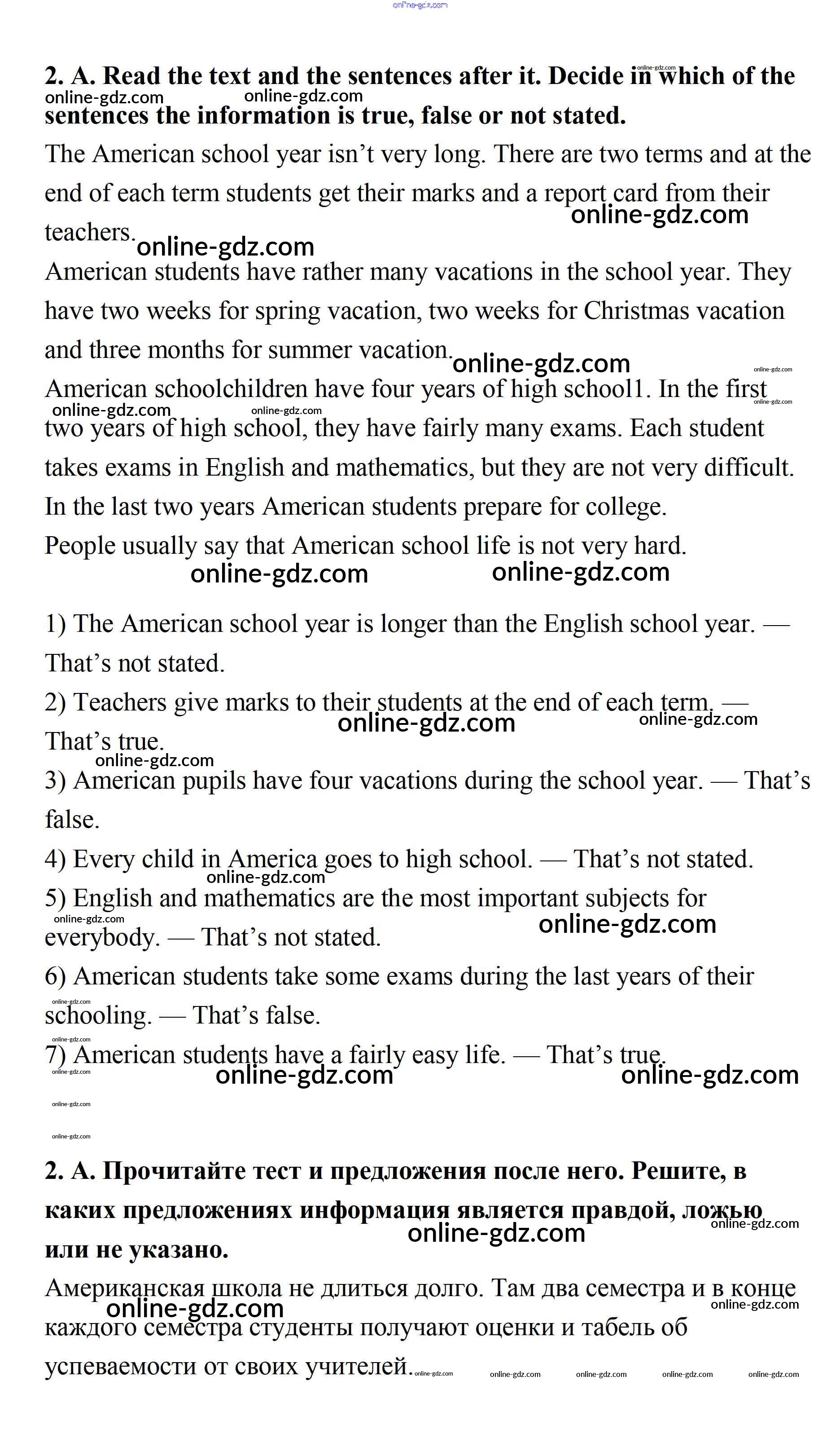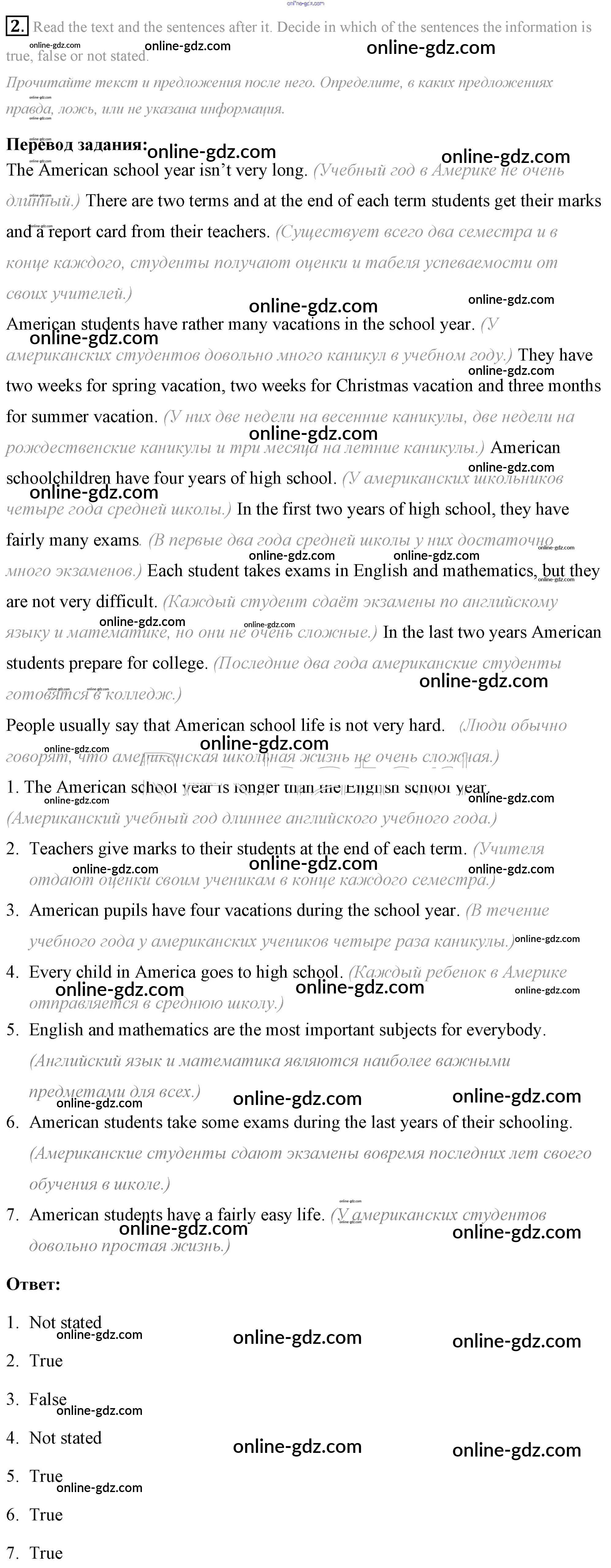 Готовые домашние задания по Английскому языку за 7 класс Учебник Афанасьева, Михеева Rainbow 2019 - Step 10 Test Yourself: UNIT 1. SCHOOLS AND SCHOOLING. 2