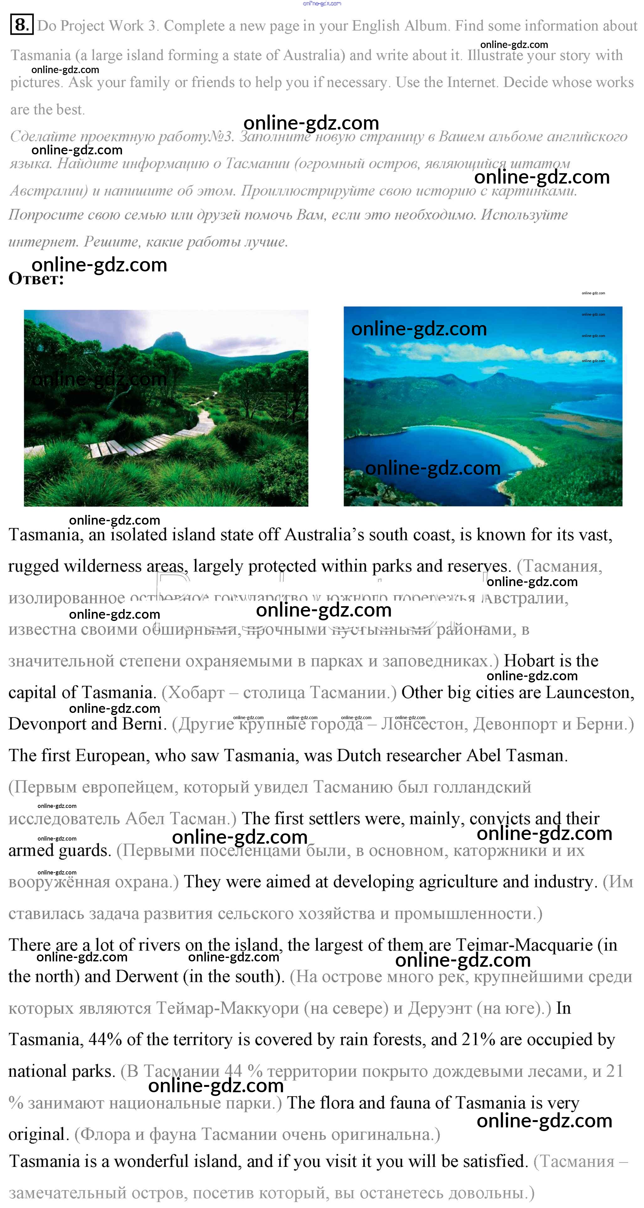 Готовые домашние задания по Английскому языку за 7 класс Учебник Афанасьева, Михеева Rainbow 2019 - Step 10 Test Yourself: UNIT 3. SOME FACTS ABOUT THE ENGLISH-SPEAKING WORLD. 8