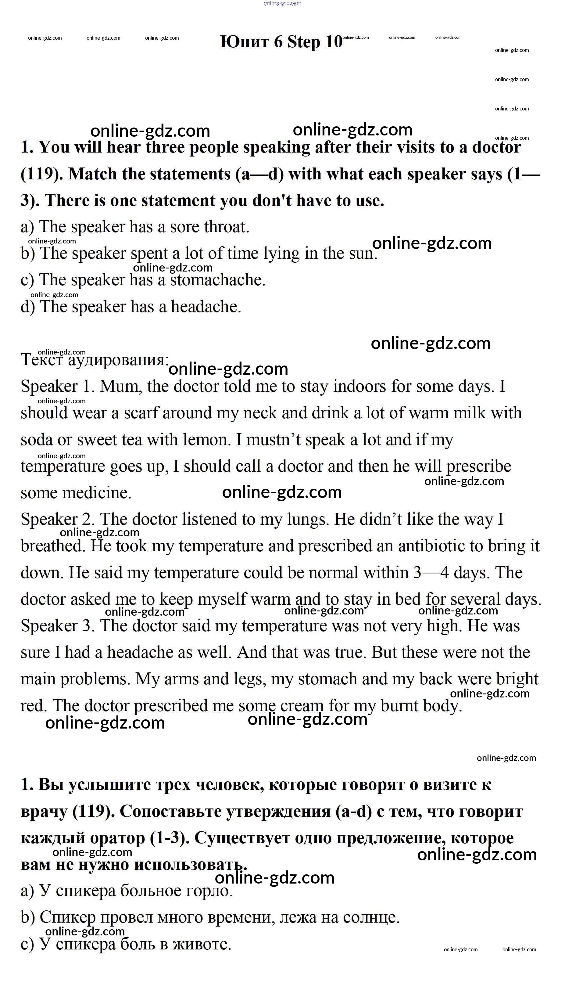 Готовые домашние задания по Английскому языку за 7 класс Учебник Афанасьева, Михеева Rainbow 2019 - Step 10 Test Yourself: UNIT 6. LIVING HEALTHY. 1