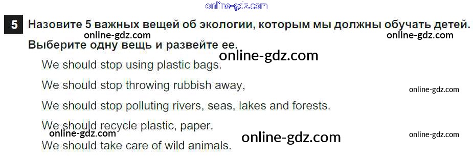 Готовые домашние задания по Английскому языку за 7 класс Учебник Афанасьева, Михеева Rainbow 2019 - Step 10 Test Yourself: UNIT 5. THE ABC OF ECOLOGY. 5