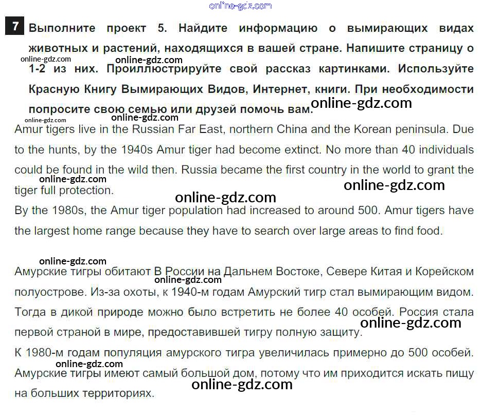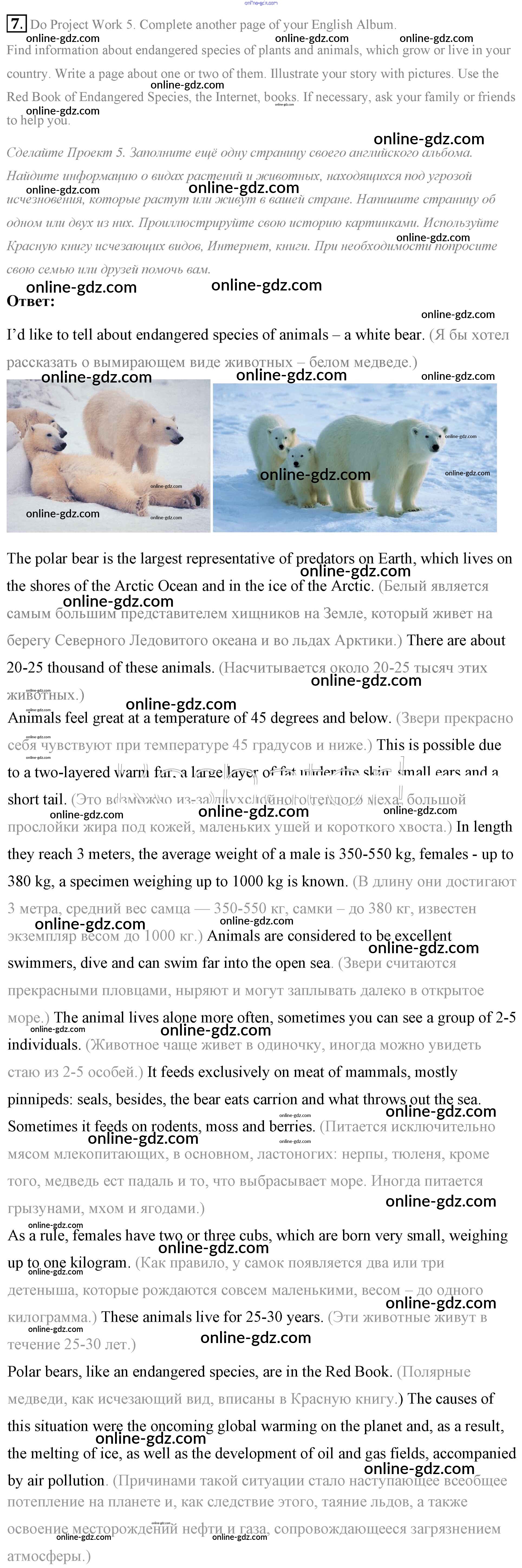 Готовые домашние задания по Английскому языку за 7 класс Учебник Афанасьева, Михеева Rainbow 2019 - Step 10 Test Yourself: UNIT 5. THE ABC OF ECOLOGY. 7