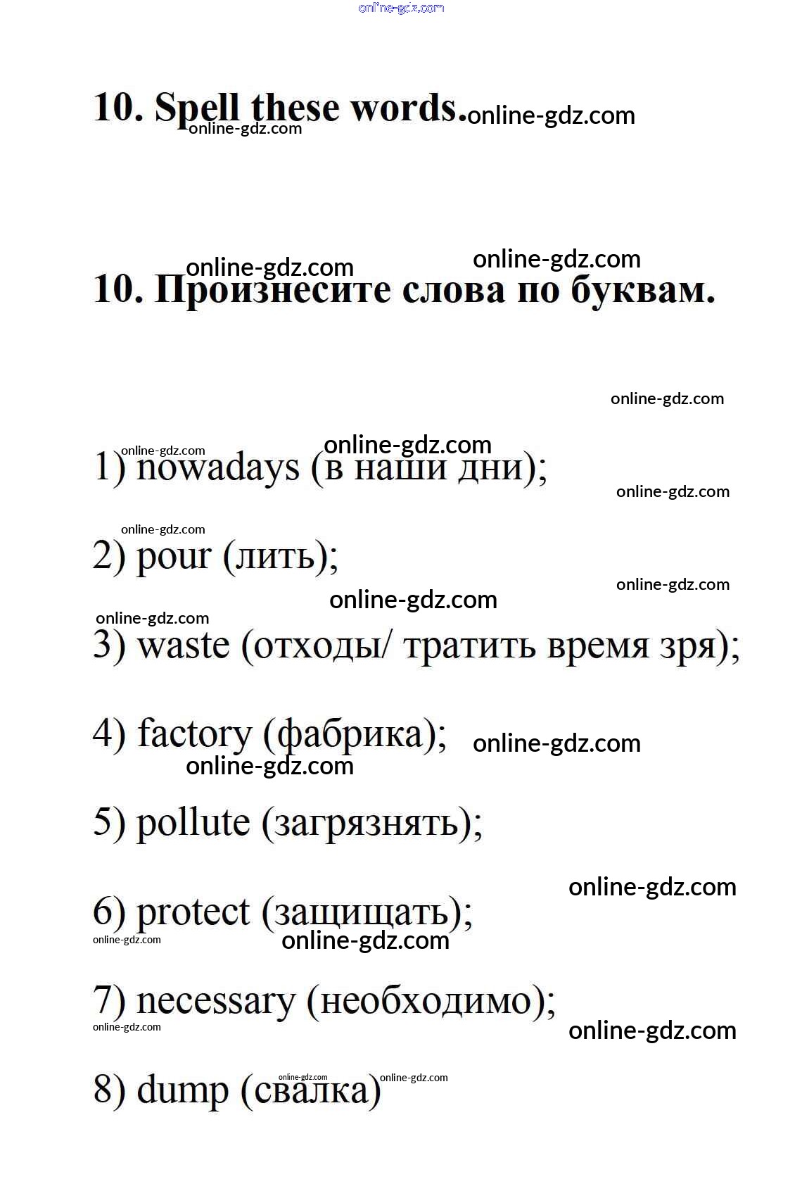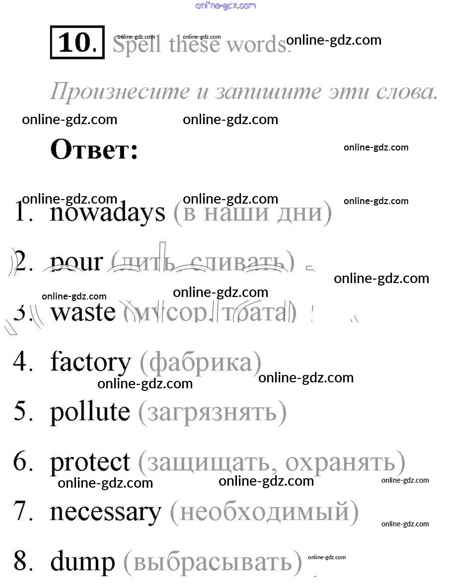 Готовые домашние задания по Английскому языку за 7 класс Учебник Афанасьева, Михеева Rainbow 2019 - Step 4 UNIT 5. THE ABC OF ECOLOGY. 10