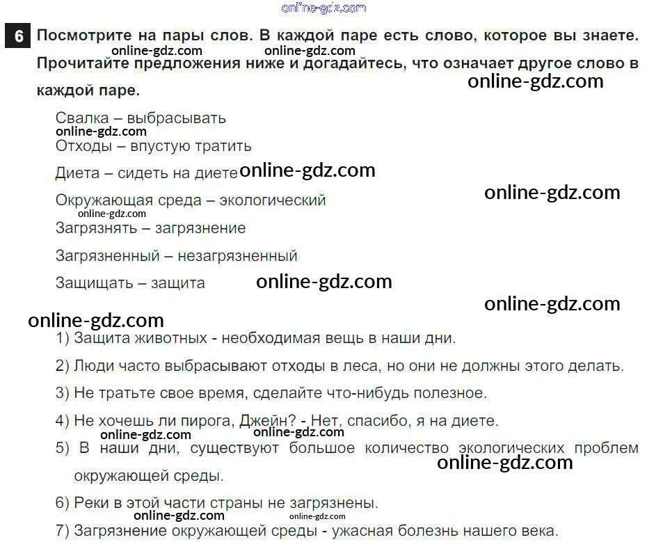Готовые домашние задания по Английскому языку за 7 класс Учебник Афанасьева, Михеева Rainbow 2019 - Step 4 UNIT 5. THE ABC OF ECOLOGY. 6