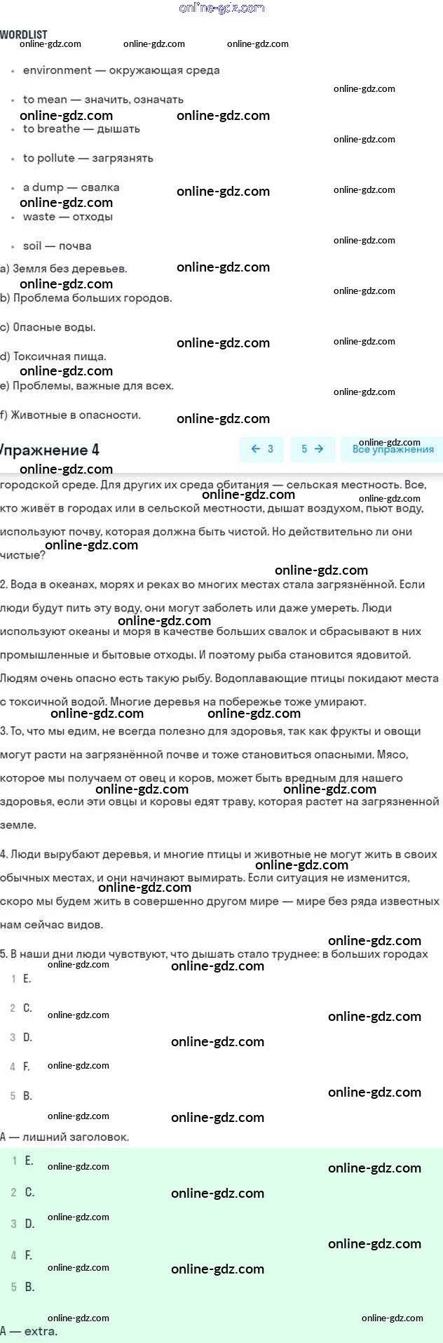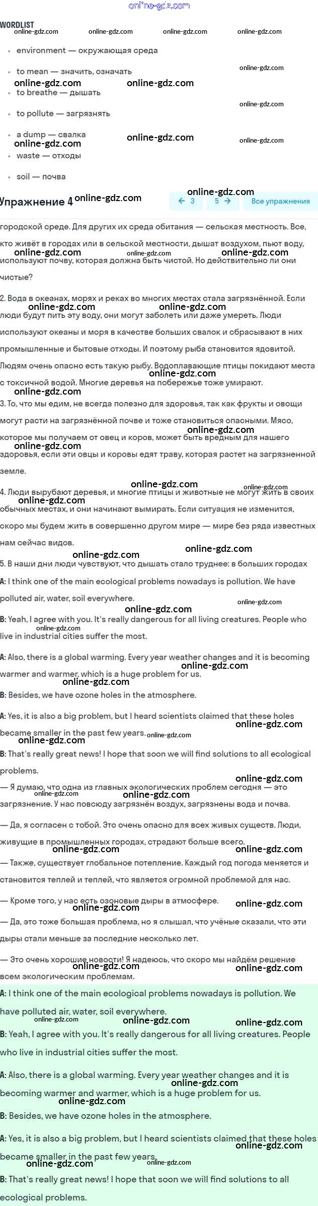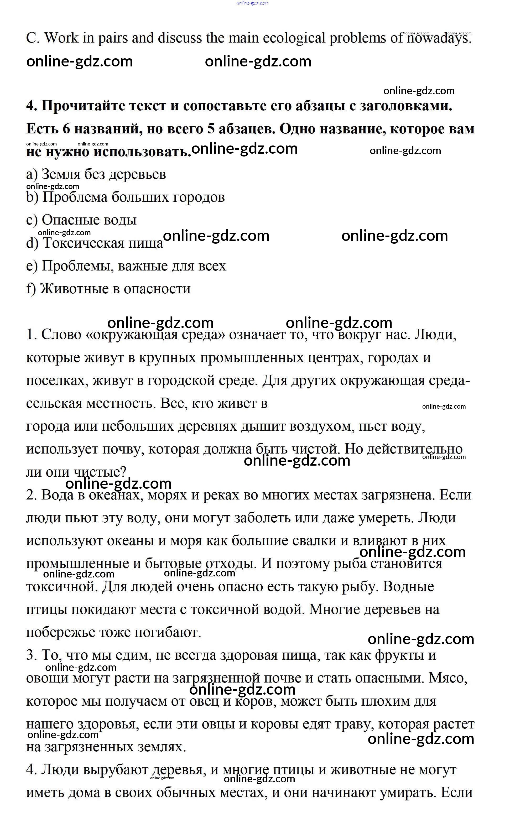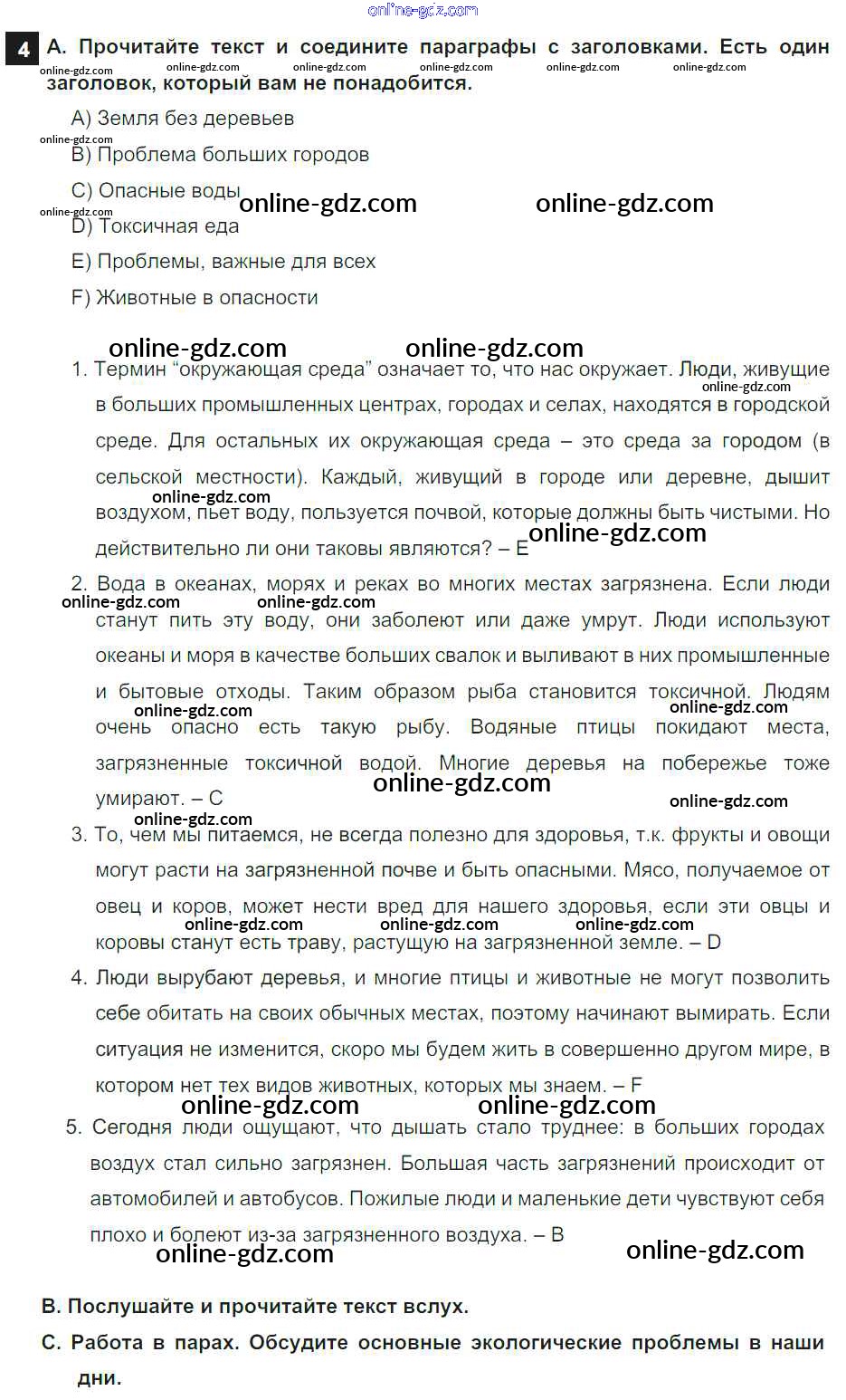 Готовые домашние задания по Английскому языку за 7 класс Учебник Афанасьева, Михеева Rainbow 2019 - Step 5 UNIT 5. THE ABC OF ECOLOGY. 4