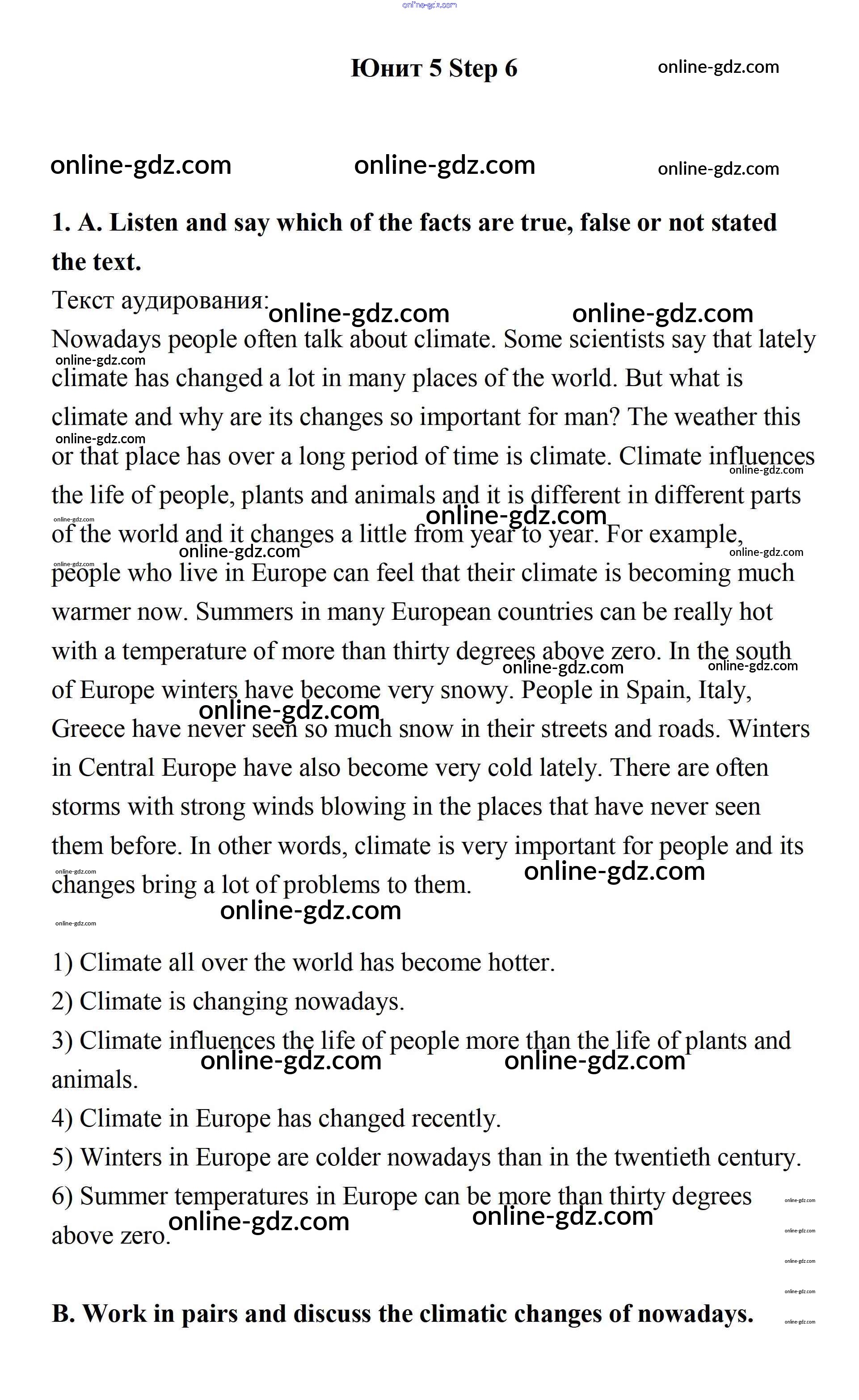 Готовые домашние задания по Английскому языку за 7 класс Учебник Афанасьева, Михеева Rainbow 2019 - Step 6 UNIT 5. THE ABC OF ECOLOGY. 1