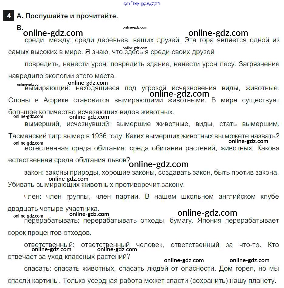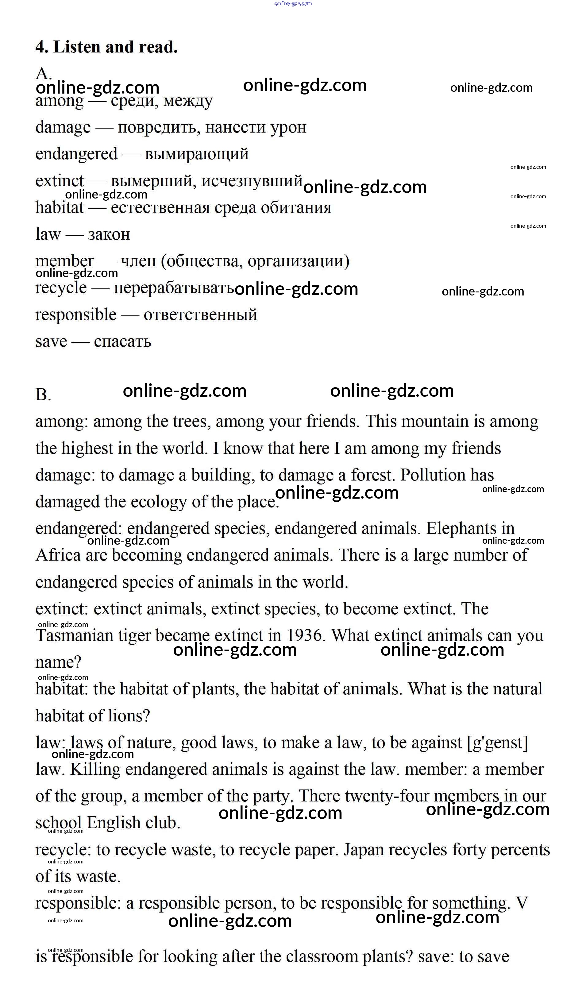 Готовые домашние задания по Английскому языку за 7 класс Учебник Афанасьева, Михеева Rainbow 2019 - Step 6 UNIT 5. THE ABC OF ECOLOGY. 4