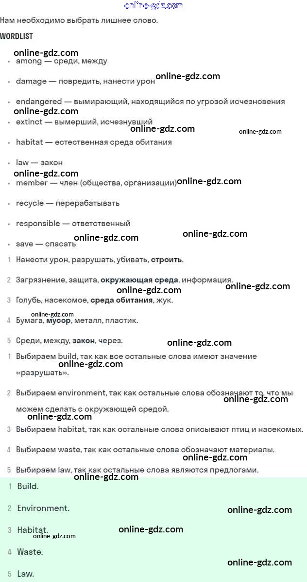Готовые домашние задания по Английскому языку за 7 класс Учебник Афанасьева, Михеева Rainbow 2019 - Step 6 UNIT 5. THE ABC OF ECOLOGY. 9