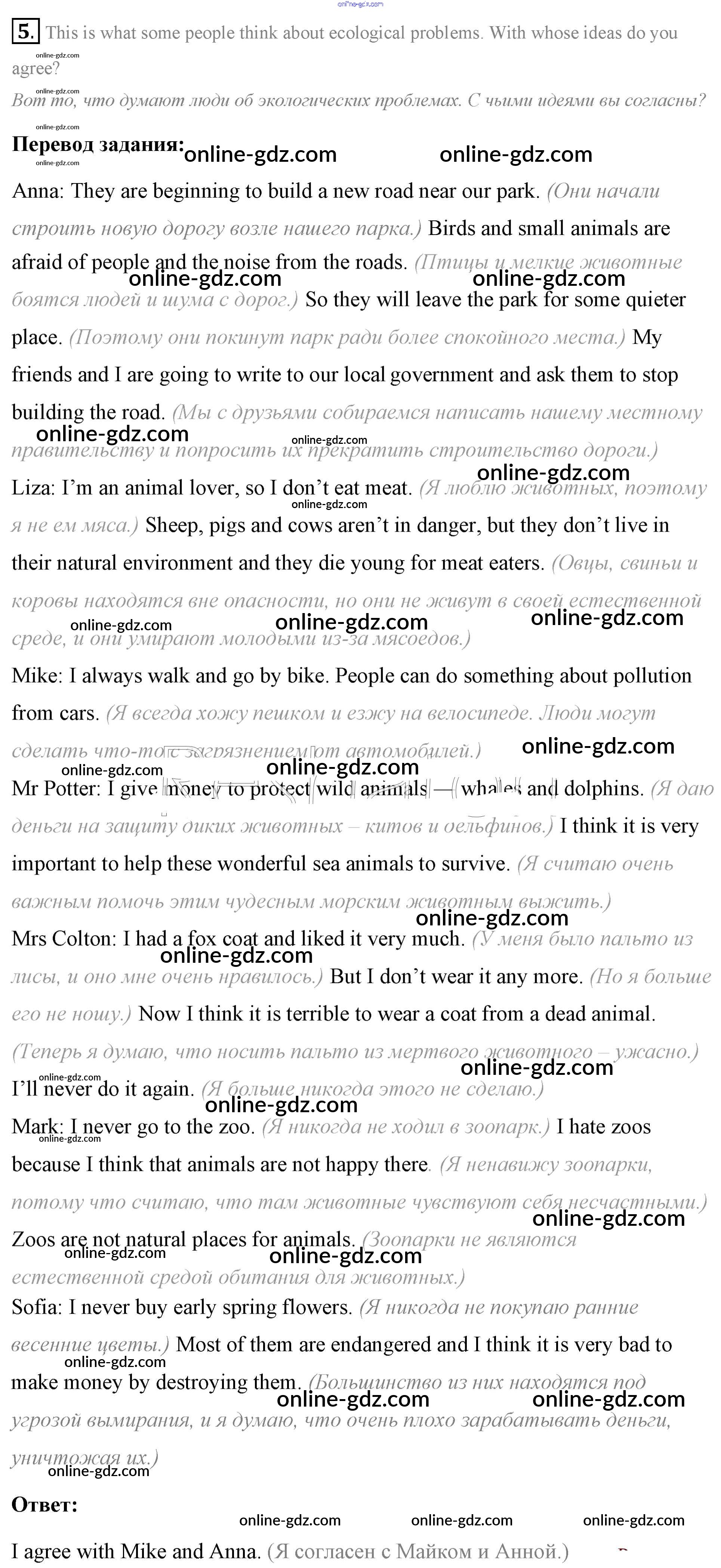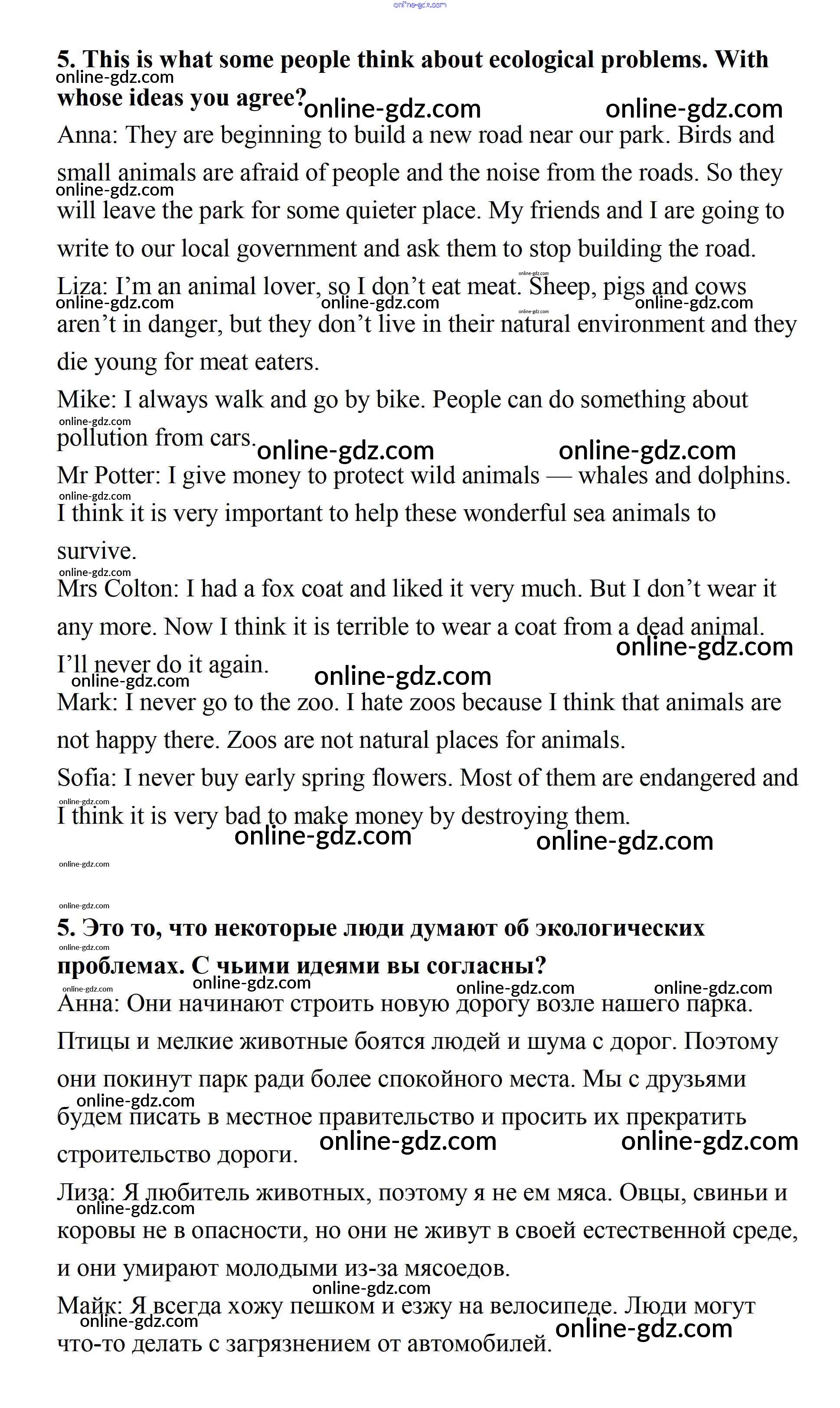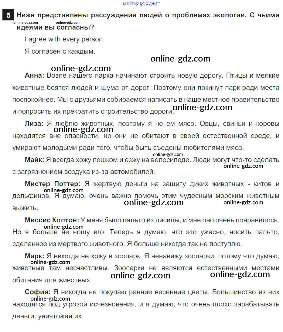 Готовые домашние задания по Английскому языку за 7 класс Учебник Афанасьева, Михеева Rainbow 2019 - Step 7 UNIT 5. THE ABC OF ECOLOGY. 5
