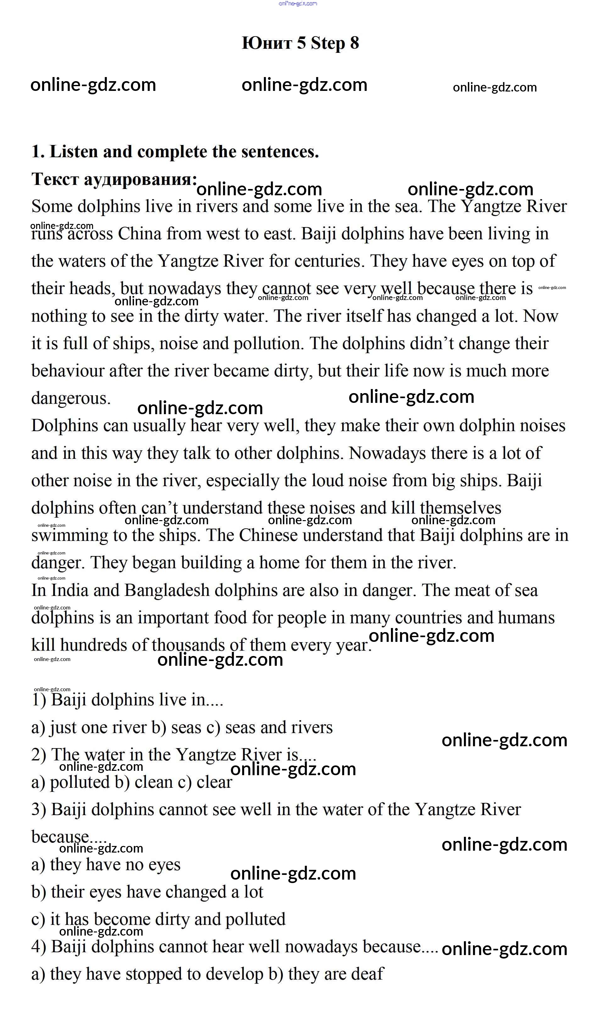 Готовые домашние задания по Английскому языку за 7 класс Учебник Афанасьева, Михеева Rainbow 2019 - Step 8 UNIT 5. THE ABC OF ECOLOGY. 1