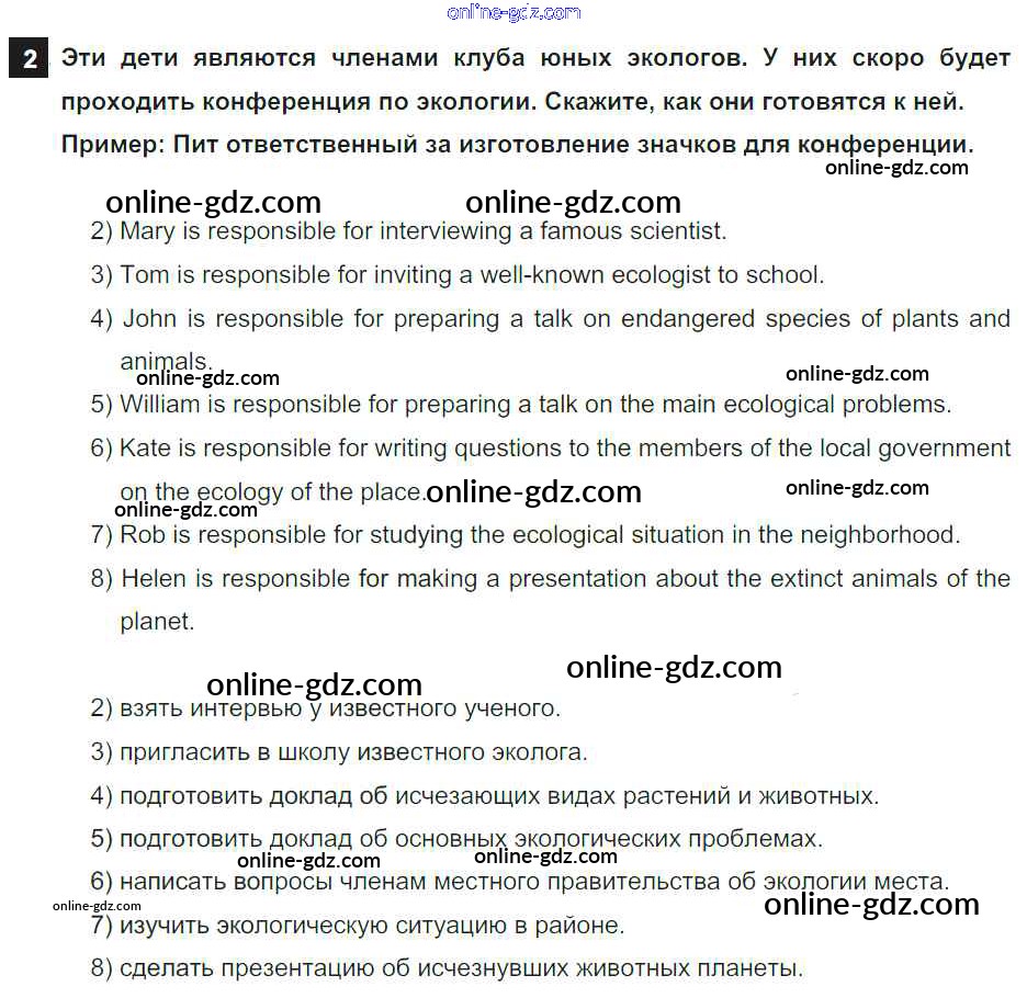 Готовые домашние задания по Английскому языку за 7 класс Учебник Афанасьева, Михеева Rainbow 2019 - Step 8 UNIT 5. THE ABC OF ECOLOGY. 2
