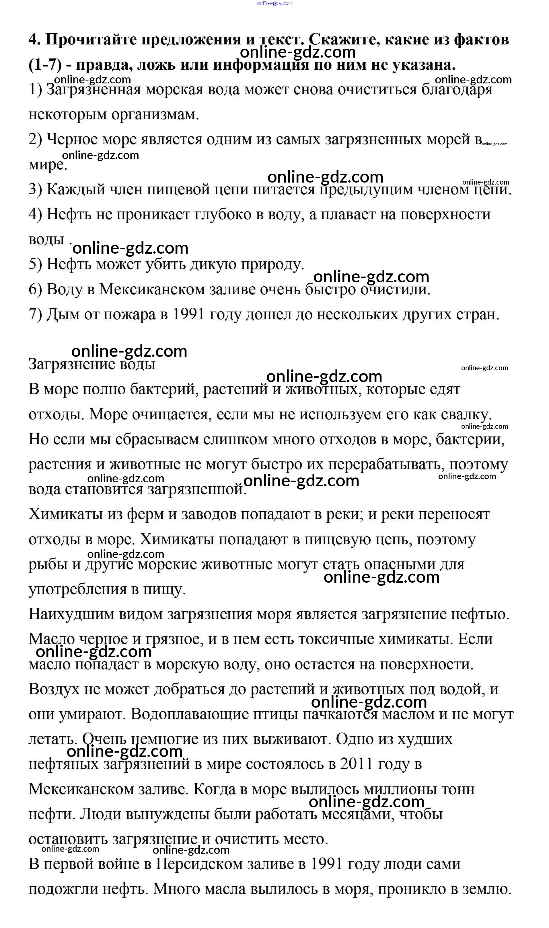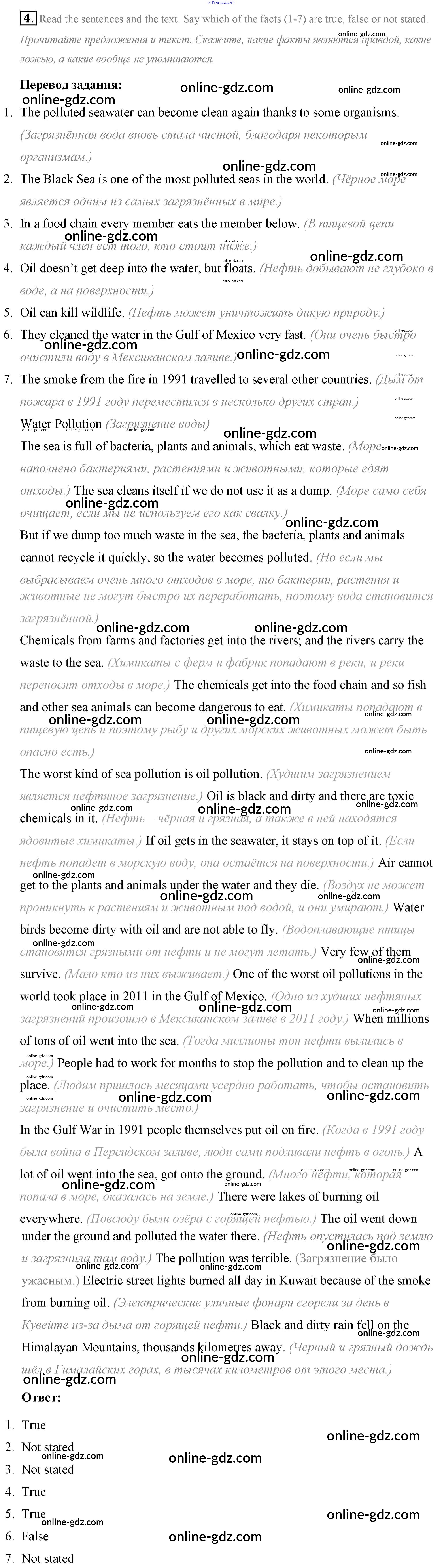 Готовые домашние задания по Английскому языку за 7 класс Учебник Афанасьева, Михеева Rainbow 2019 - Step 8 UNIT 5. THE ABC OF ECOLOGY. 4