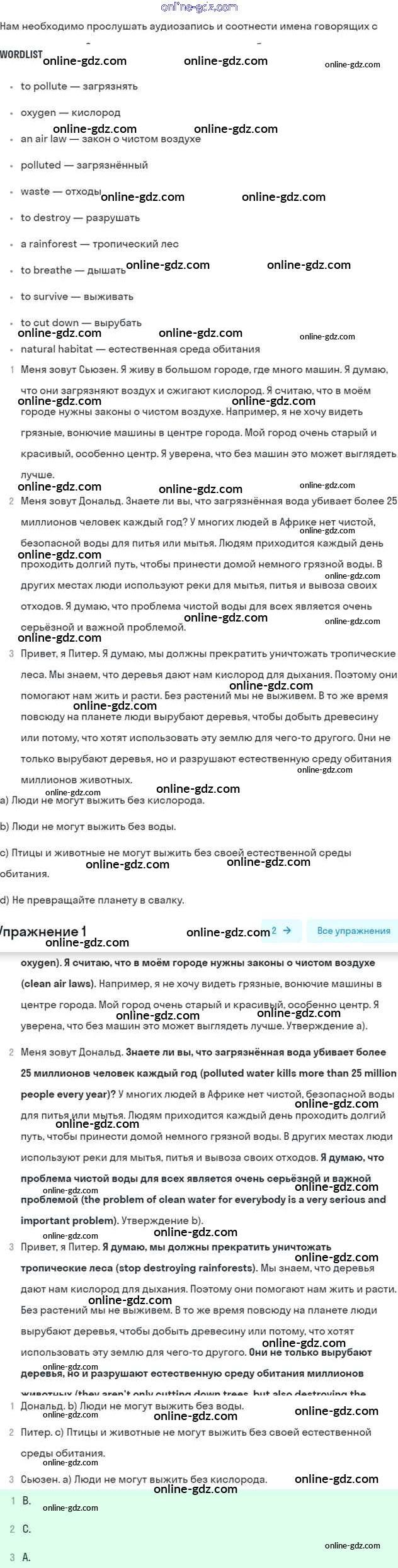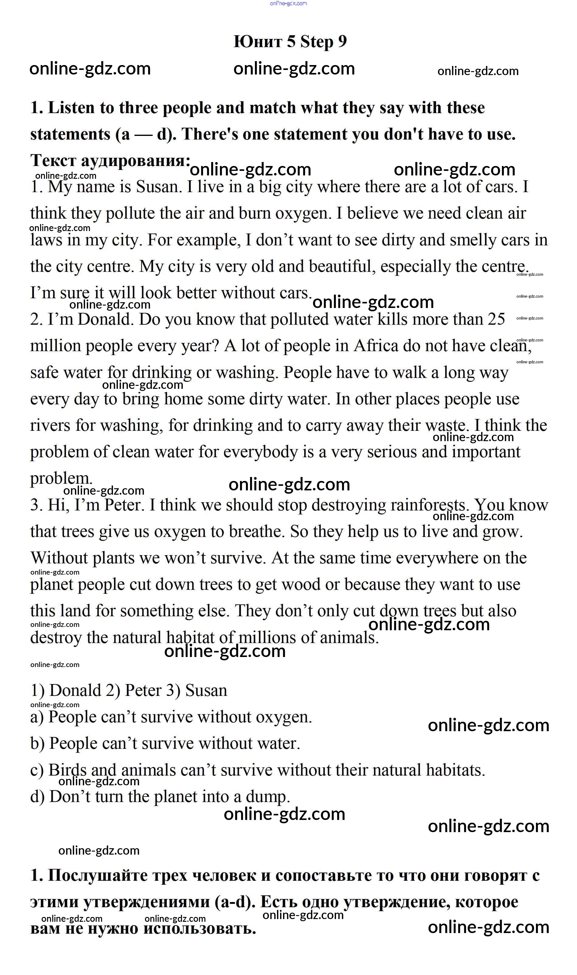 Готовые домашние задания по Английскому языку за 7 класс Учебник Афанасьева, Михеева Rainbow 2019 - Step 9 Consolidation Class: UNIT 5. THE ABC OF ECOLOGY. 1