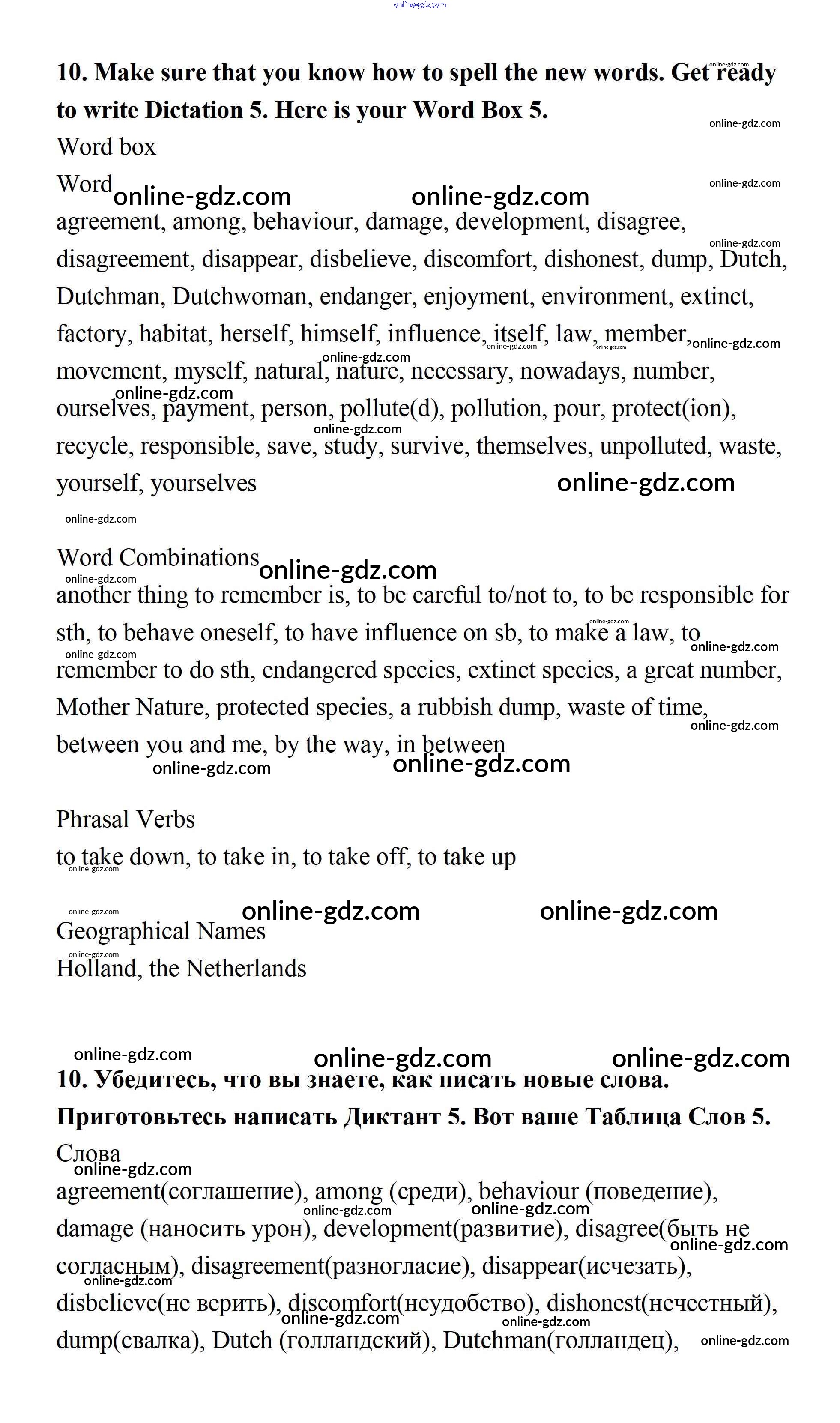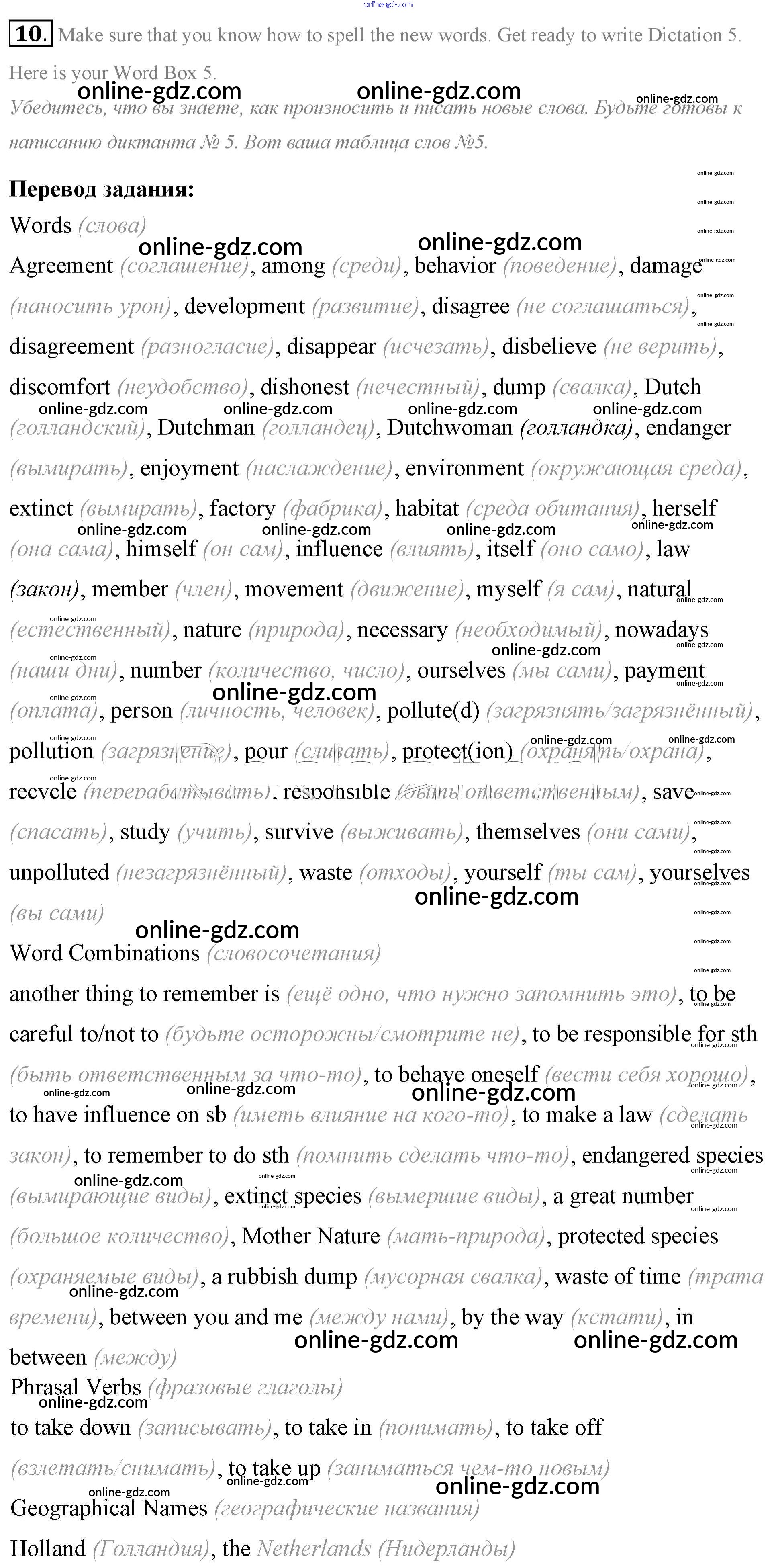 Готовые домашние задания по Английскому языку за 7 класс Учебник Афанасьева, Михеева Rainbow 2019 - Step 9 Consolidation Class: UNIT 5. THE ABC OF ECOLOGY. 10