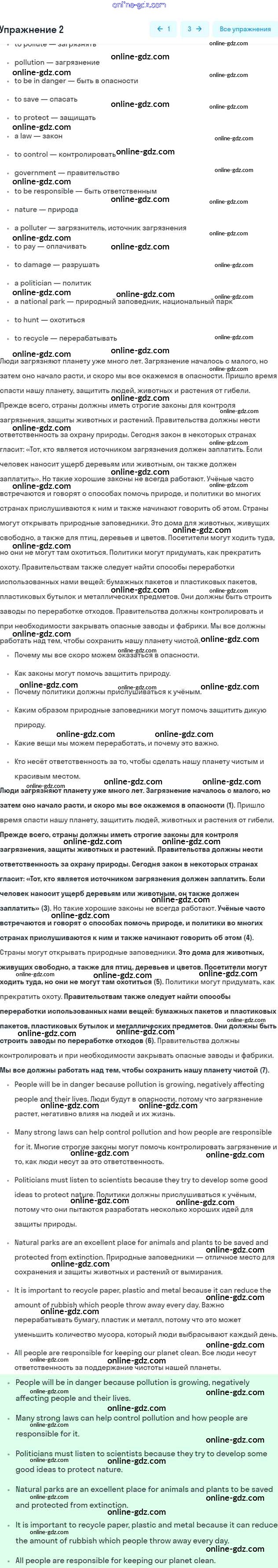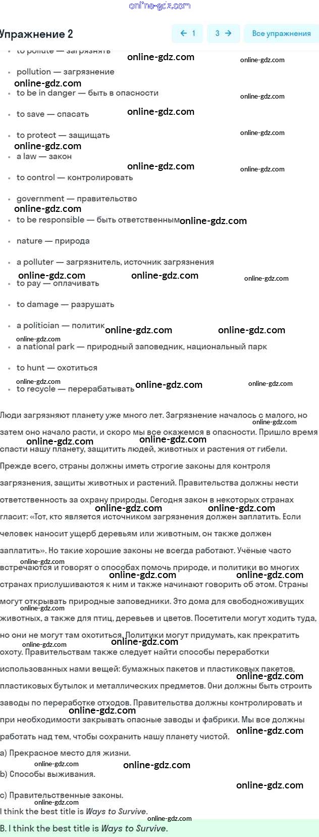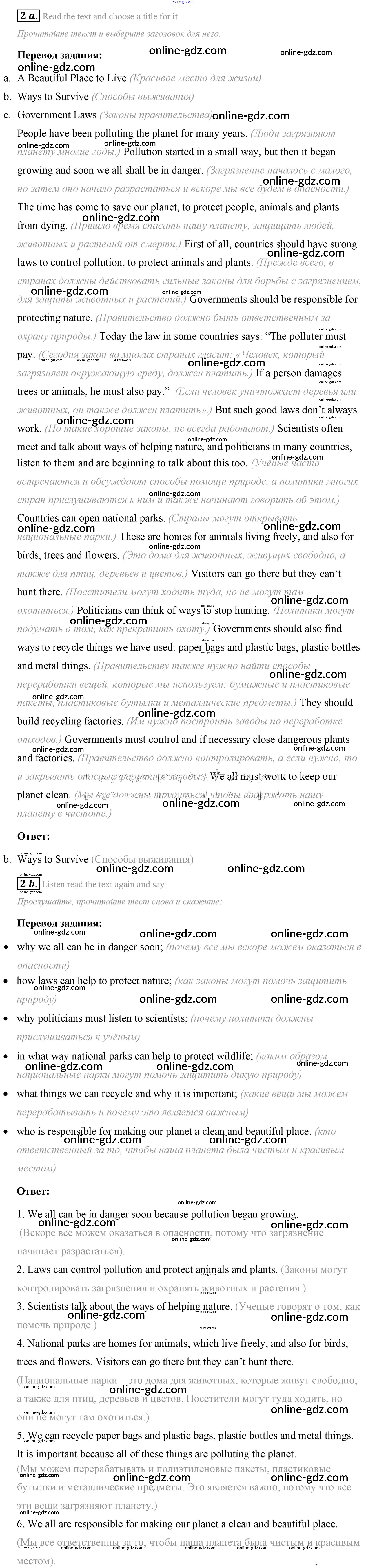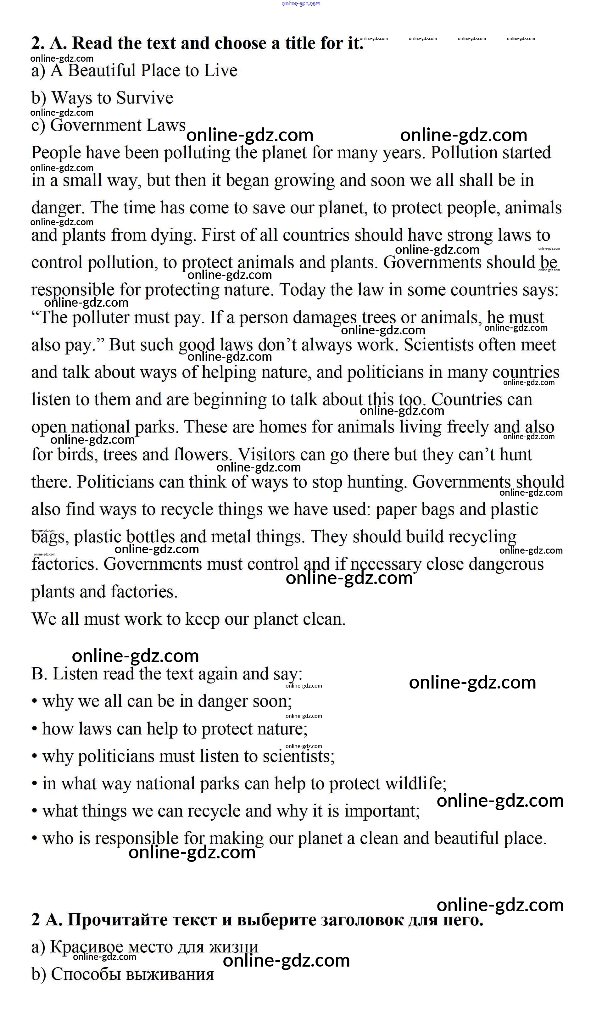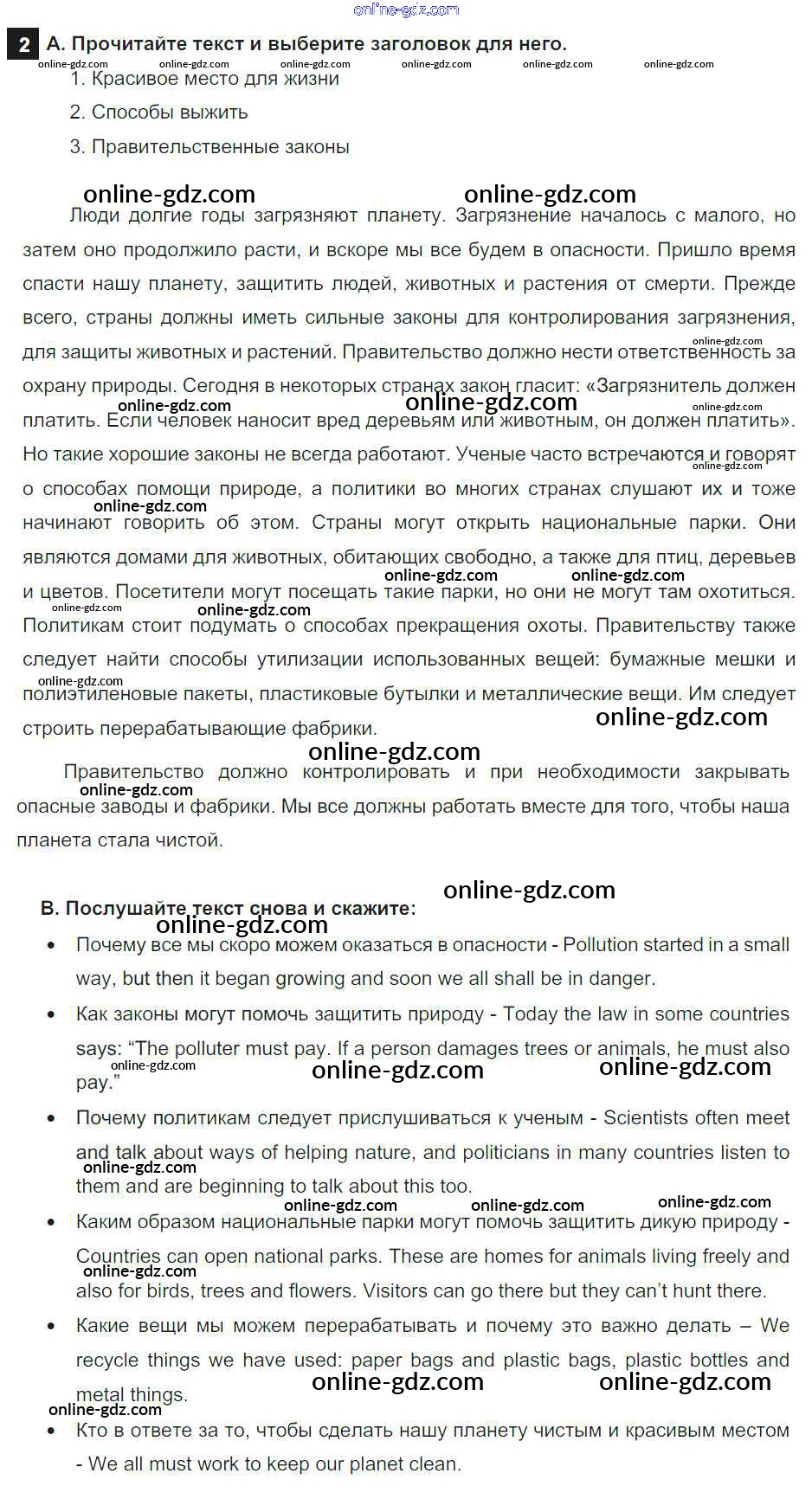 Готовые домашние задания по Английскому языку за 7 класс Учебник Афанасьева, Михеева Rainbow 2019 - Step 9 Consolidation Class: UNIT 5. THE ABC OF ECOLOGY. 2