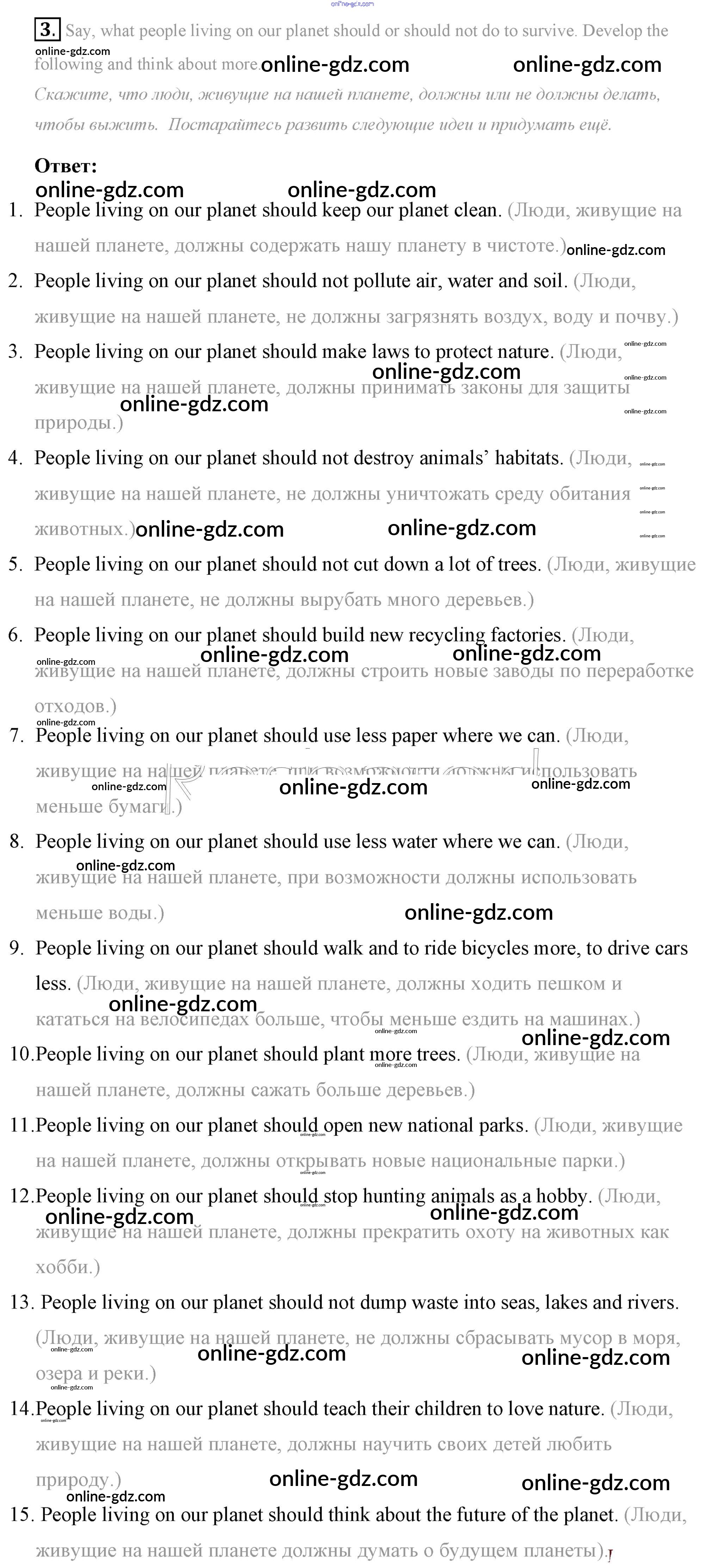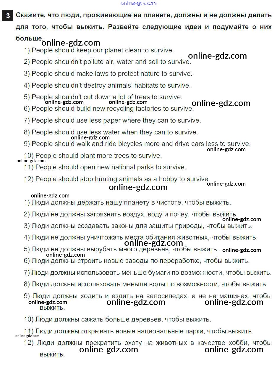 Готовые домашние задания по Английскому языку за 7 класс Учебник Афанасьева, Михеева Rainbow 2019 - Step 9 Consolidation Class: UNIT 5. THE ABC OF ECOLOGY. 3