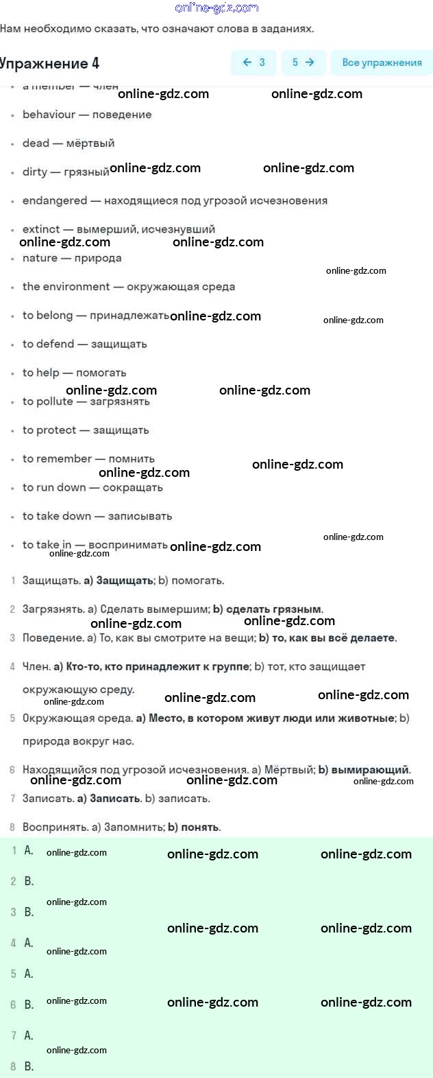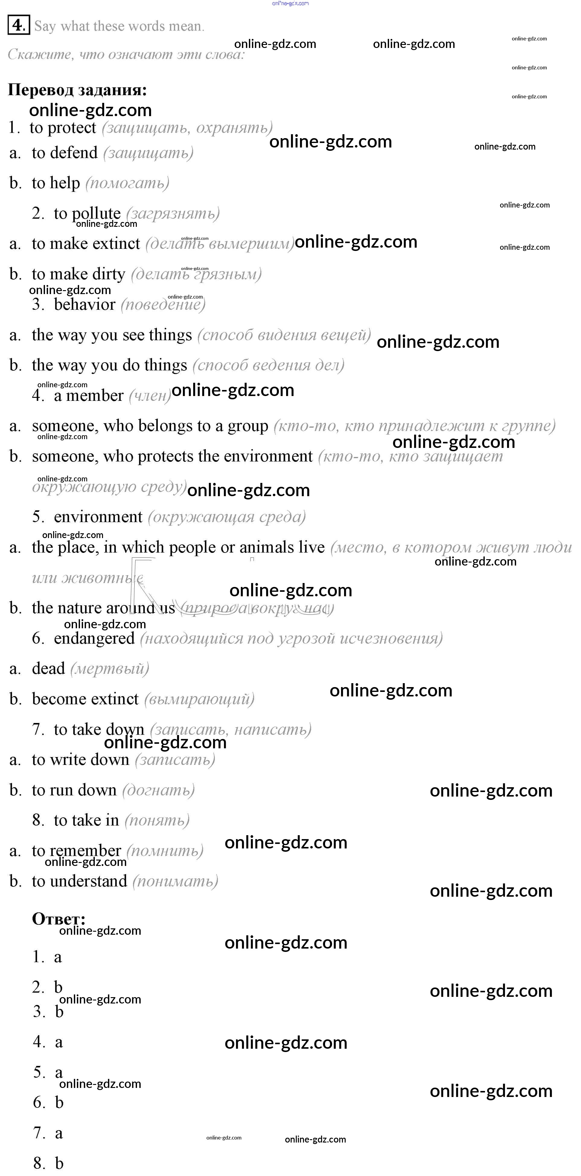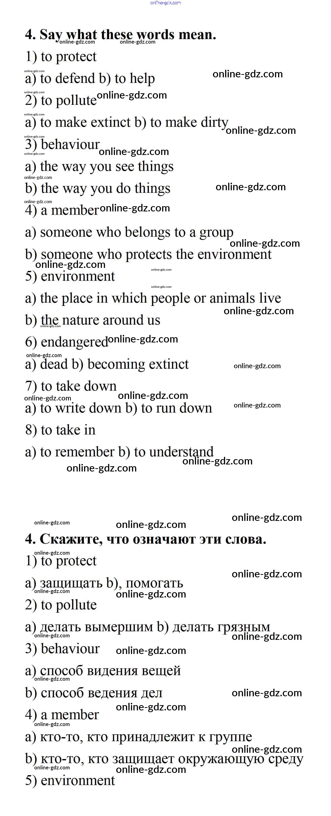 Готовые домашние задания по Английскому языку за 7 класс Учебник Афанасьева, Михеева Rainbow 2019 - Step 9 Consolidation Class: UNIT 5. THE ABC OF ECOLOGY. 4