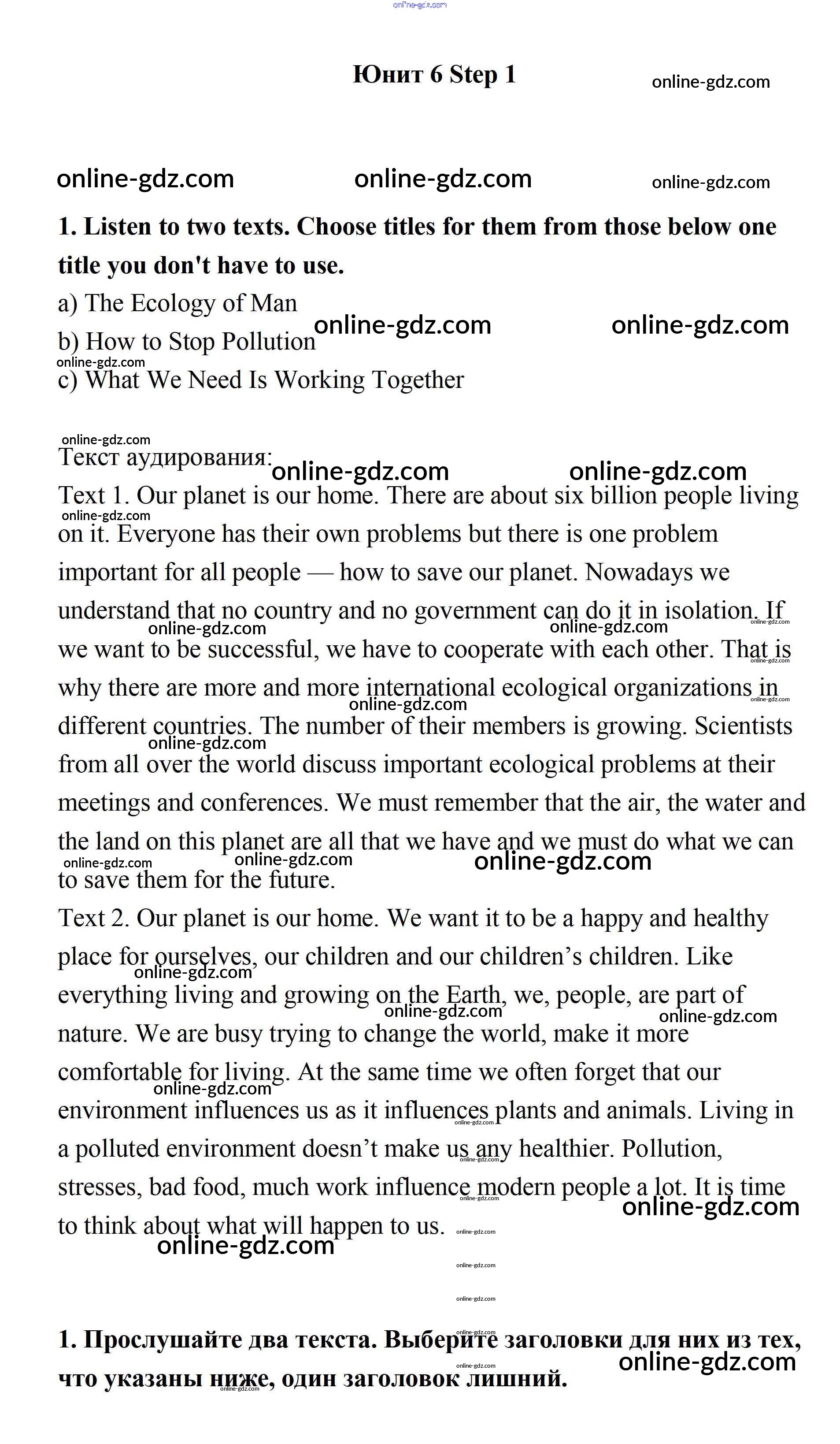 Готовые домашние задания по Английскому языку за 7 класс Учебник Афанасьева, Михеева Rainbow 2019 - Step 1 UNIT 6. LIVING HEALTHY. 1