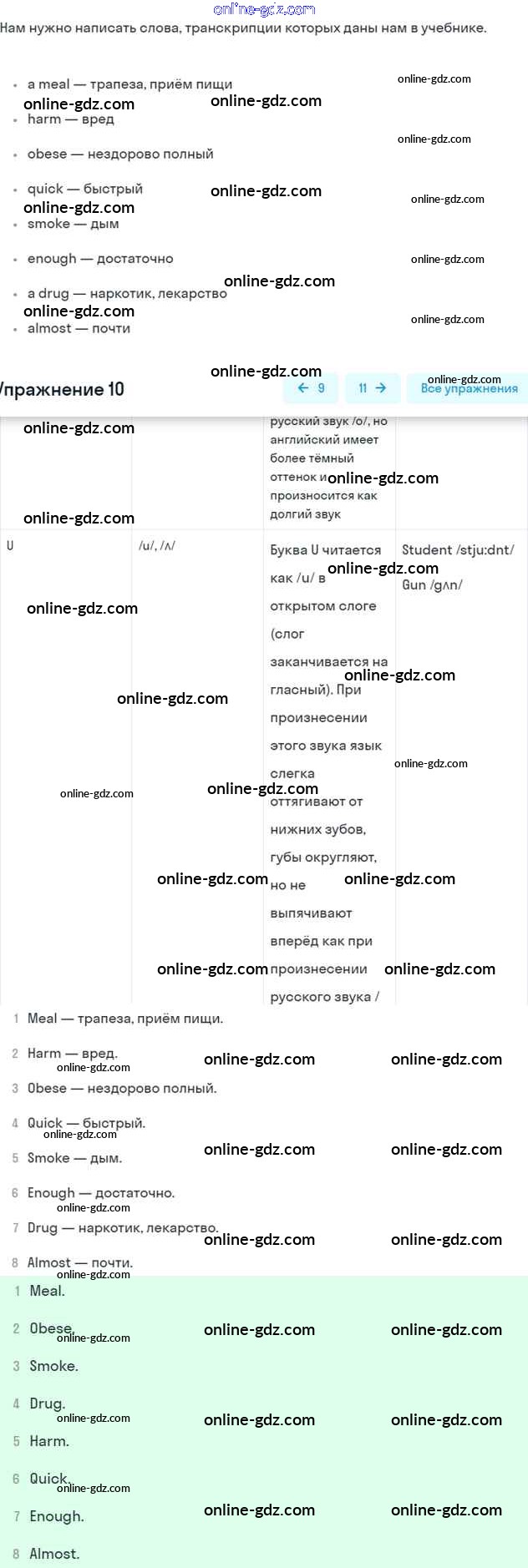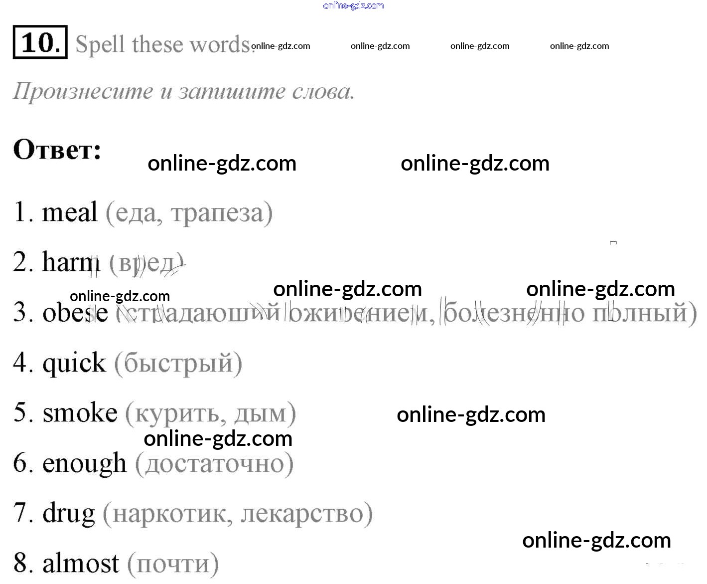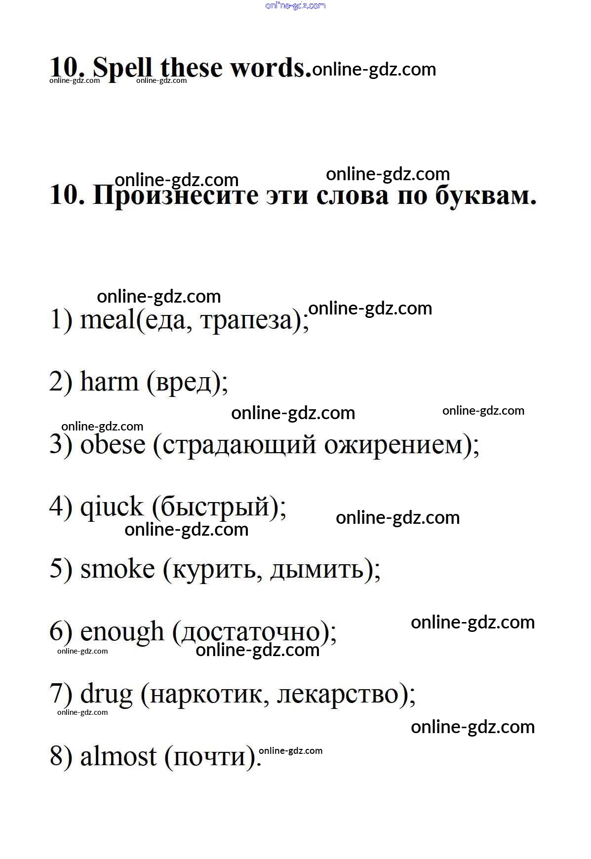 Готовые домашние задания по Английскому языку за 7 класс Учебник Афанасьева, Михеева Rainbow 2019 - Step 1 UNIT 6. LIVING HEALTHY. 10