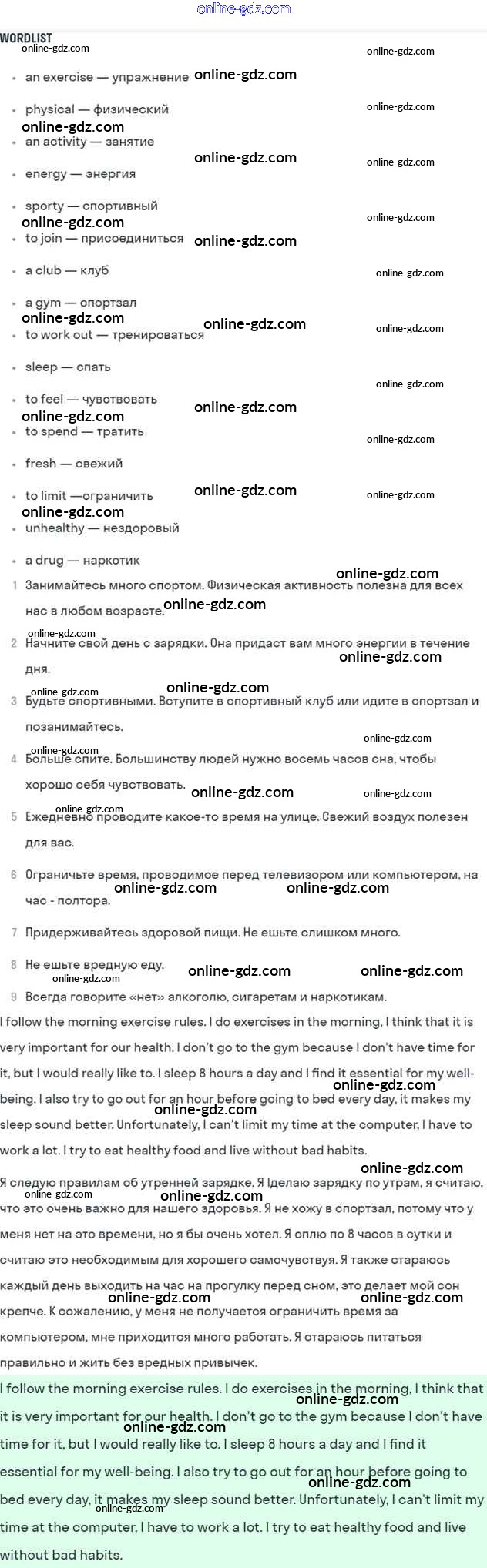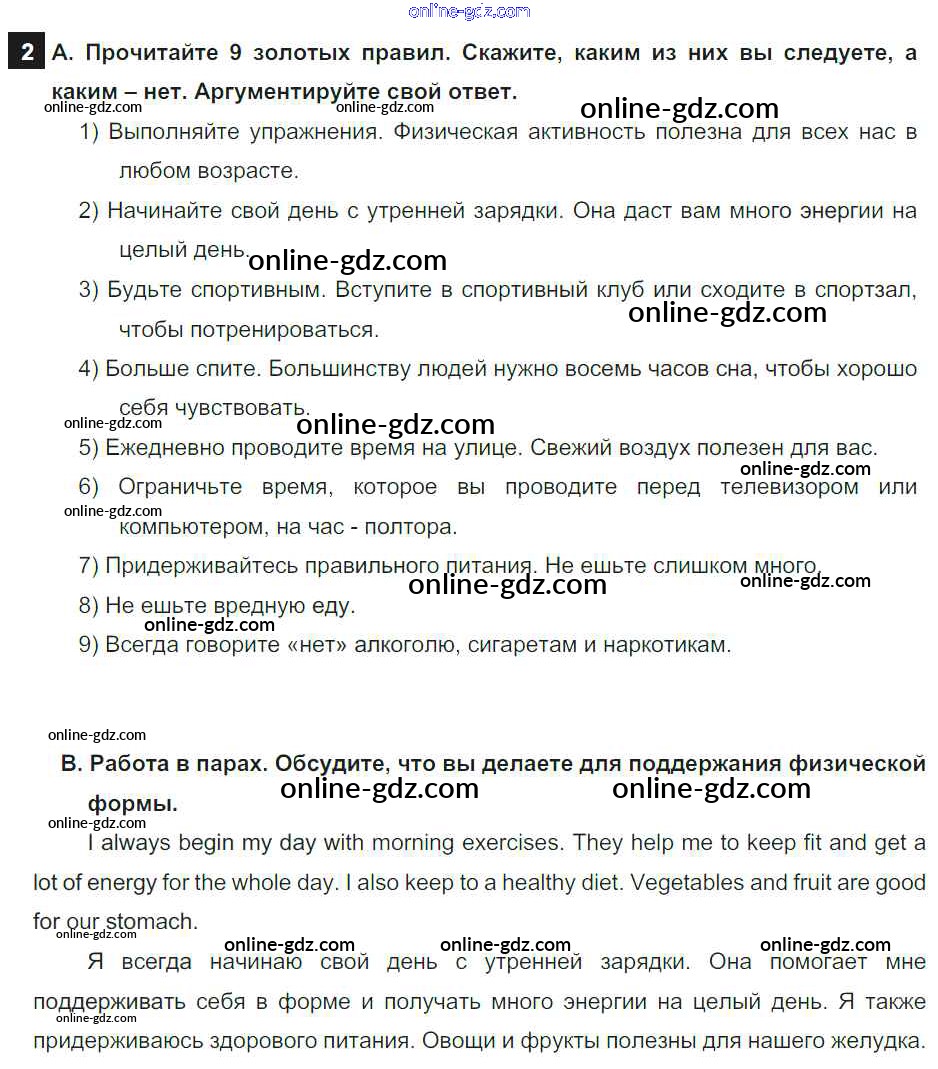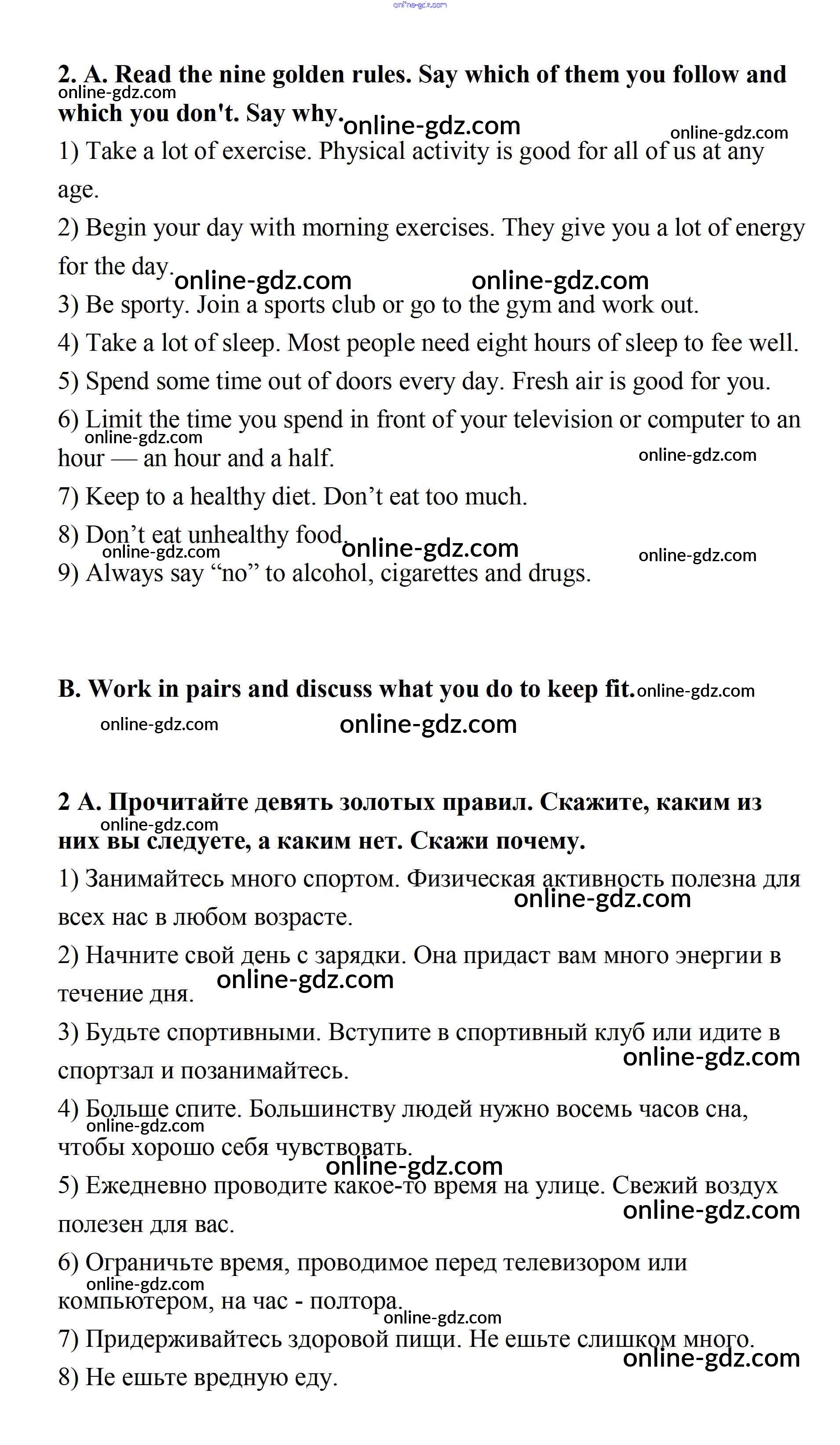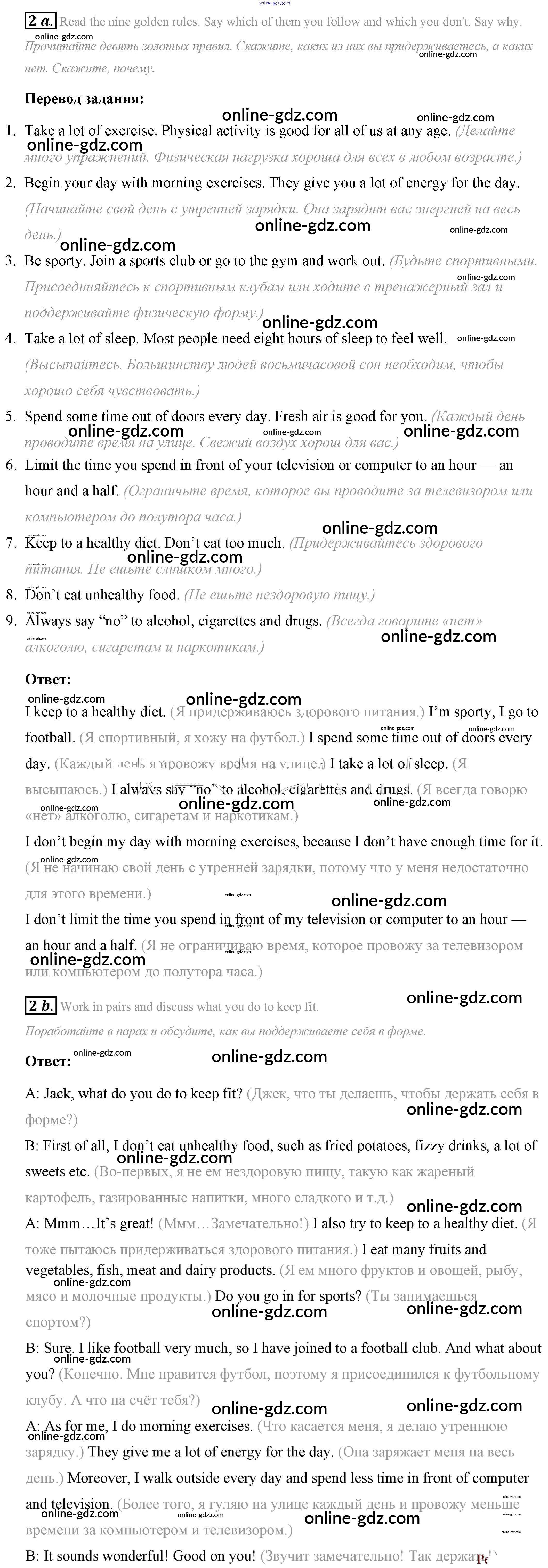 Готовые домашние задания по Английскому языку за 7 класс Учебник Афанасьева, Михеева Rainbow 2019 - Step 1 UNIT 6. LIVING HEALTHY. 2
