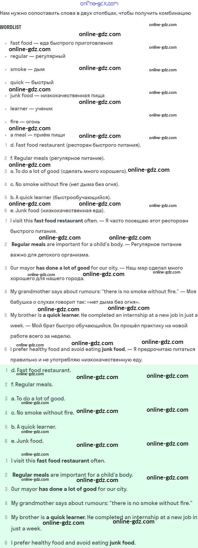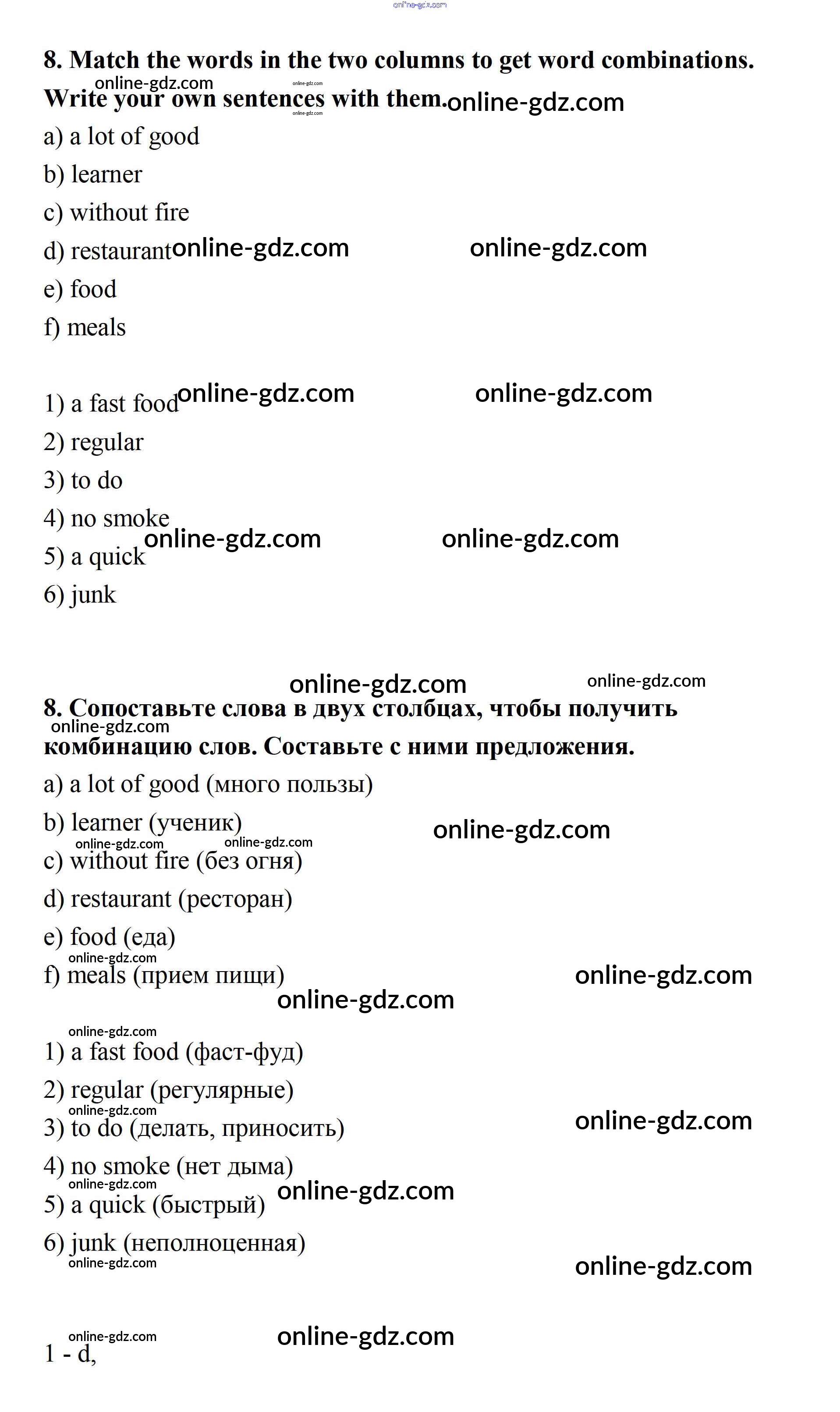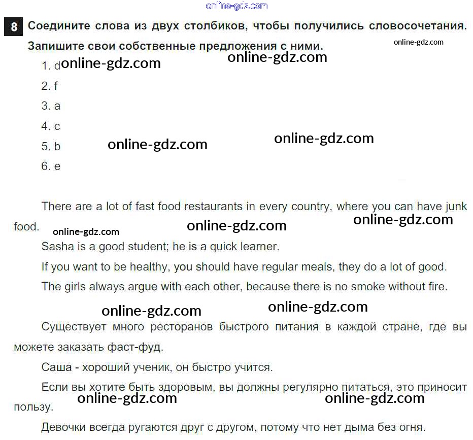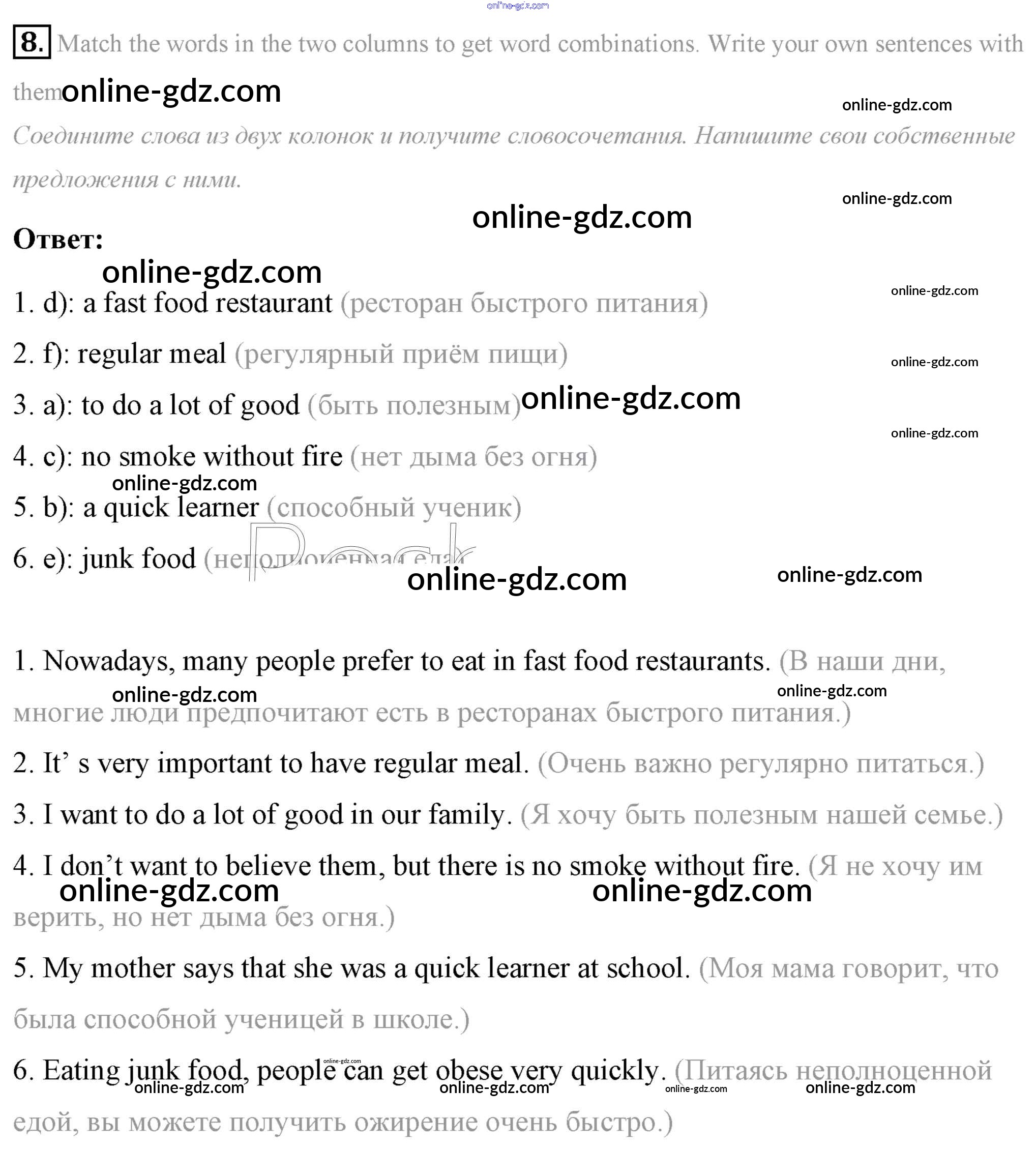 Готовые домашние задания по Английскому языку за 7 класс Учебник Афанасьева, Михеева Rainbow 2019 - Step 1 UNIT 6. LIVING HEALTHY. 8
