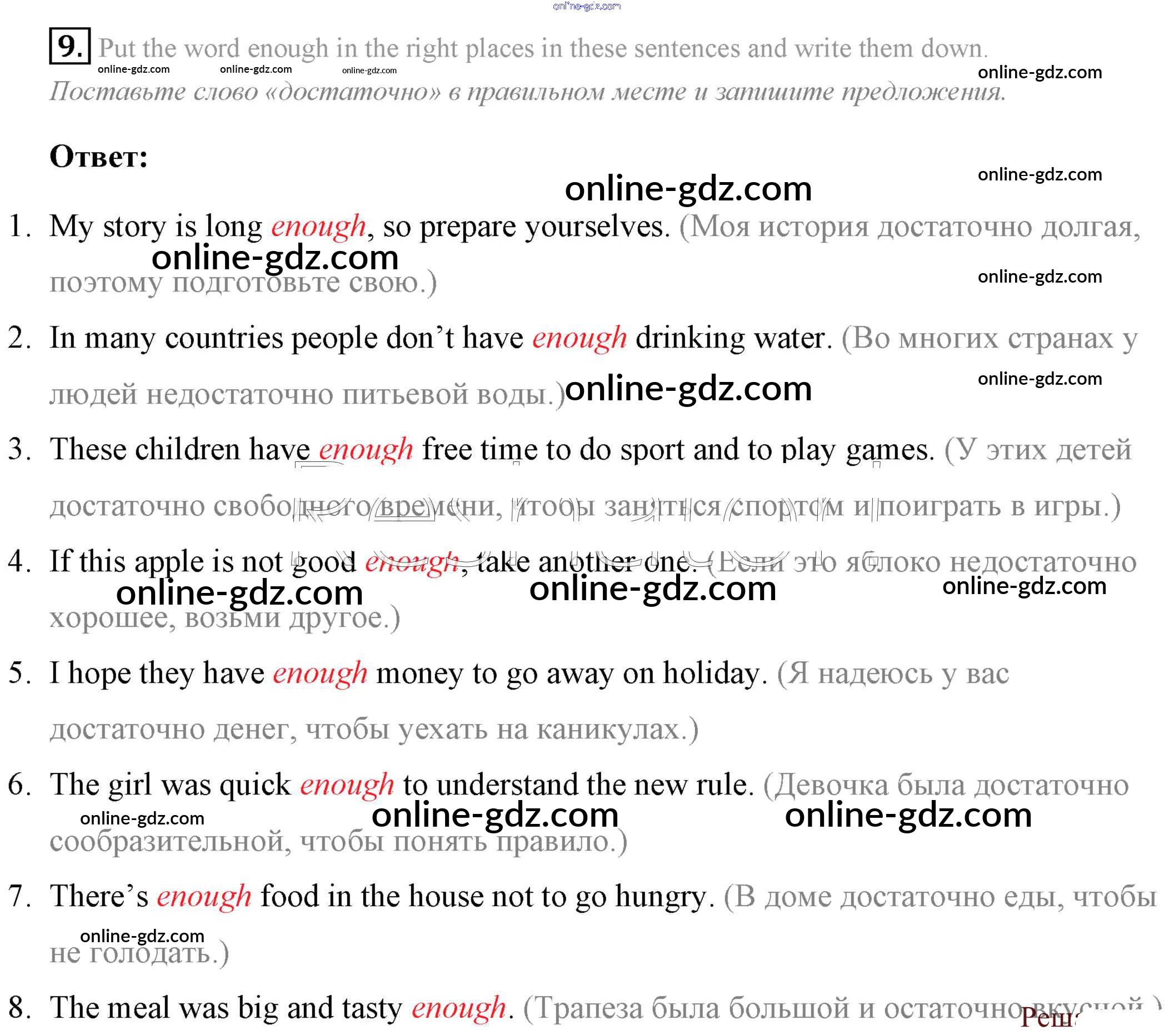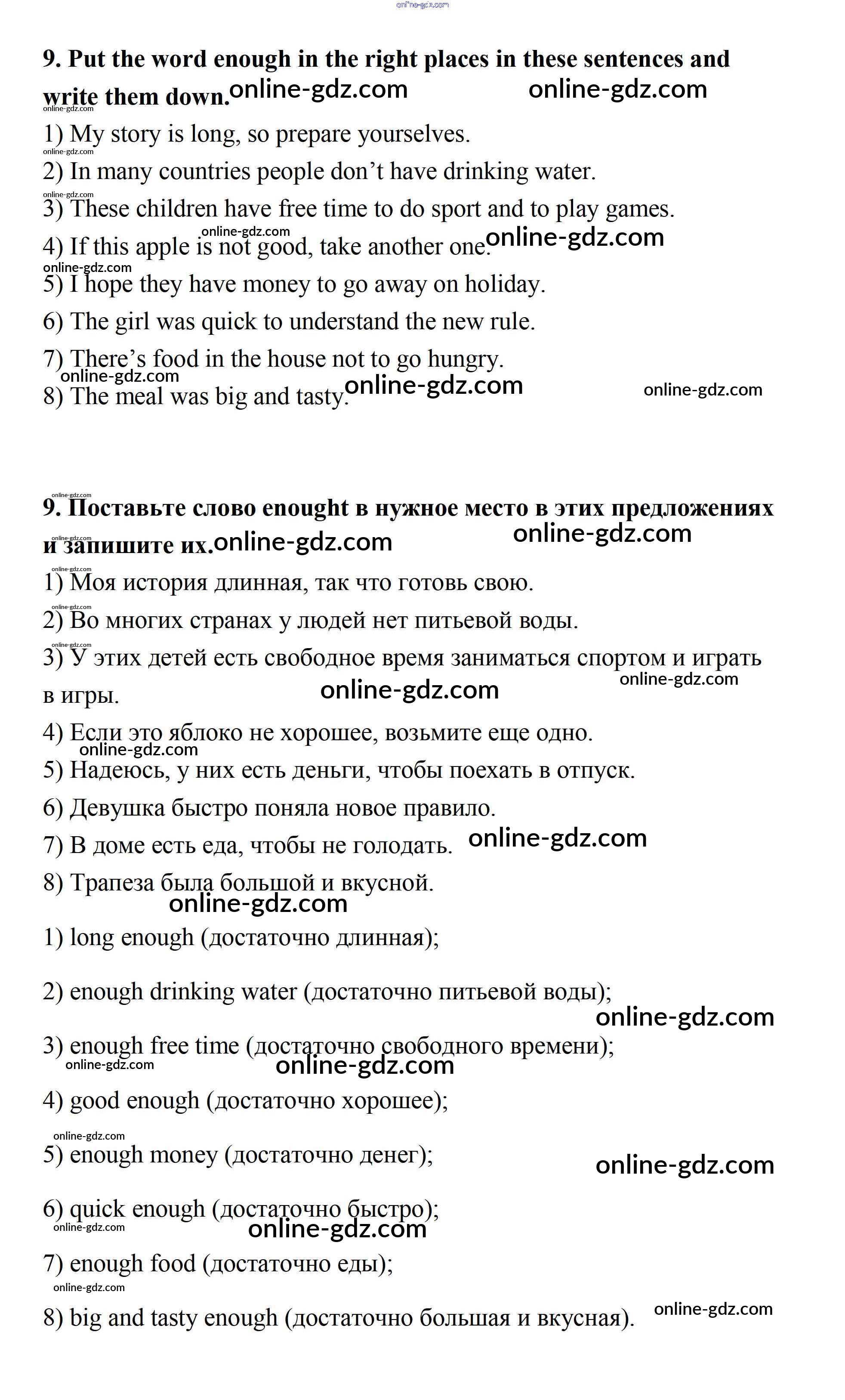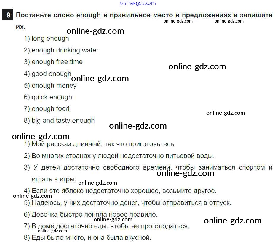Готовые домашние задания по Английскому языку за 7 класс Учебник Афанасьева, Михеева Rainbow 2019 - Step 1 UNIT 6. LIVING HEALTHY. 9