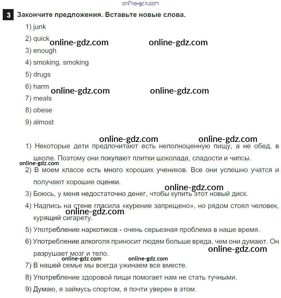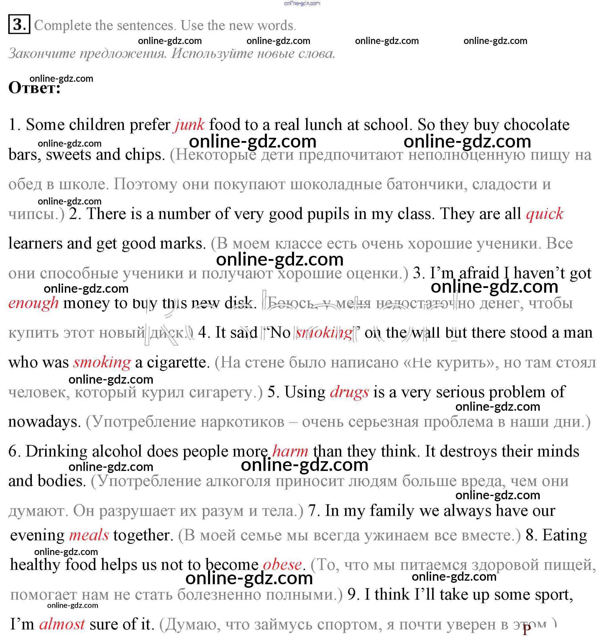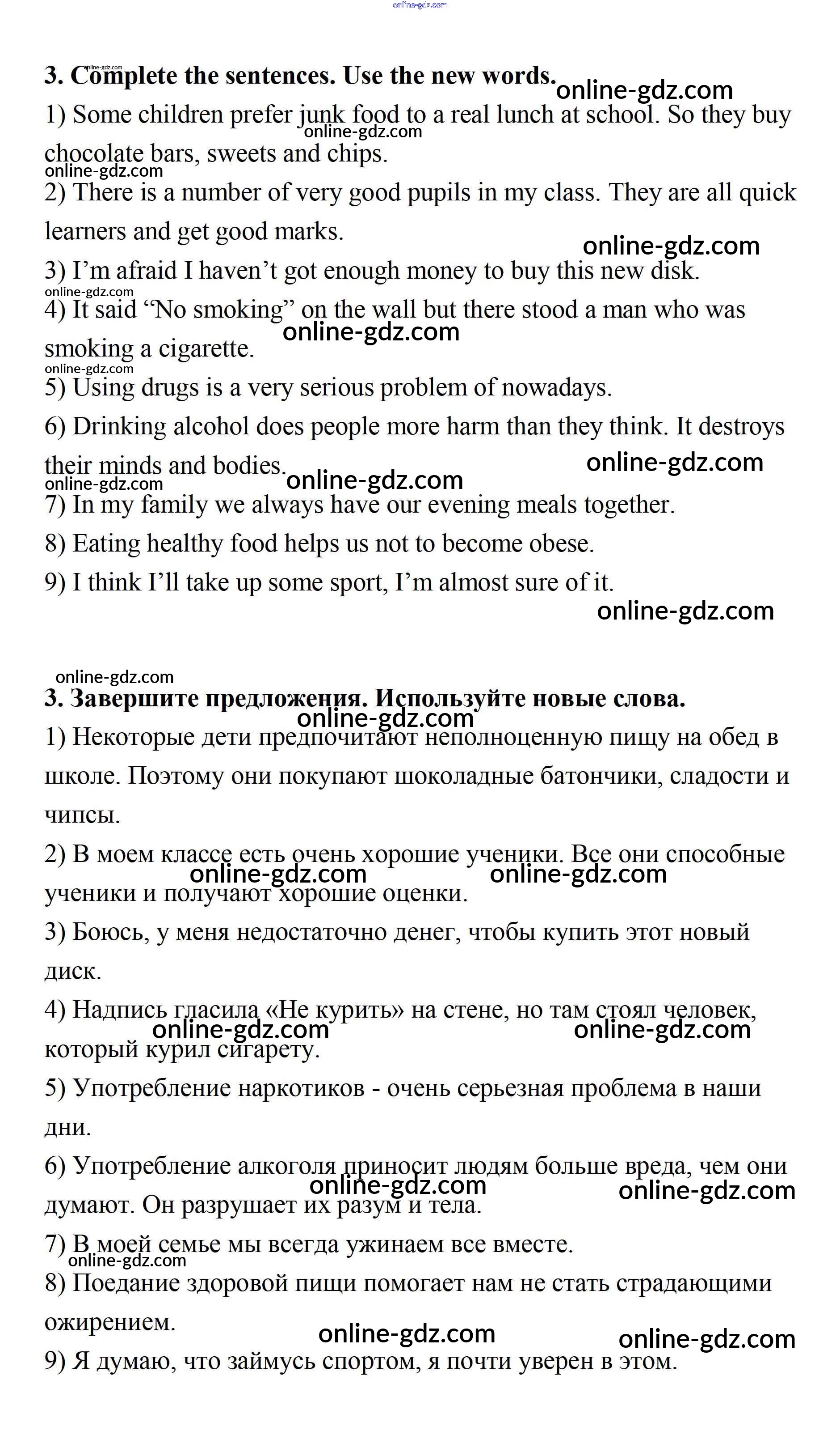 Готовые домашние задания по Английскому языку за 7 класс Учебник Афанасьева, Михеева Rainbow 2019 - Step 2 UNIT 6. LIVING HEALTHY. 3