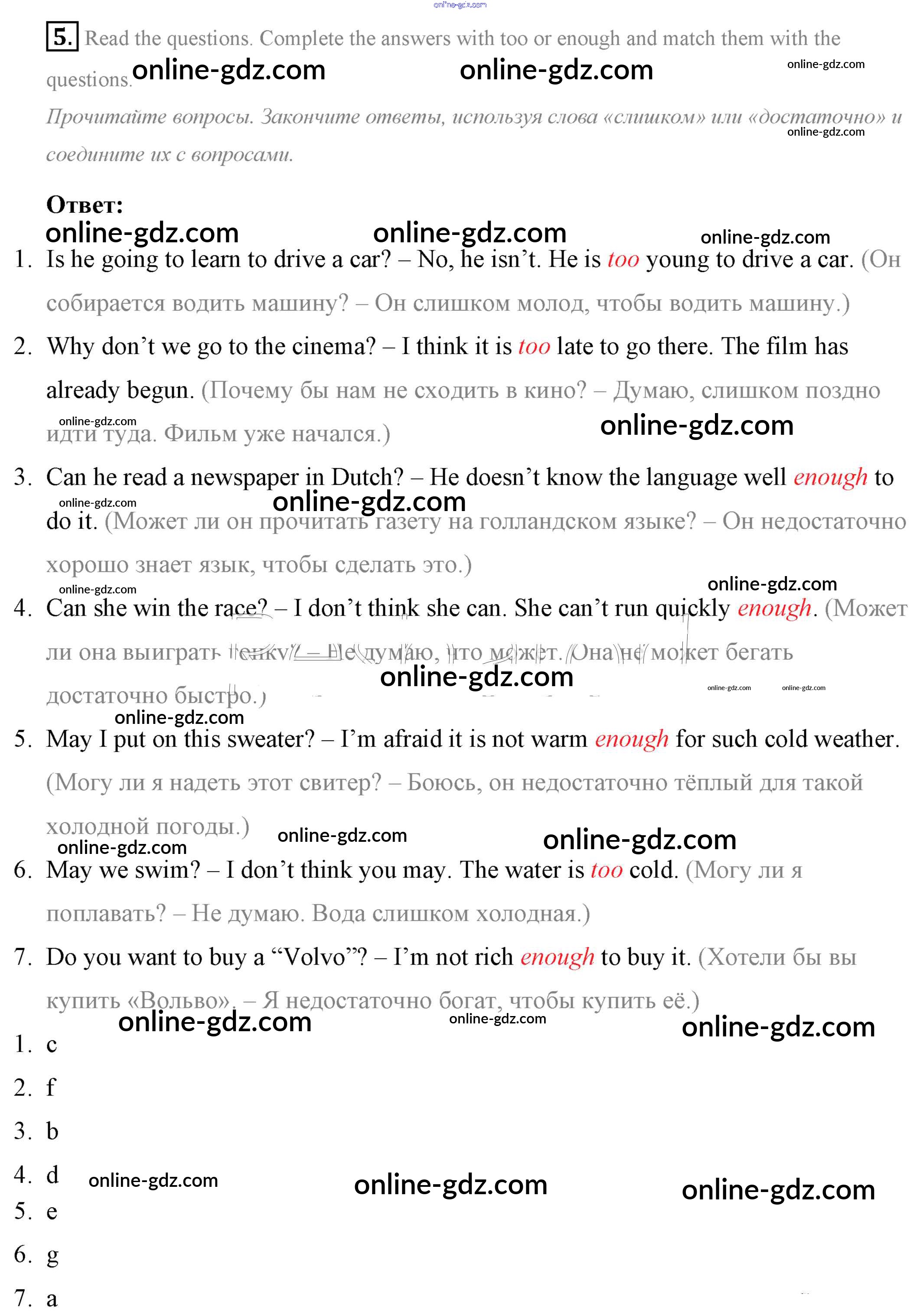 Готовые домашние задания по Английскому языку за 7 класс Учебник Афанасьева, Михеева Rainbow 2019 - Step 2 UNIT 6. LIVING HEALTHY. 5
