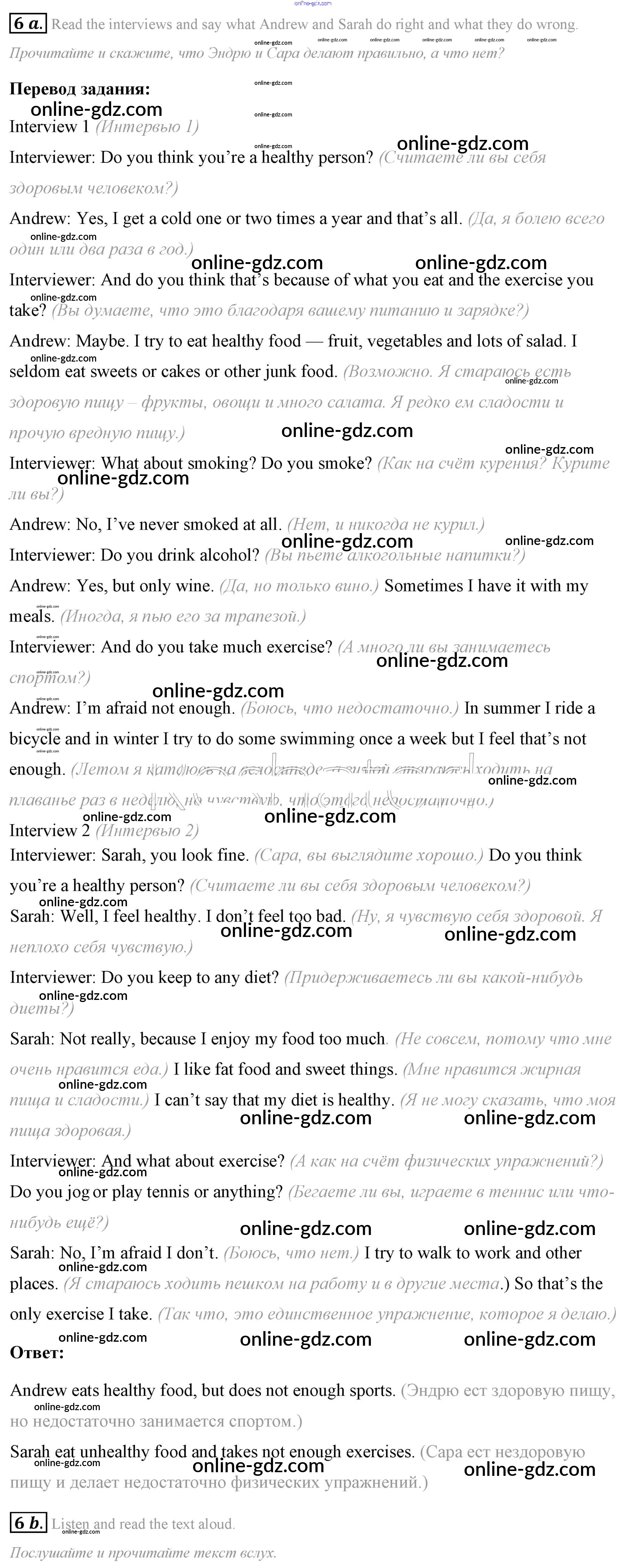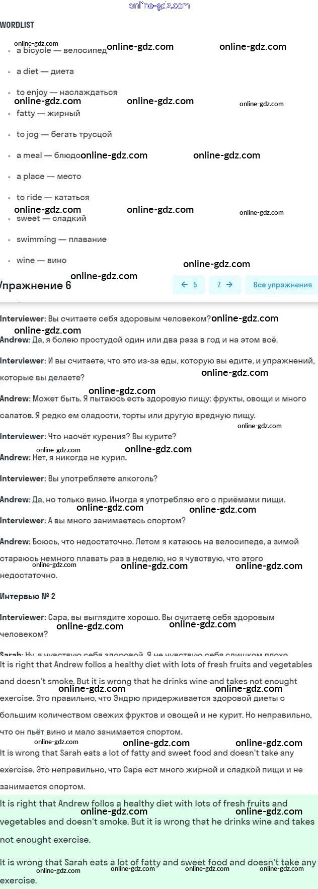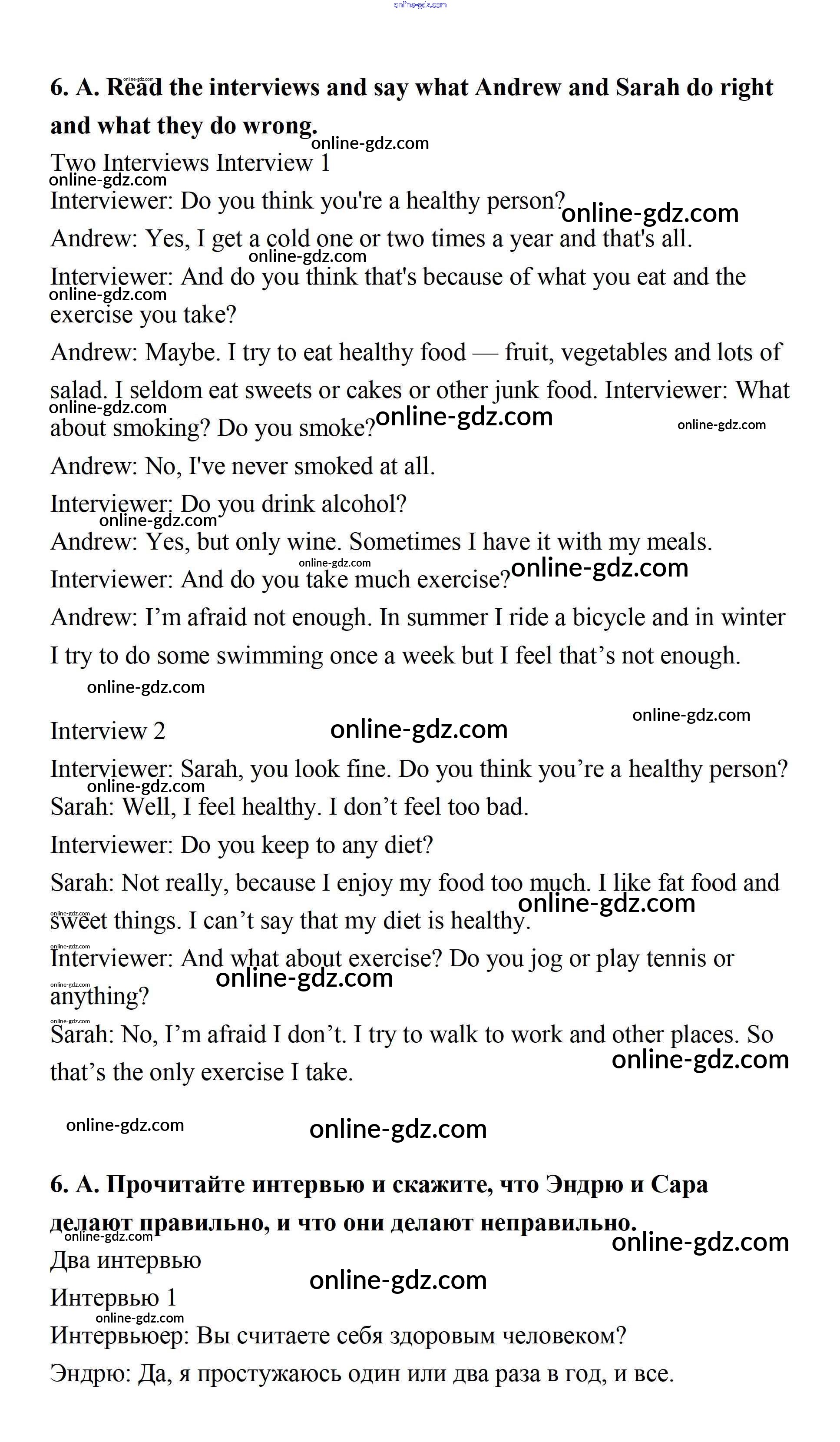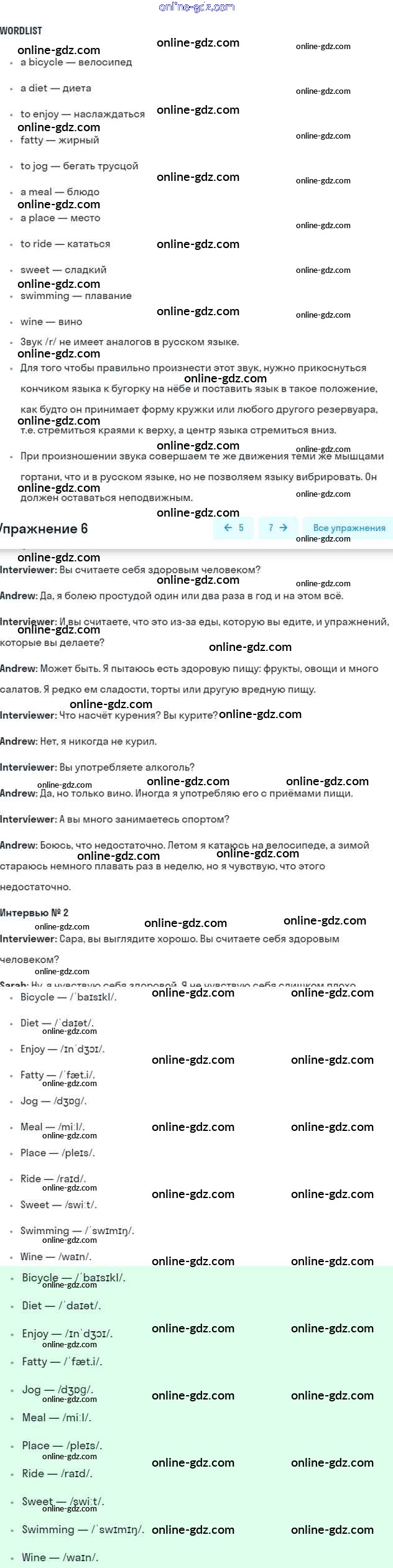 Готовые домашние задания по Английскому языку за 7 класс Учебник Афанасьева, Михеева Rainbow 2019 - Step 2 UNIT 6. LIVING HEALTHY. 6