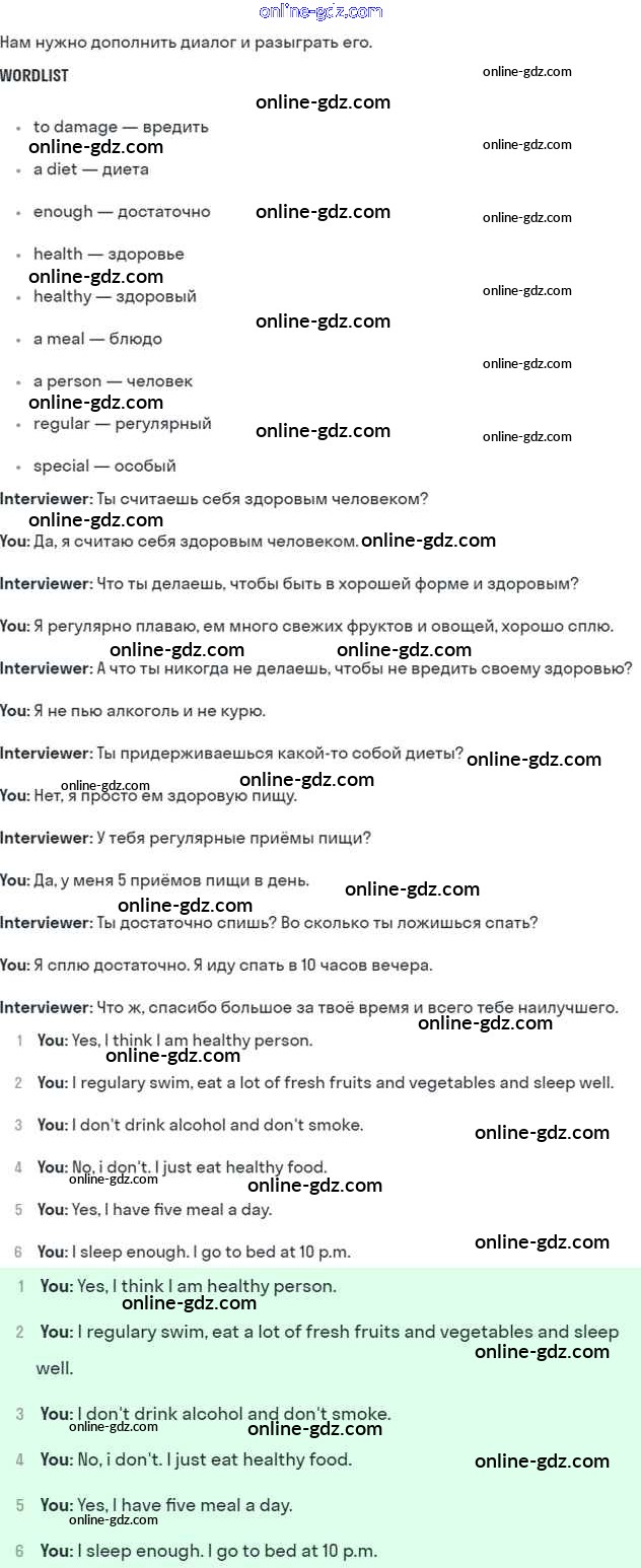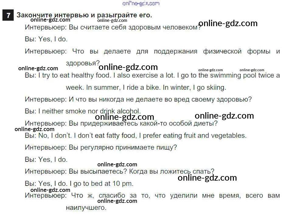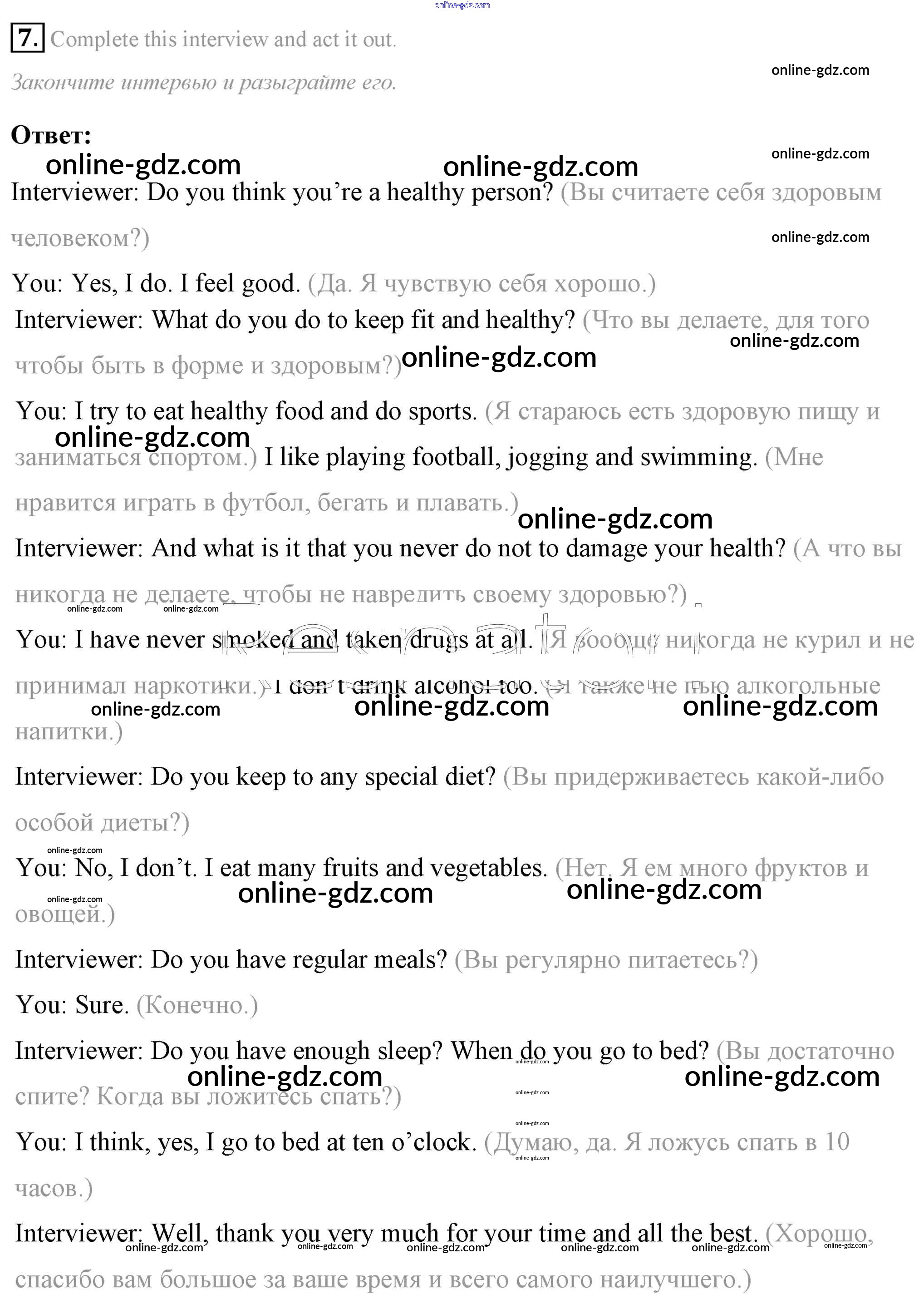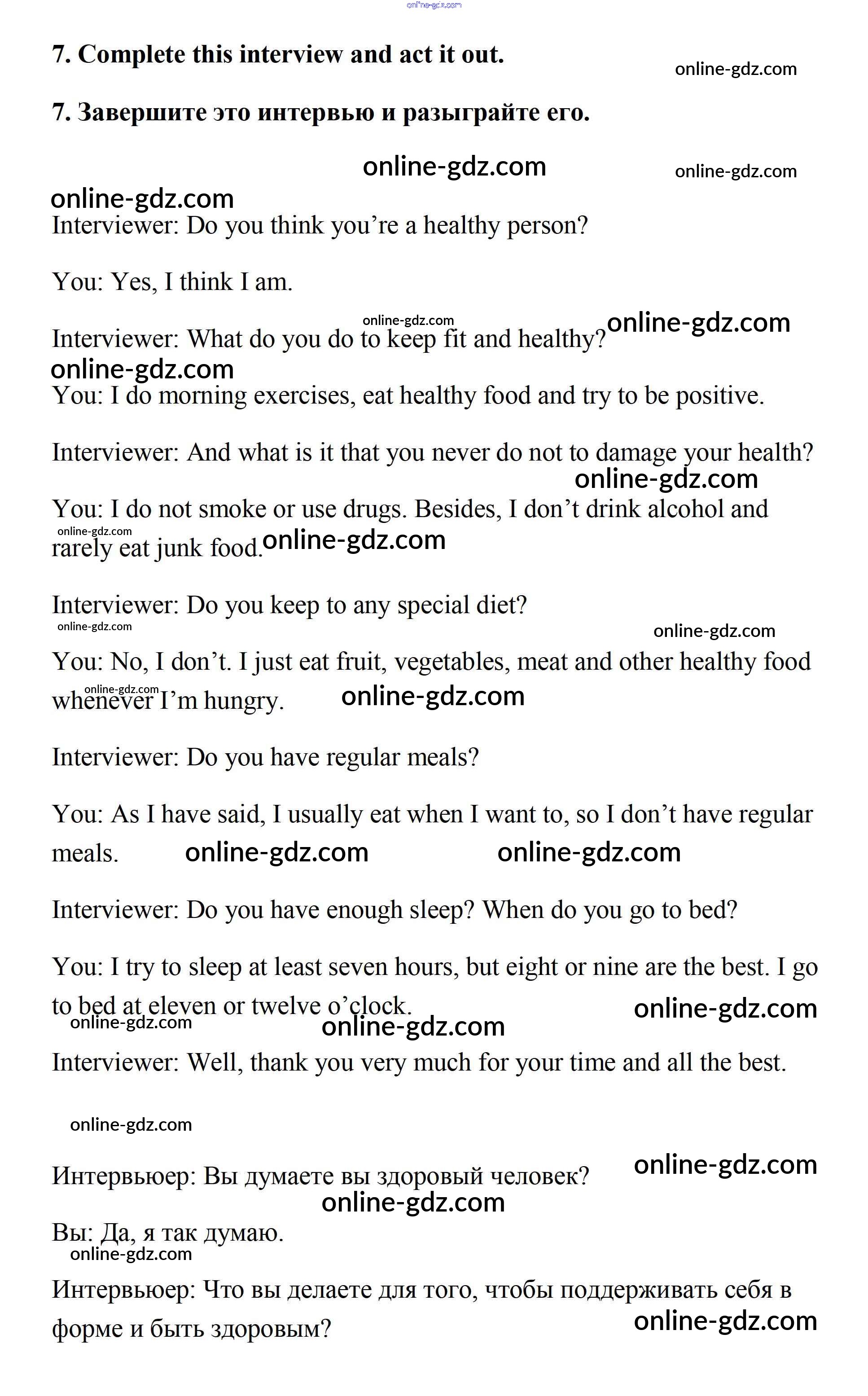 Готовые домашние задания по Английскому языку за 7 класс Учебник Афанасьева, Михеева Rainbow 2019 - Step 2 UNIT 6. LIVING HEALTHY. 7