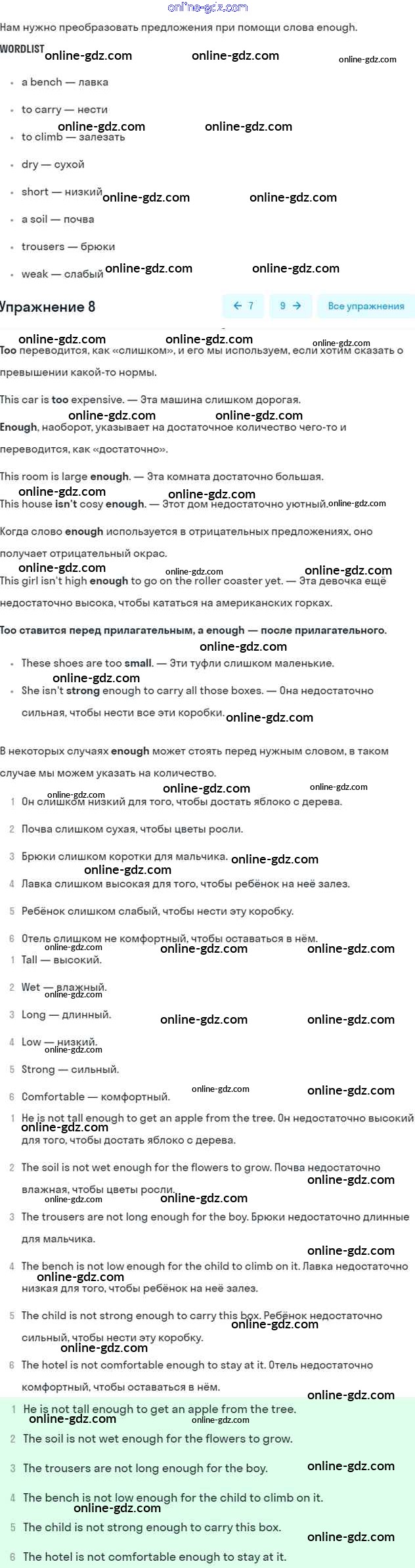 Готовые домашние задания по Английскому языку за 7 класс Учебник Афанасьева, Михеева Rainbow 2019 - Step 2 UNIT 6. LIVING HEALTHY. 8