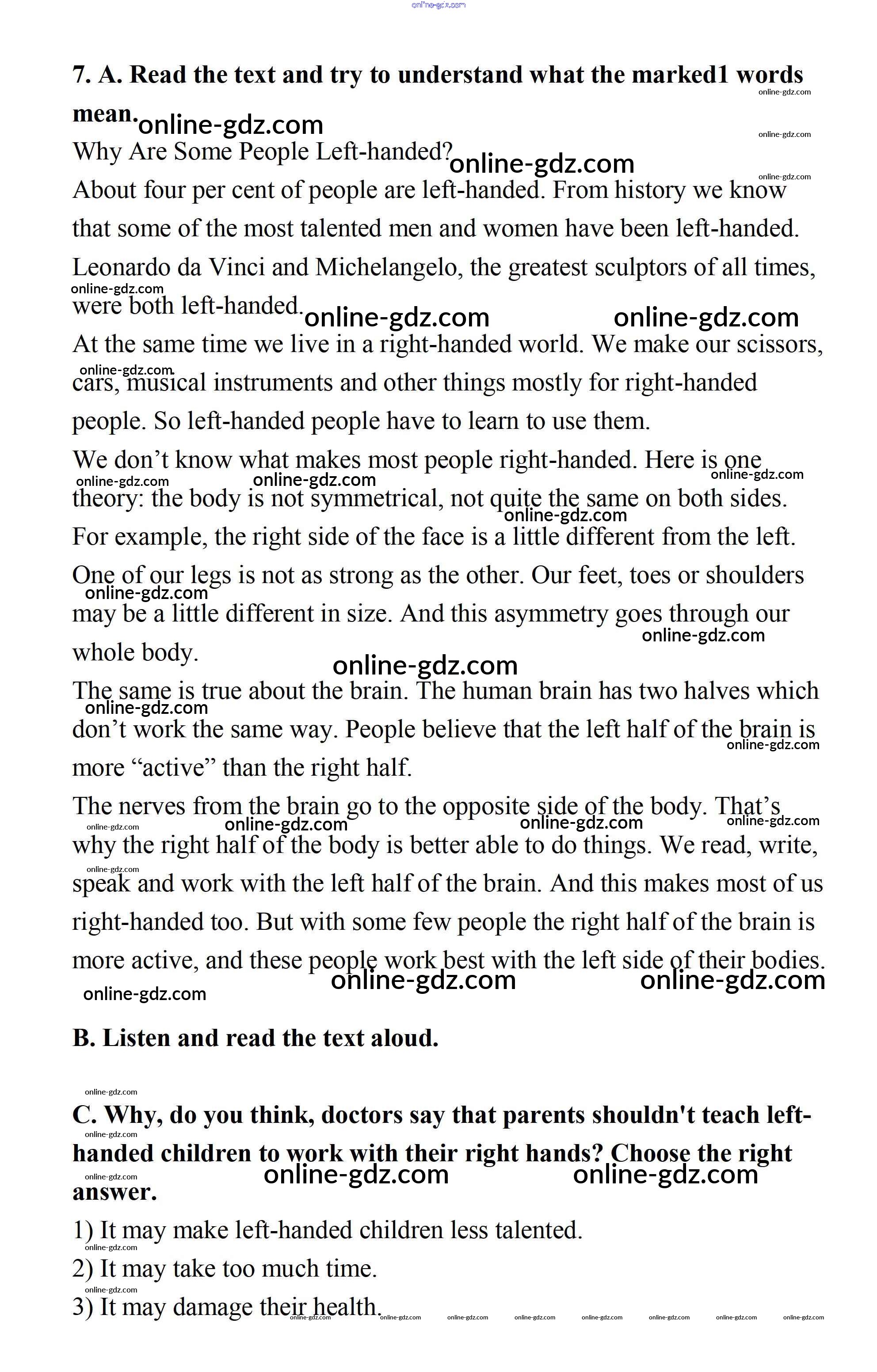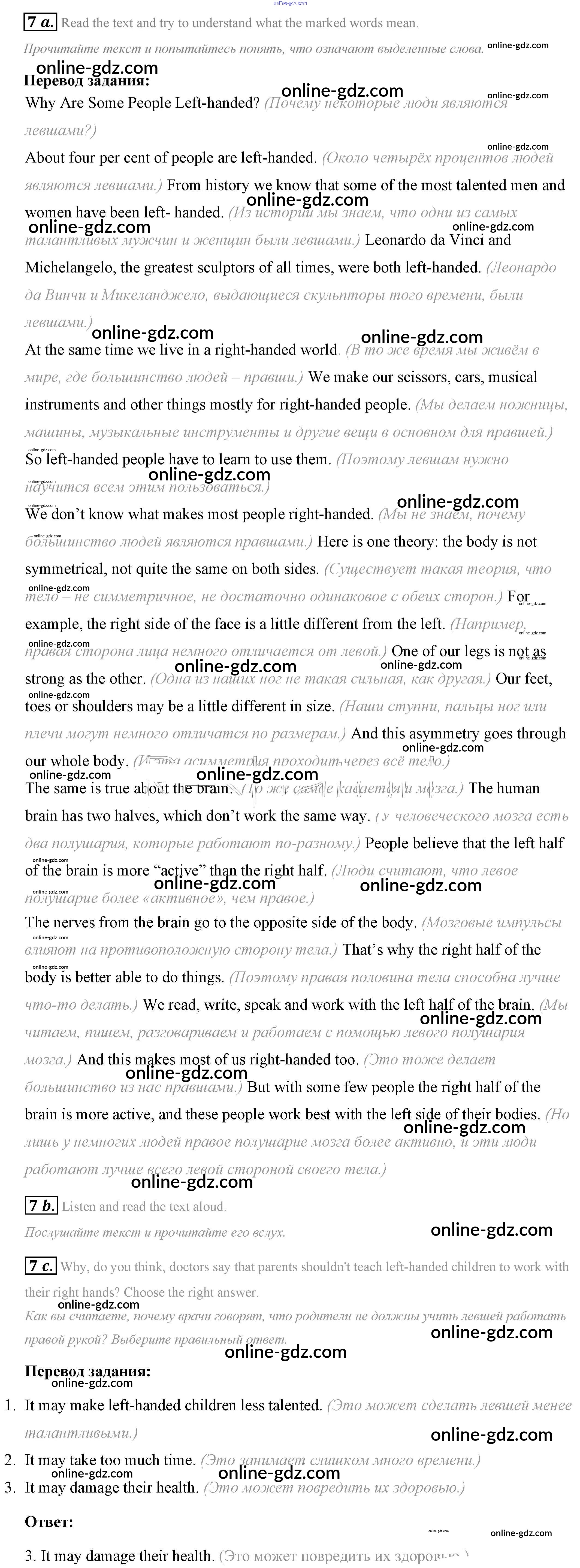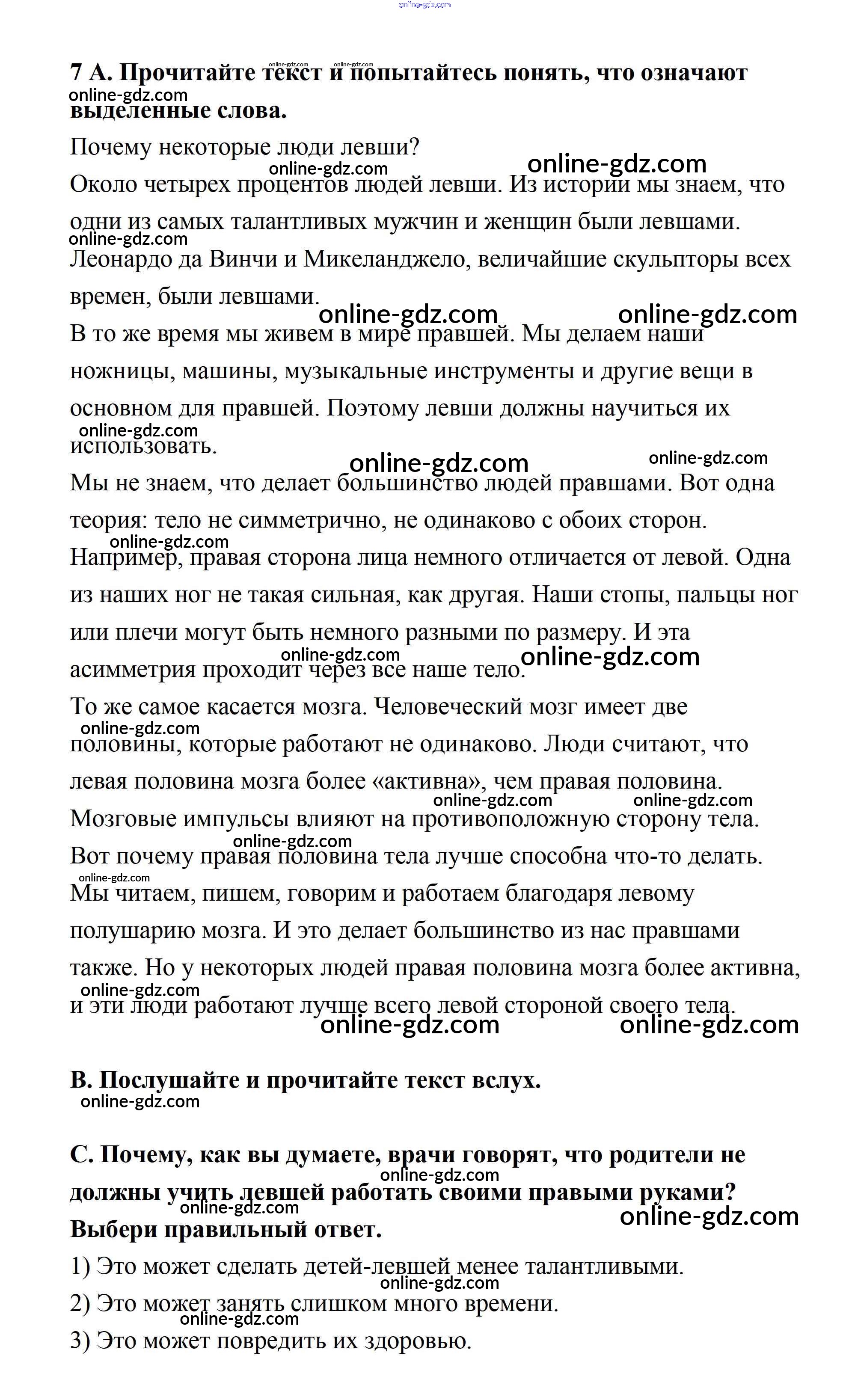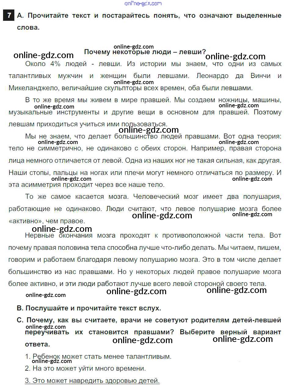 Готовые домашние задания по Английскому языку за 7 класс Учебник Афанасьева, Михеева Rainbow 2019 - Step 3 UNIT 6. LIVING HEALTHY. 7
