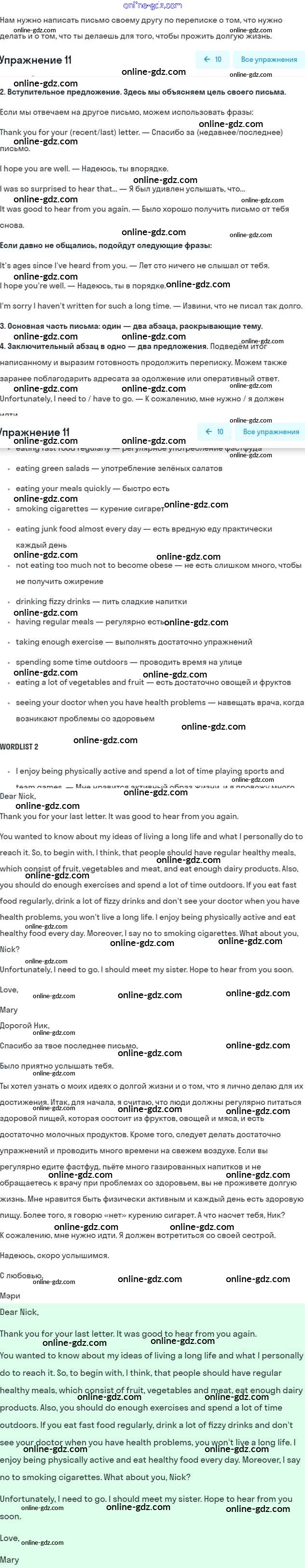 Готовые домашние задания по Английскому языку за 7 класс Учебник Афанасьева, Михеева Rainbow 2019 - Step 4 UNIT 6. LIVING HEALTHY. 11