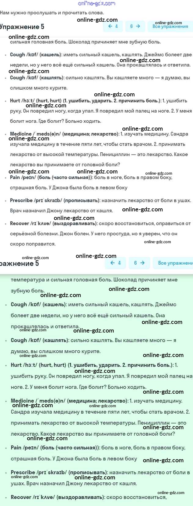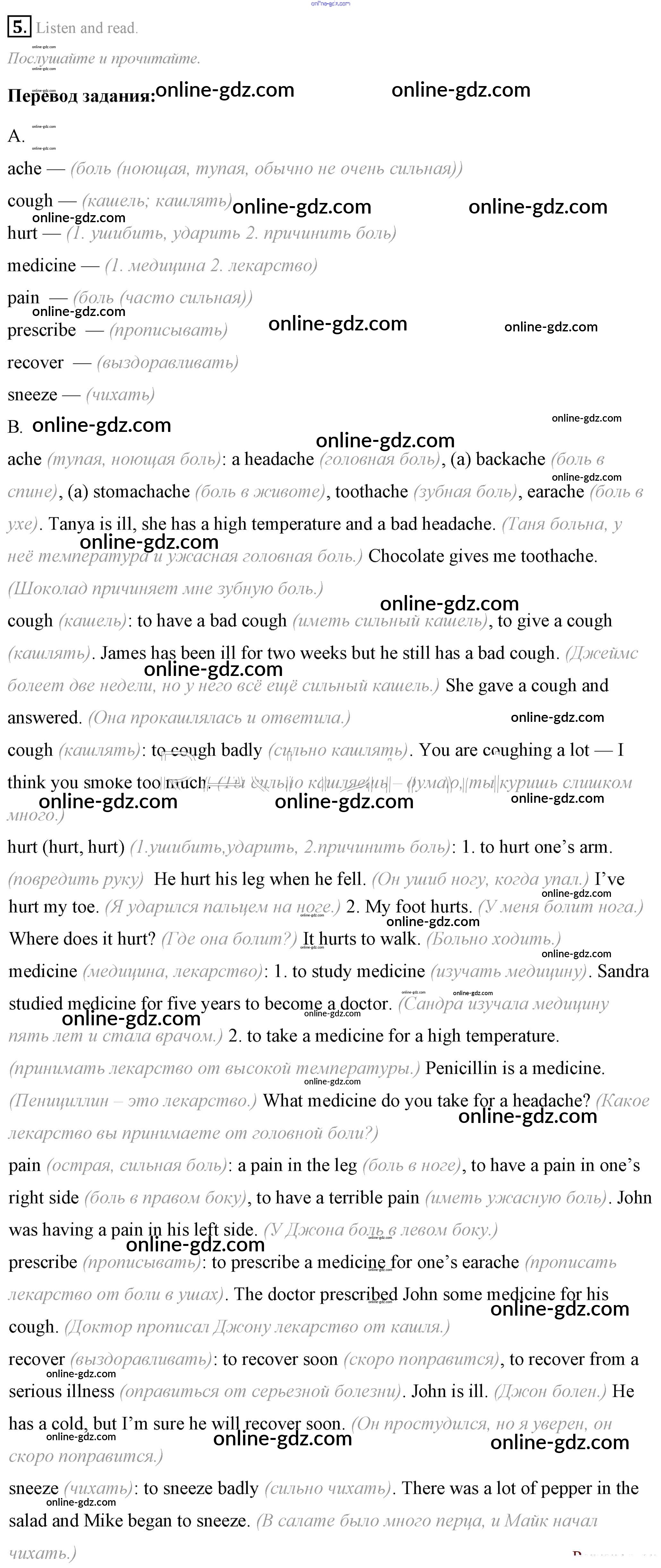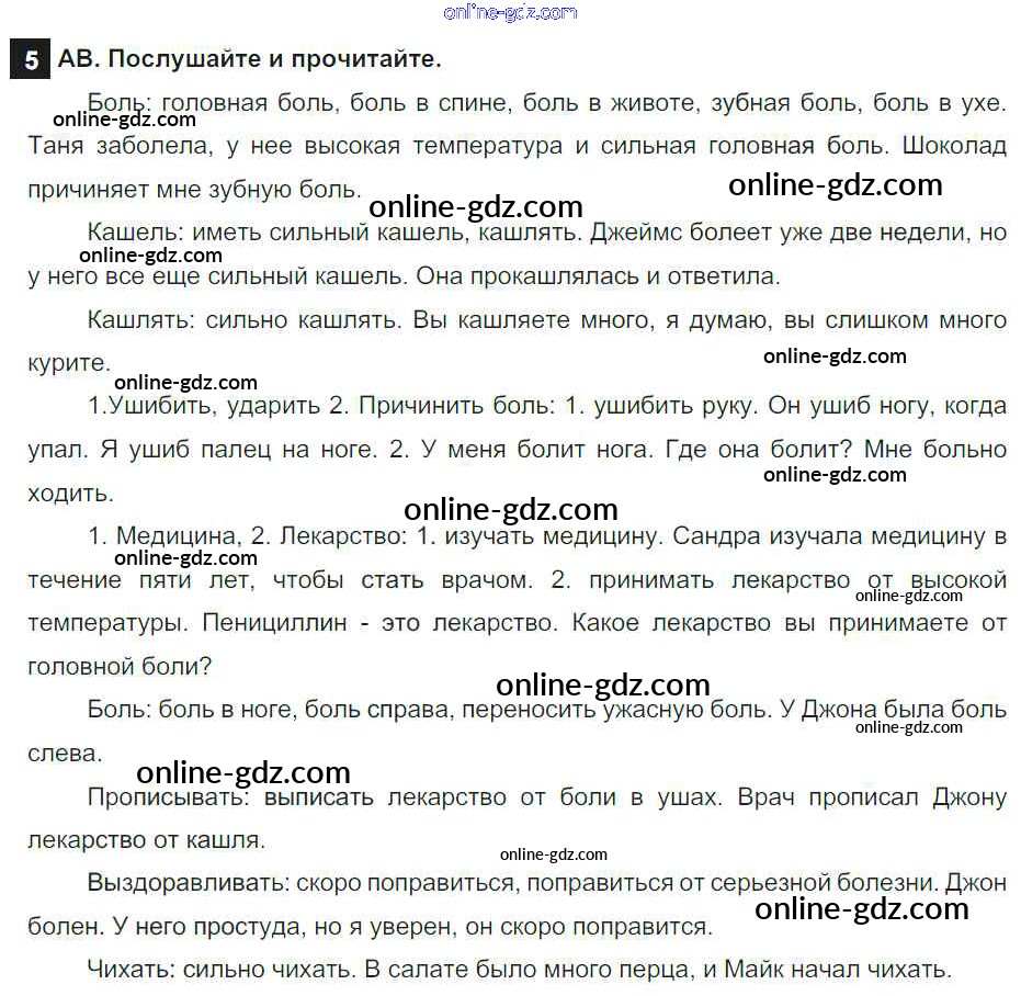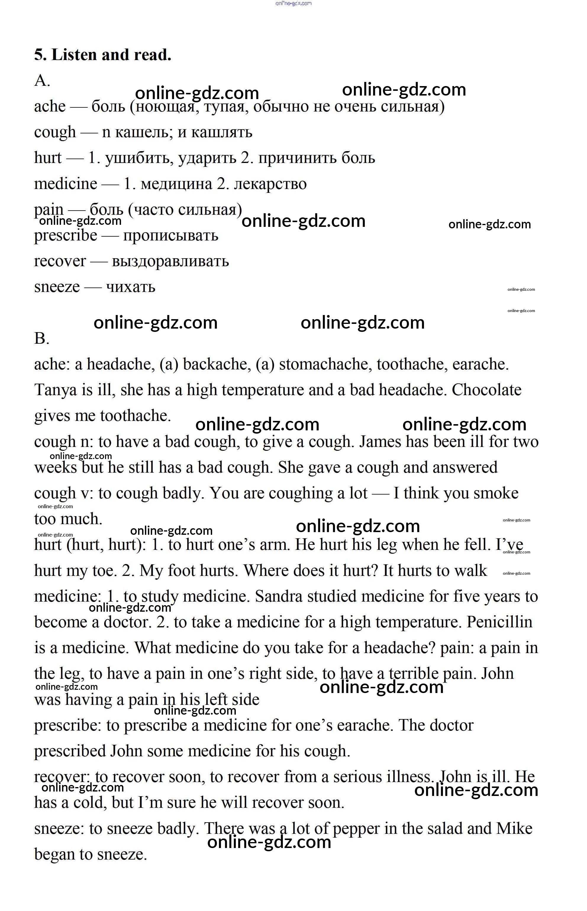 Готовые домашние задания по Английскому языку за 7 класс Учебник Афанасьева, Михеева Rainbow 2019 - Step 4 UNIT 6. LIVING HEALTHY. 5