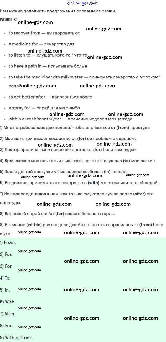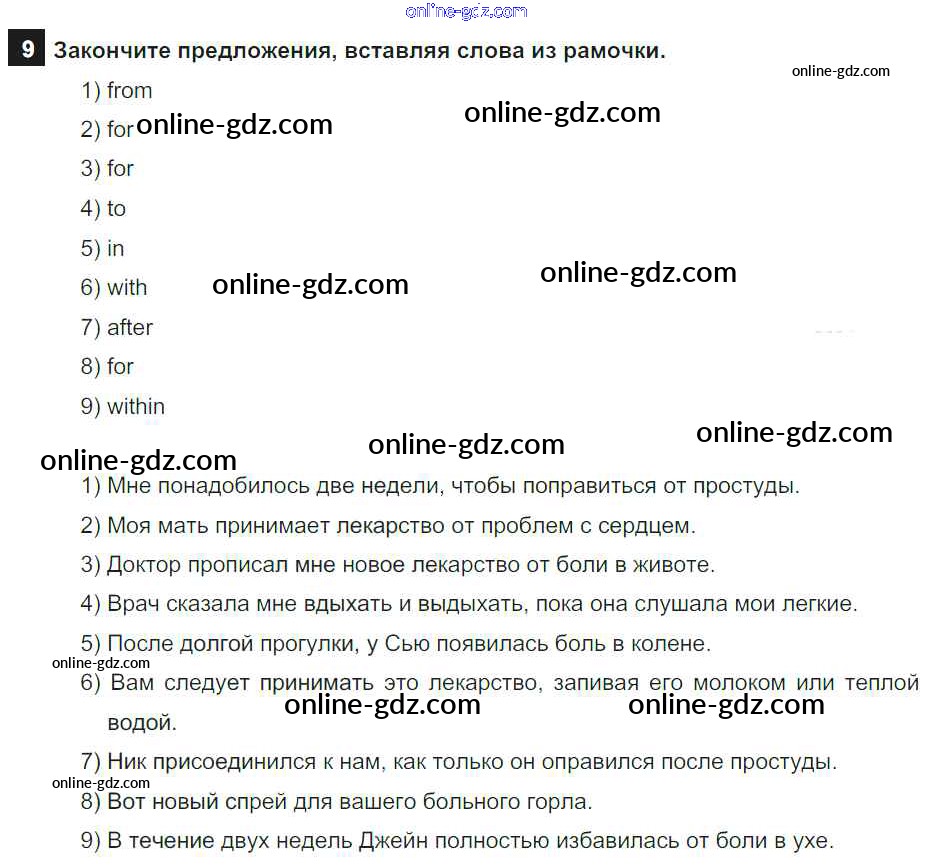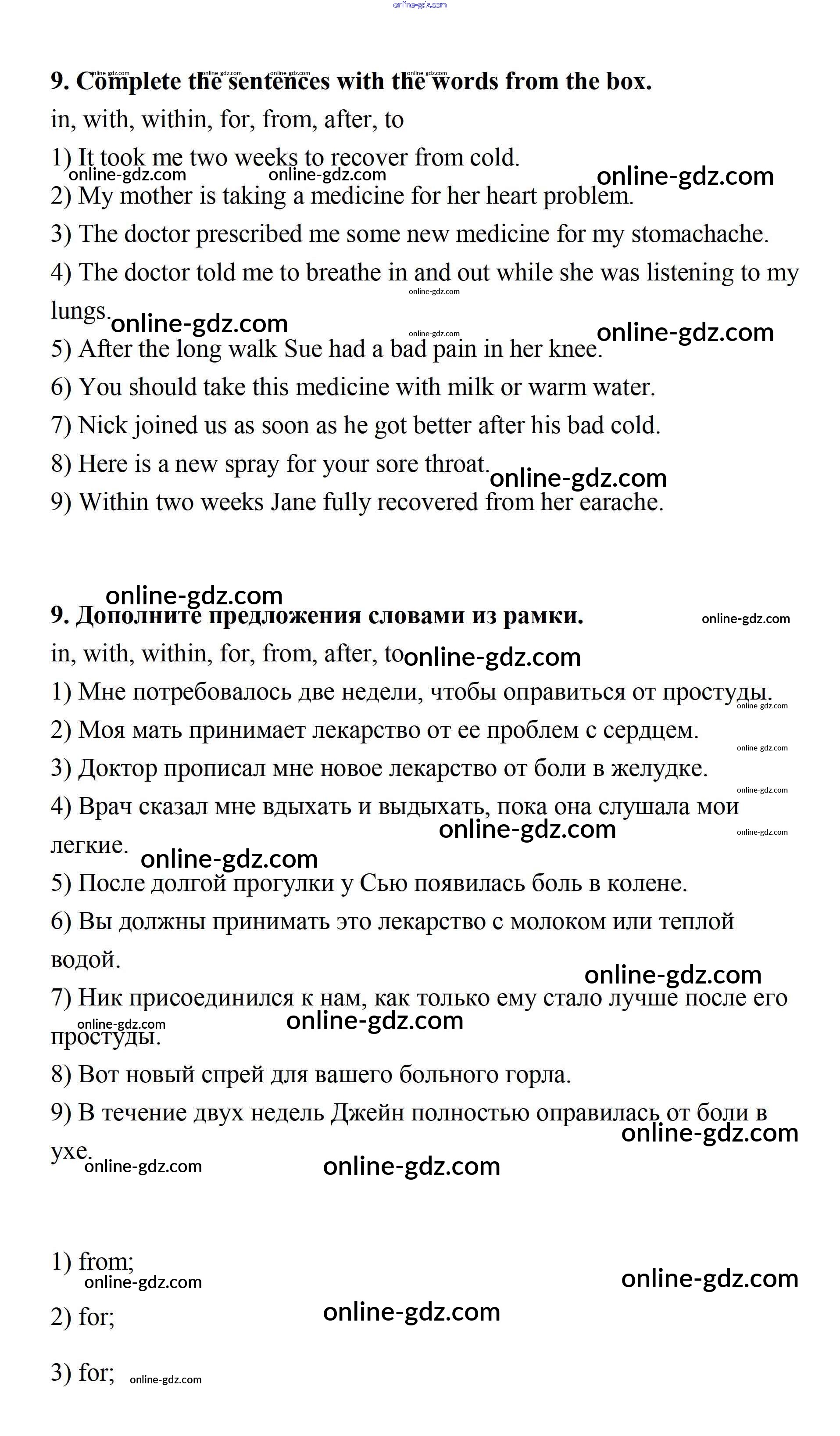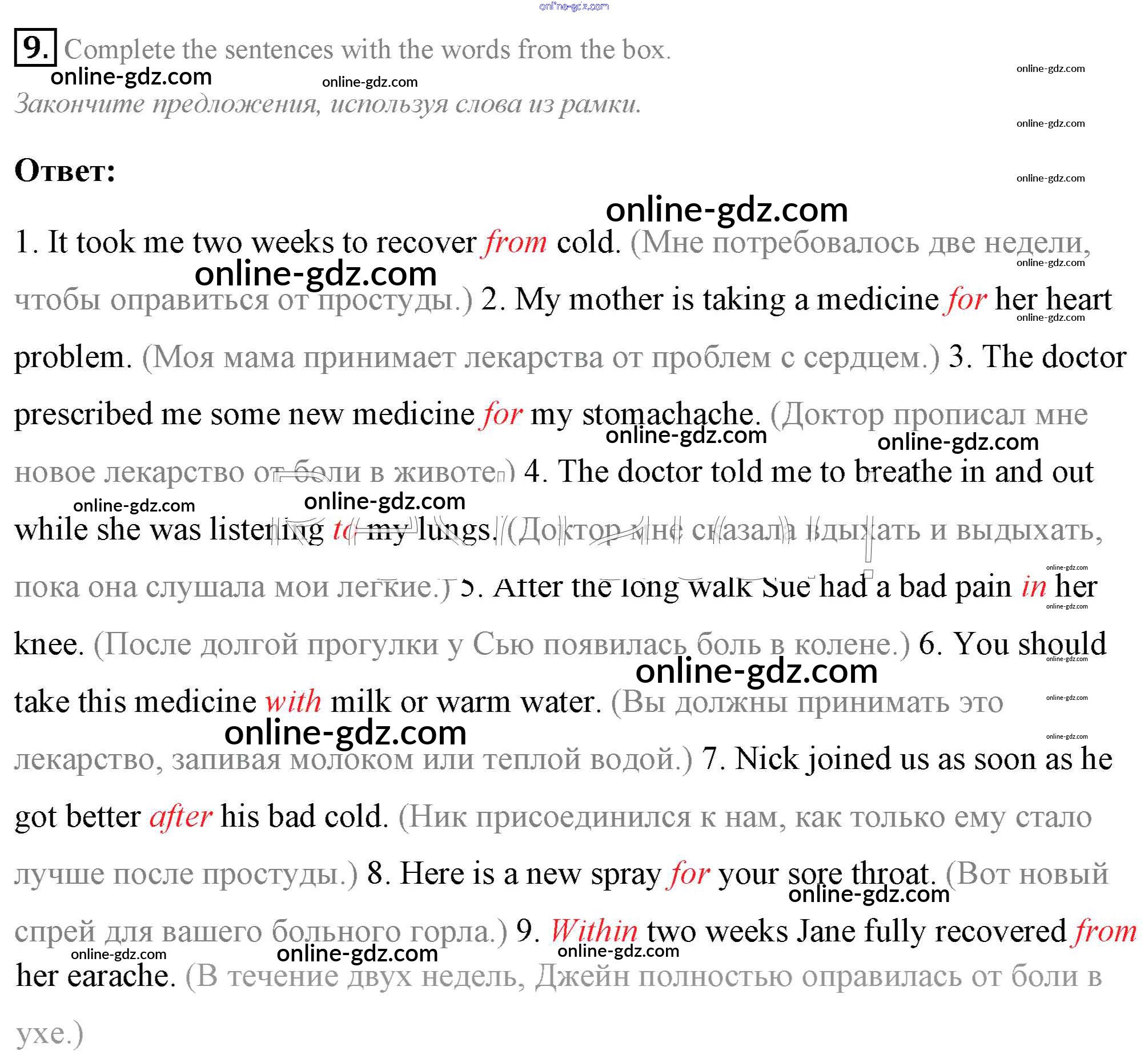 Готовые домашние задания по Английскому языку за 7 класс Учебник Афанасьева, Михеева Rainbow 2019 - Step 4 UNIT 6. LIVING HEALTHY. 9