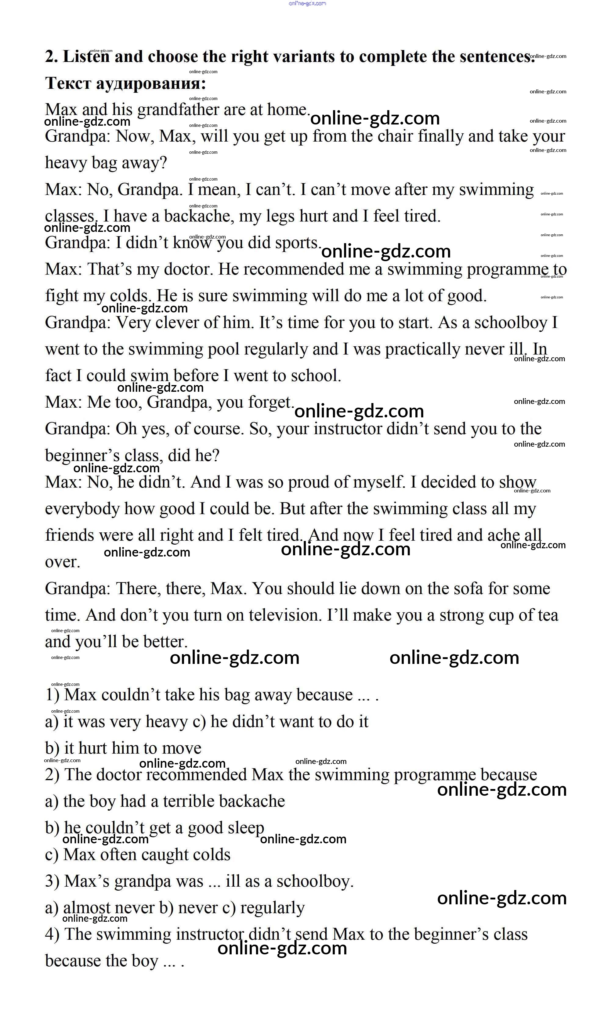 Готовые домашние задания по Английскому языку за 7 класс Учебник Афанасьева, Михеева Rainbow 2019 - Step 6 UNIT 6. LIVING HEALTHY. 2