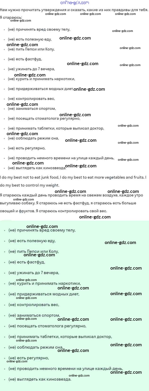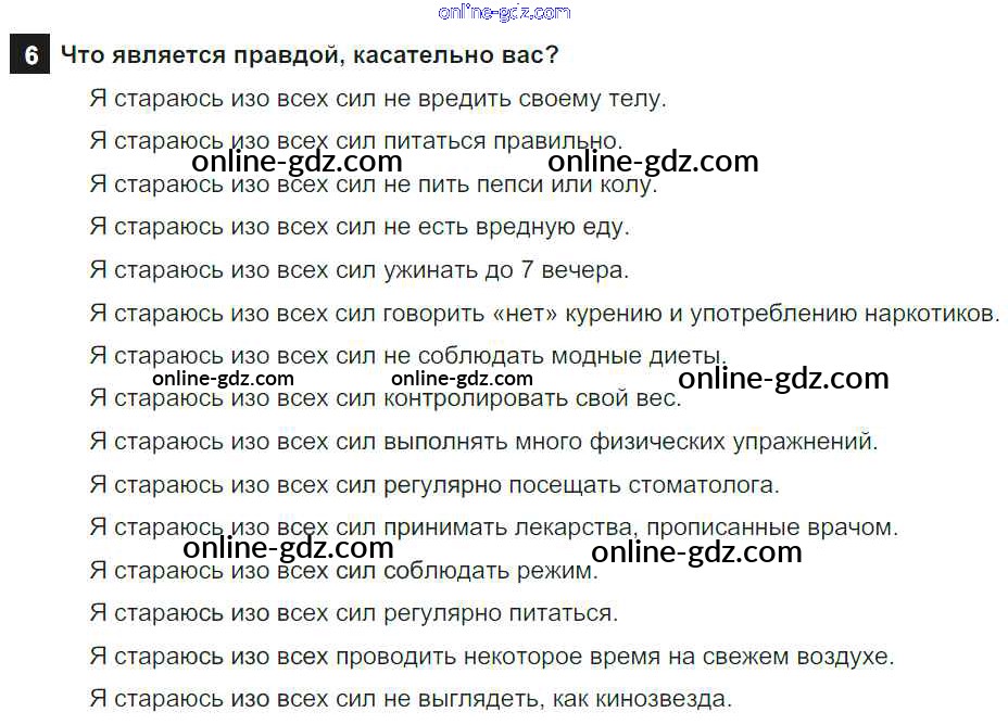 Готовые домашние задания по Английскому языку за 7 класс Учебник Афанасьева, Михеева Rainbow 2019 - Step 6 UNIT 6. LIVING HEALTHY. 6