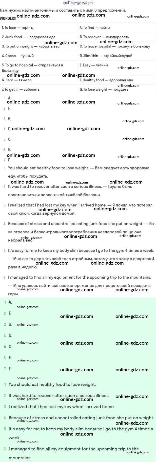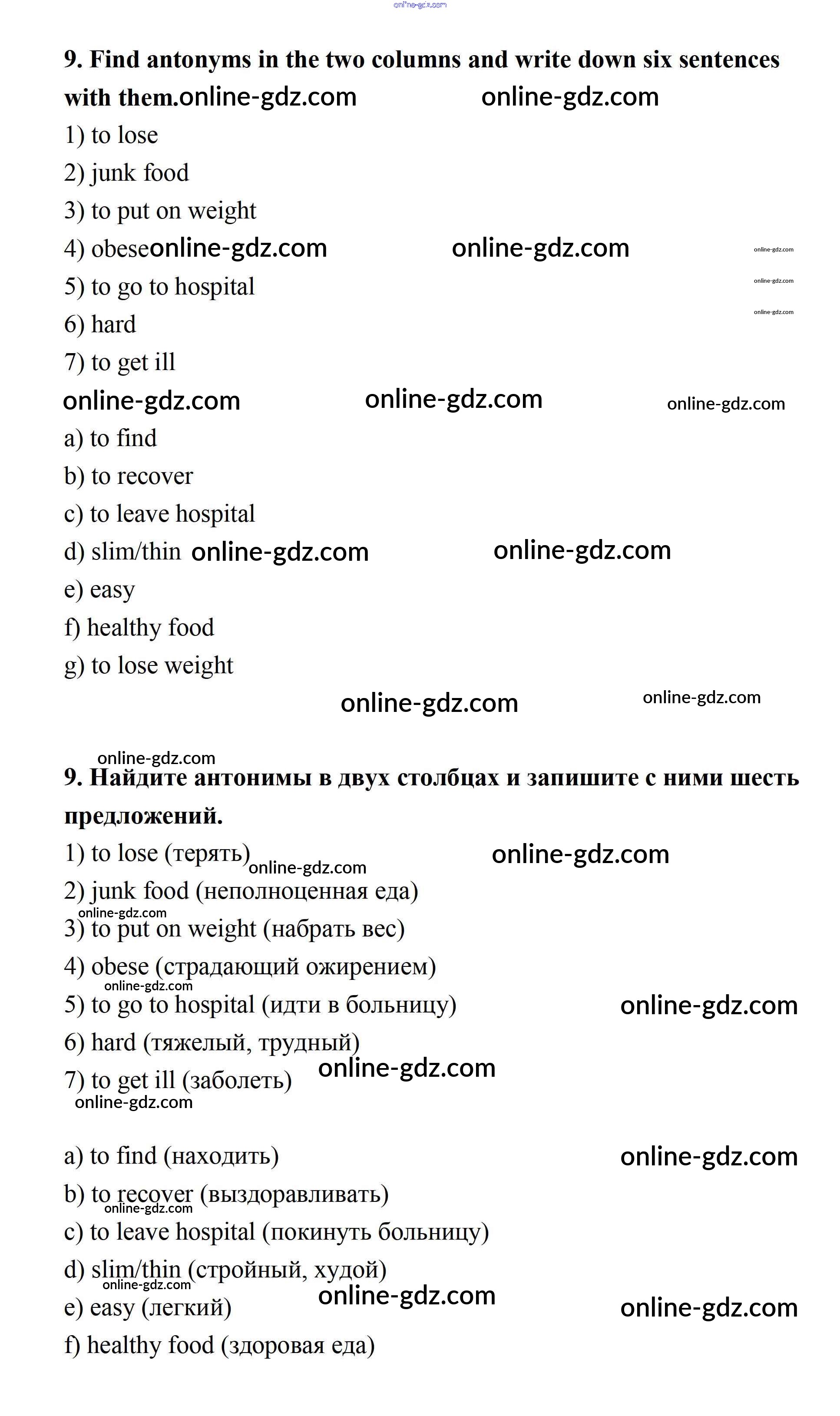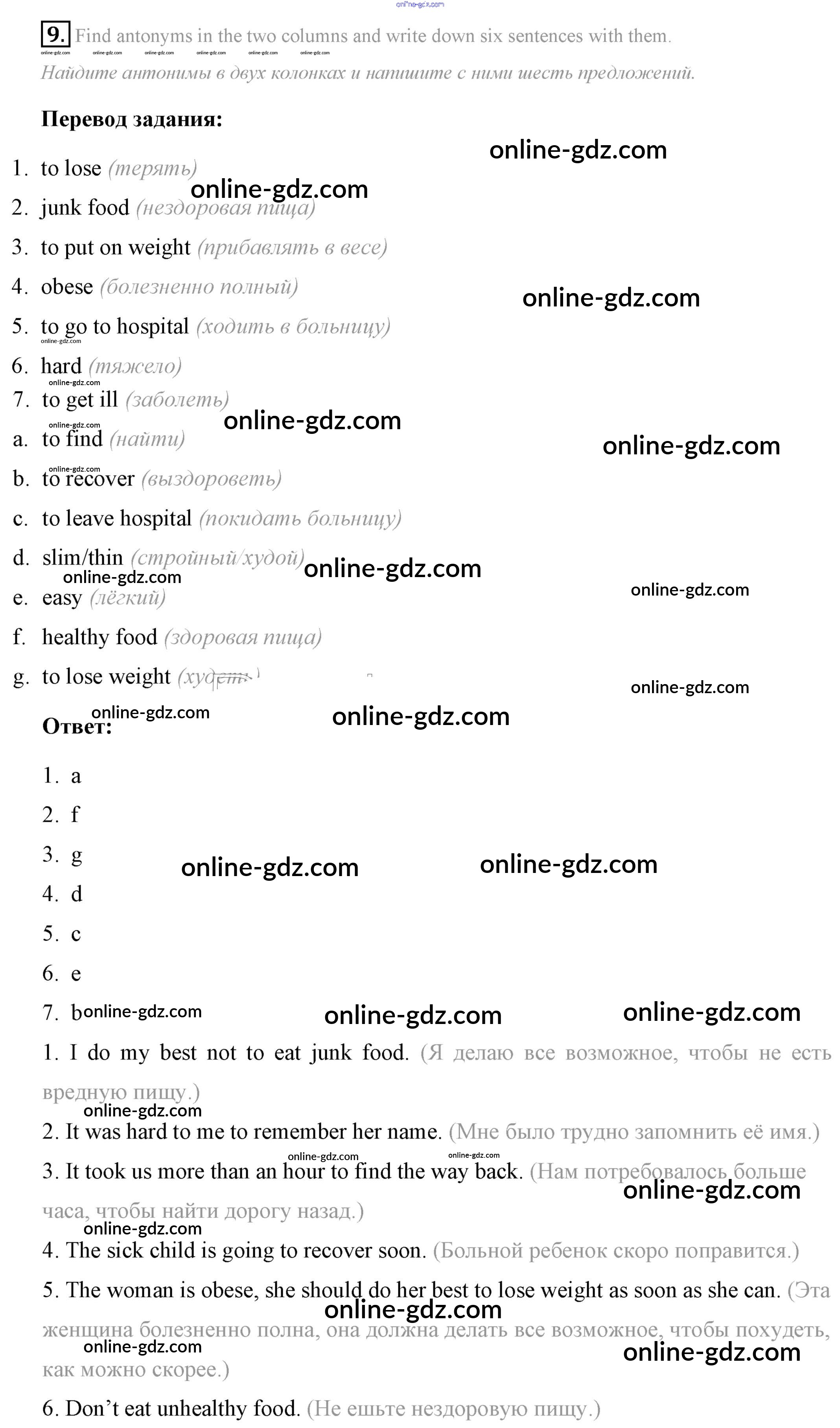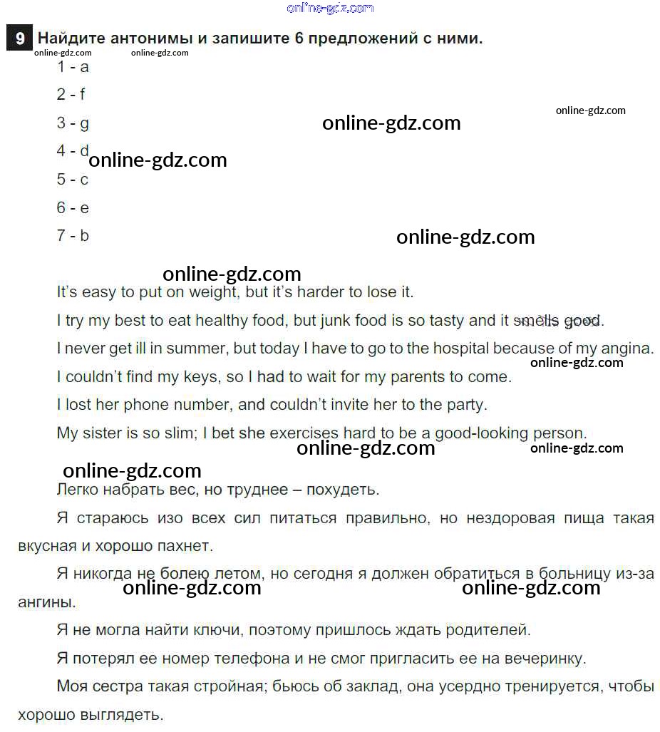 Готовые домашние задания по Английскому языку за 7 класс Учебник Афанасьева, Михеева Rainbow 2019 - Step 6 UNIT 6. LIVING HEALTHY. 9