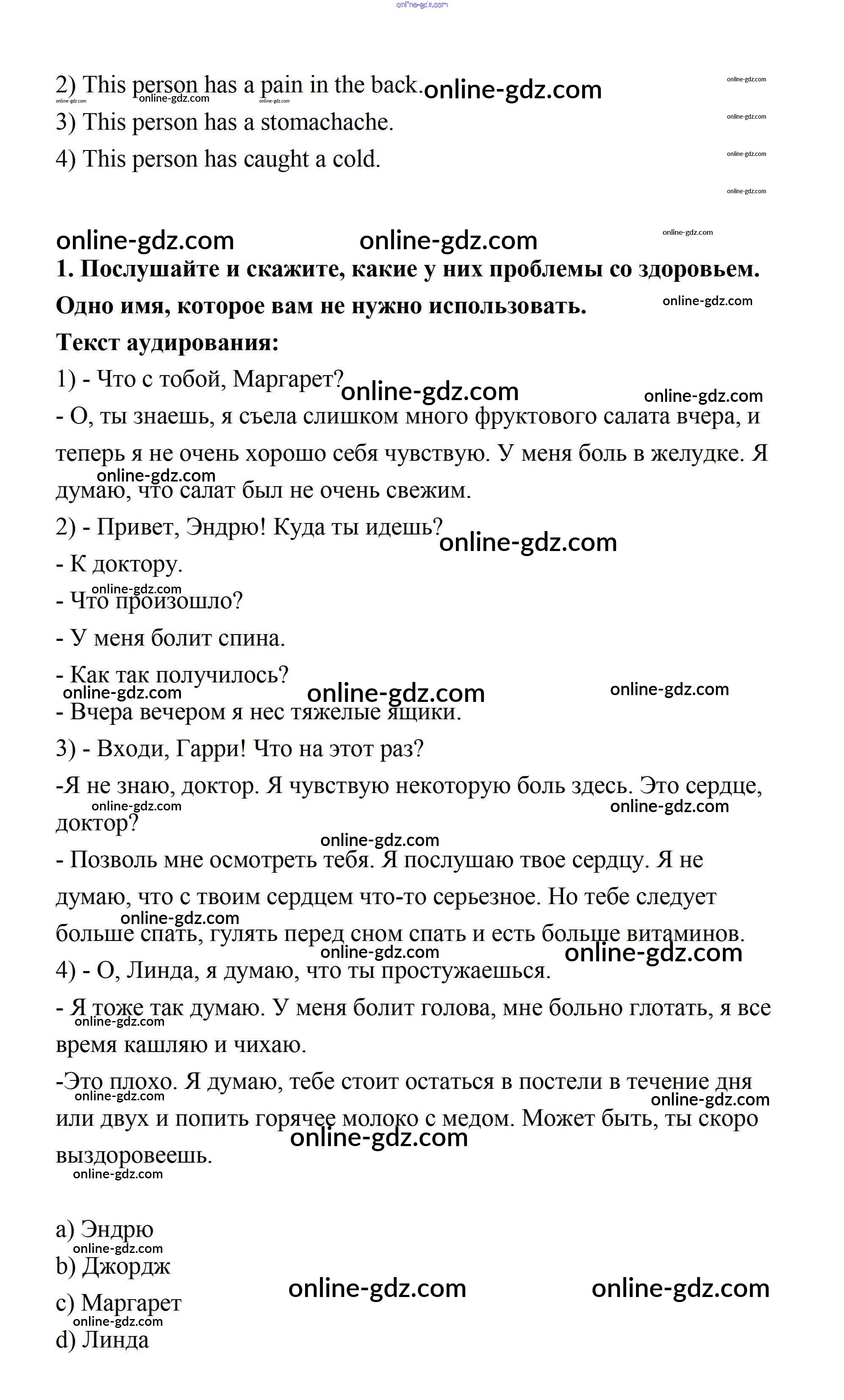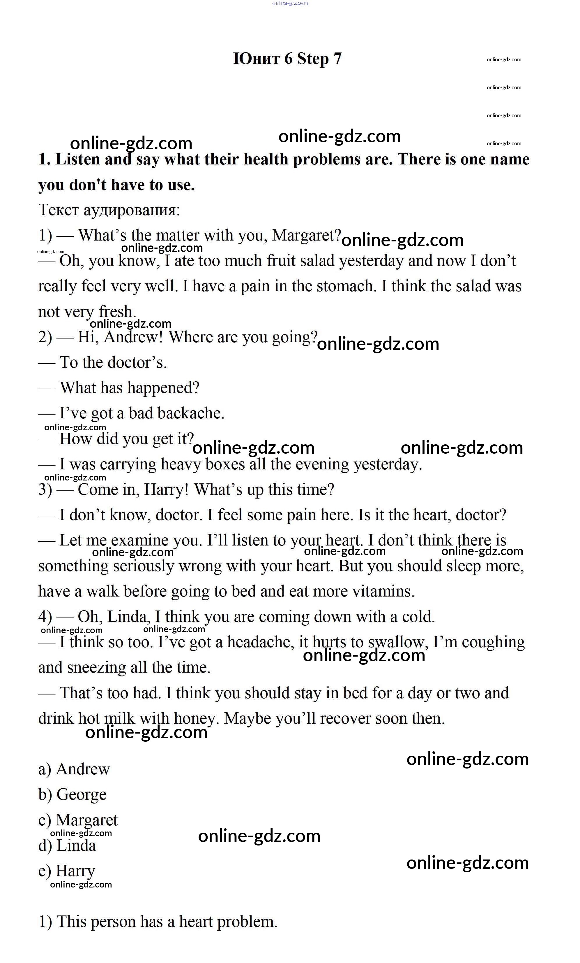 Готовые домашние задания по Английскому языку за 7 класс Учебник Афанасьева, Михеева Rainbow 2019 - Step 7 UNIT 6. LIVING HEALTHY. 1