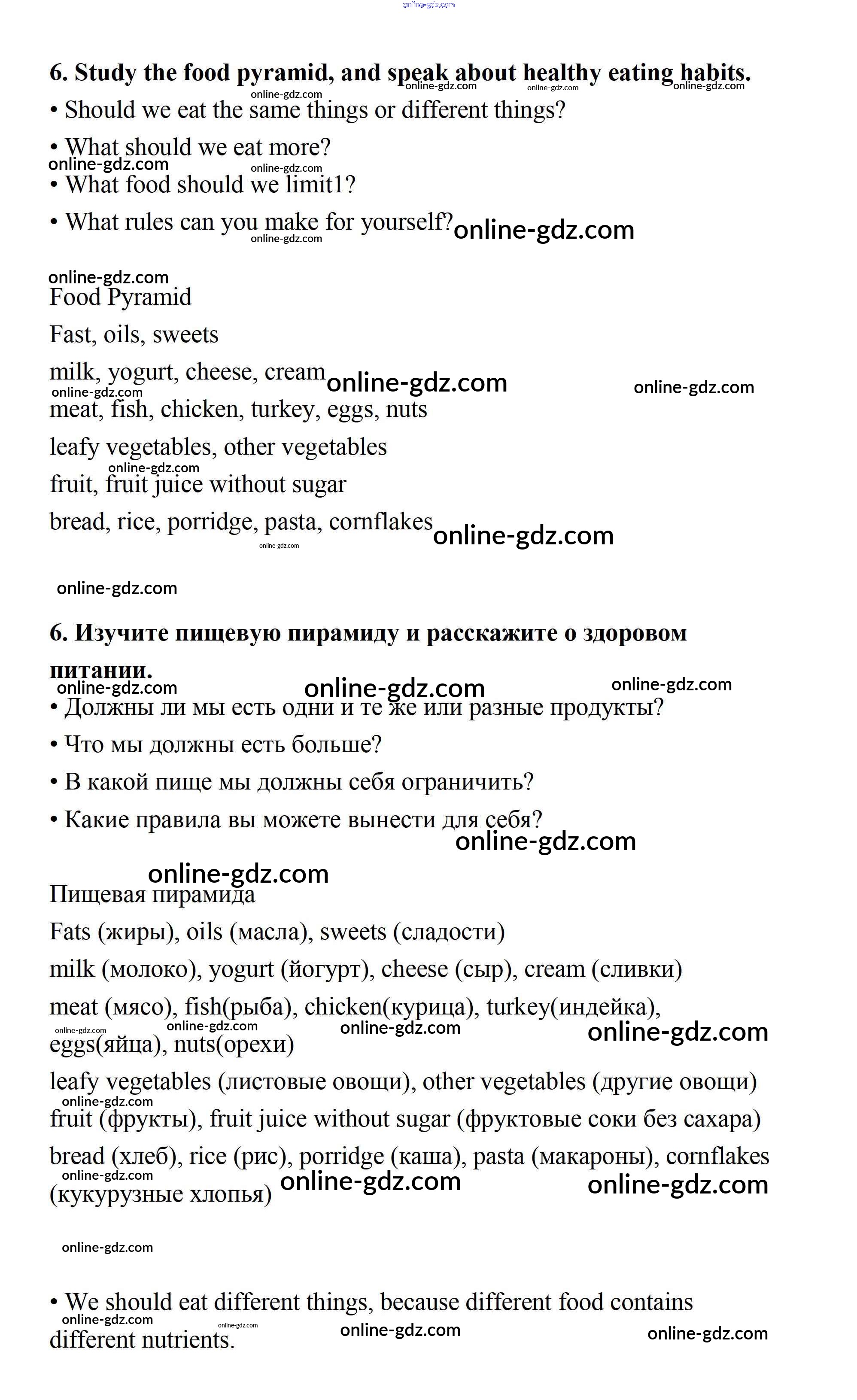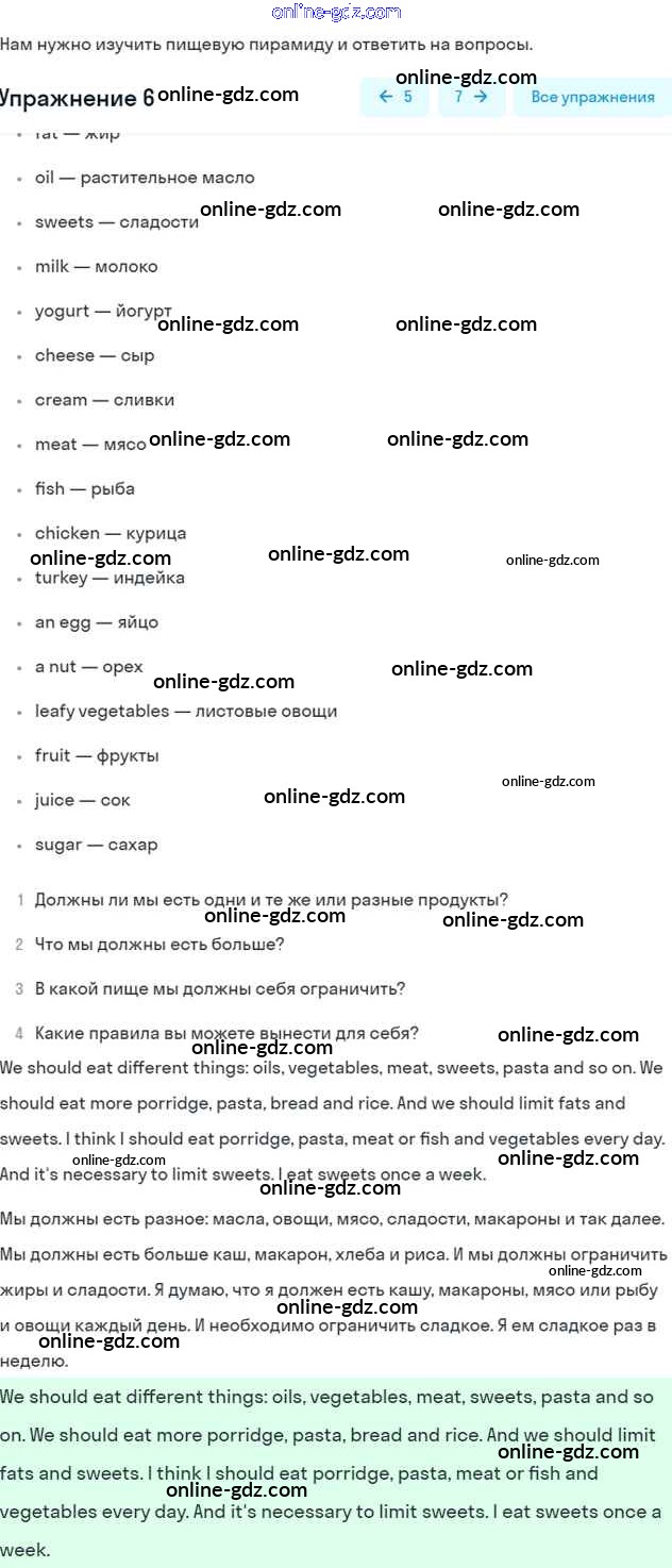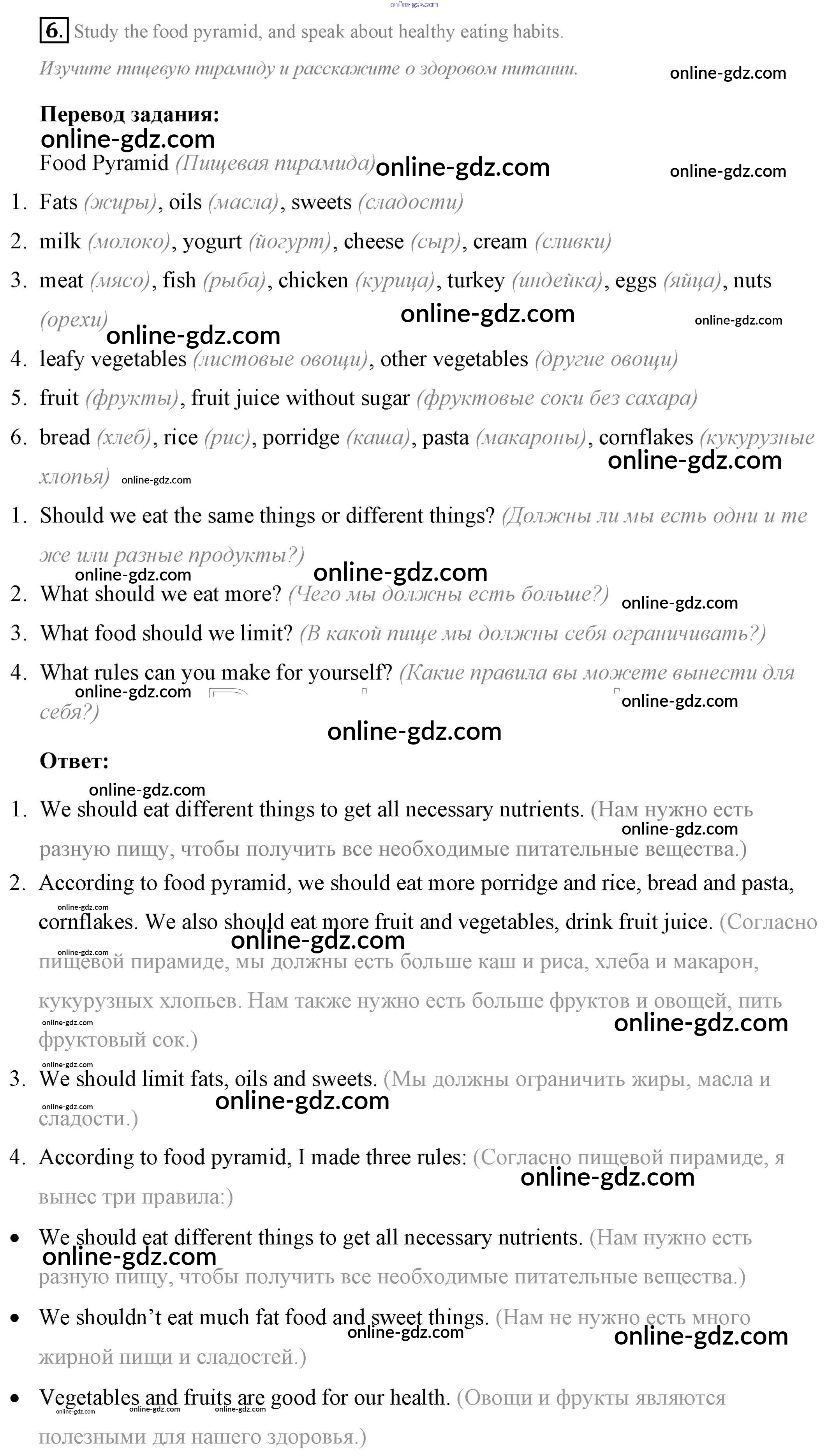 Готовые домашние задания по Английскому языку за 7 класс Учебник Афанасьева, Михеева Rainbow 2019 - Step 7 UNIT 6. LIVING HEALTHY. 6