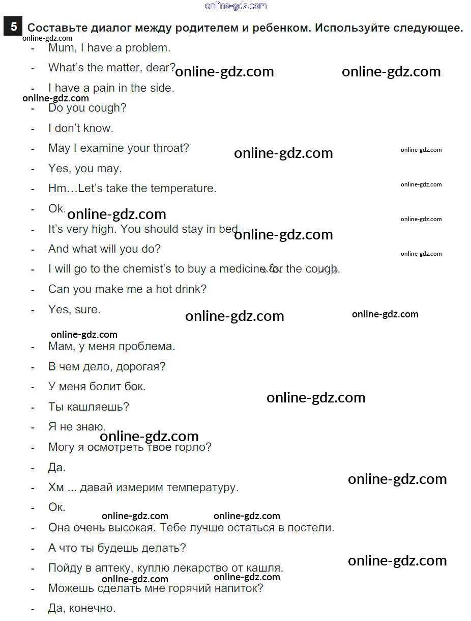 Готовые домашние задания по Английскому языку за 7 класс Учебник Афанасьева, Михеева Rainbow 2019 - Step 9 Consolidation Class: UNIT 6. LIVING HEALTHY. 5