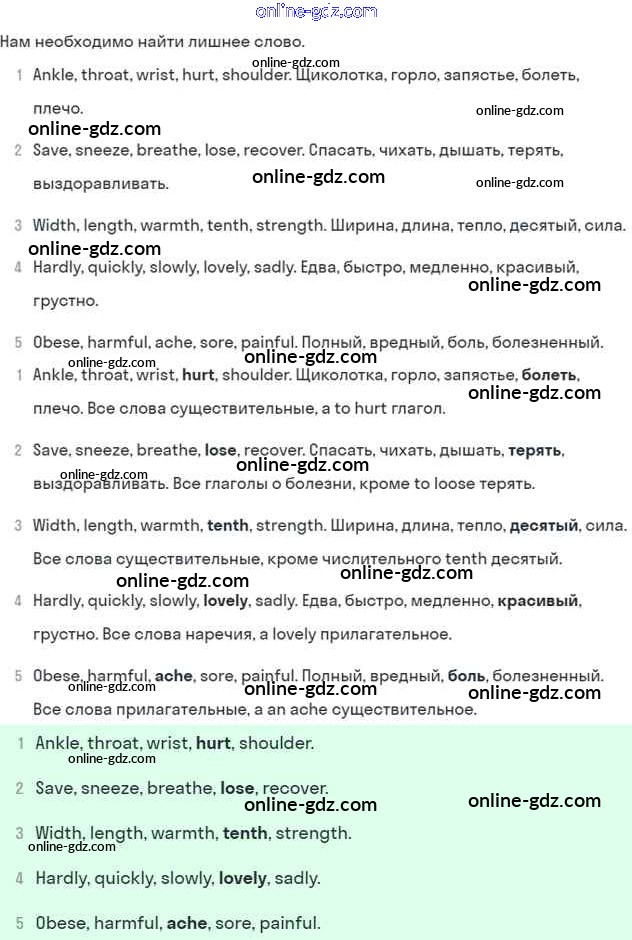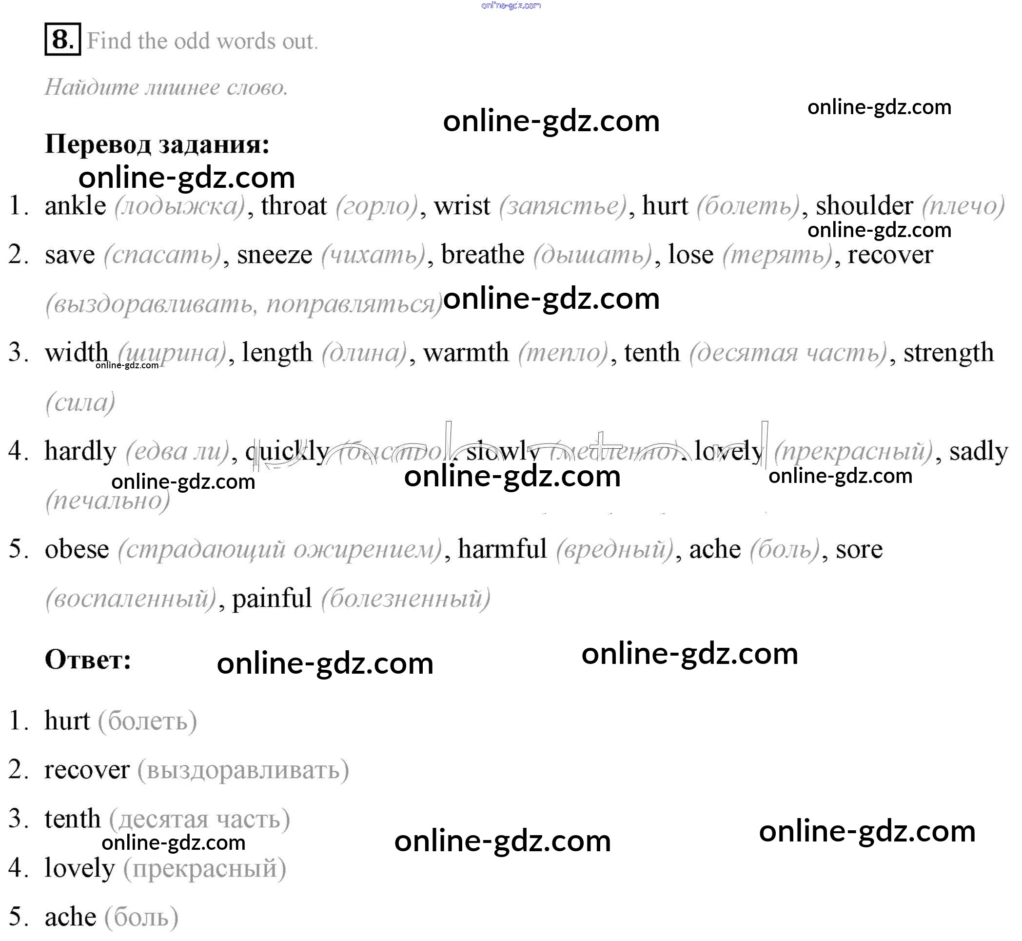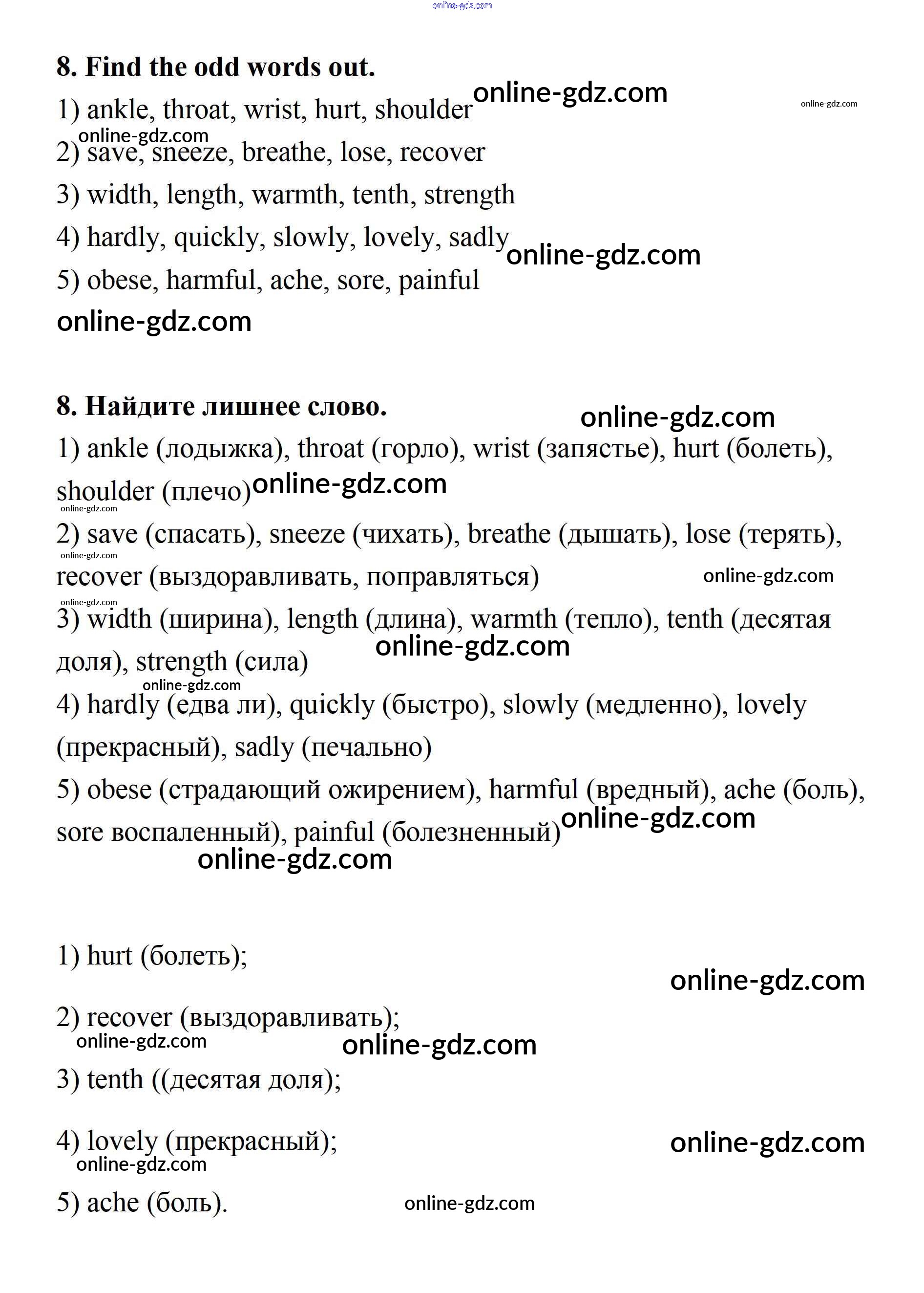 Готовые домашние задания по Английскому языку за 7 класс Учебник Афанасьева, Михеева Rainbow 2019 - Step 9 Consolidation Class: UNIT 6. LIVING HEALTHY. 8