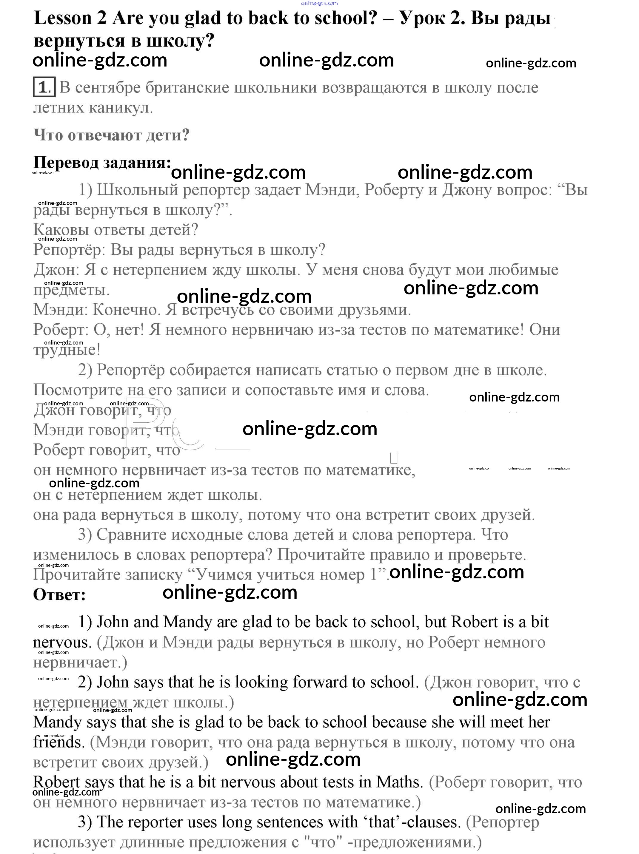 Готовые домашние задания по Английскому языку за 7 класс Учебник Кузовлев, Лапа УМК 2015 - Lesson 2 Unit 1. Are you happy at school? 1