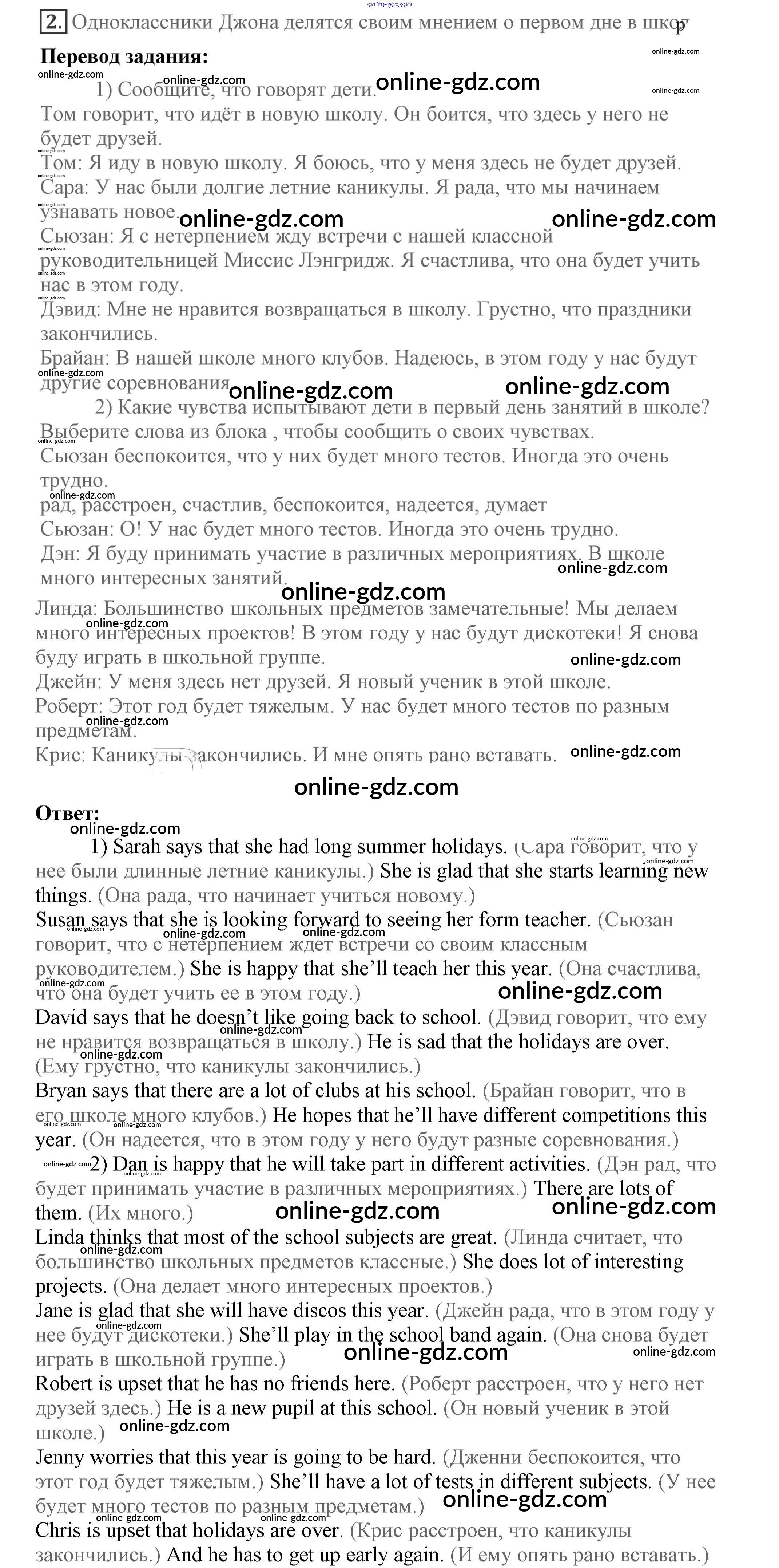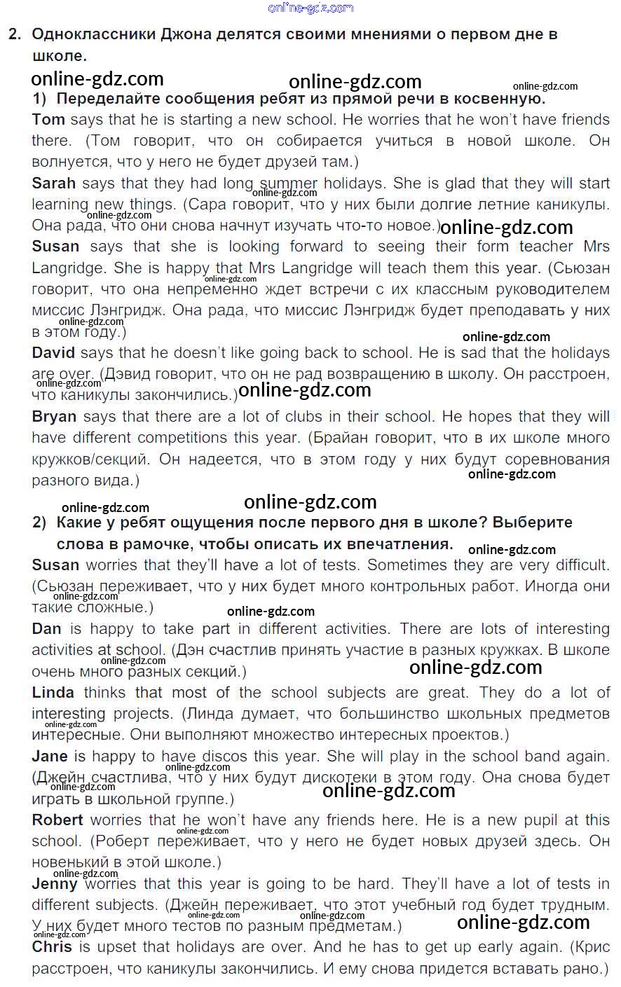 Готовые домашние задания по Английскому языку за 7 класс Учебник Кузовлев, Лапа УМК 2015 - Lesson 2 Unit 1. Are you happy at school? 2