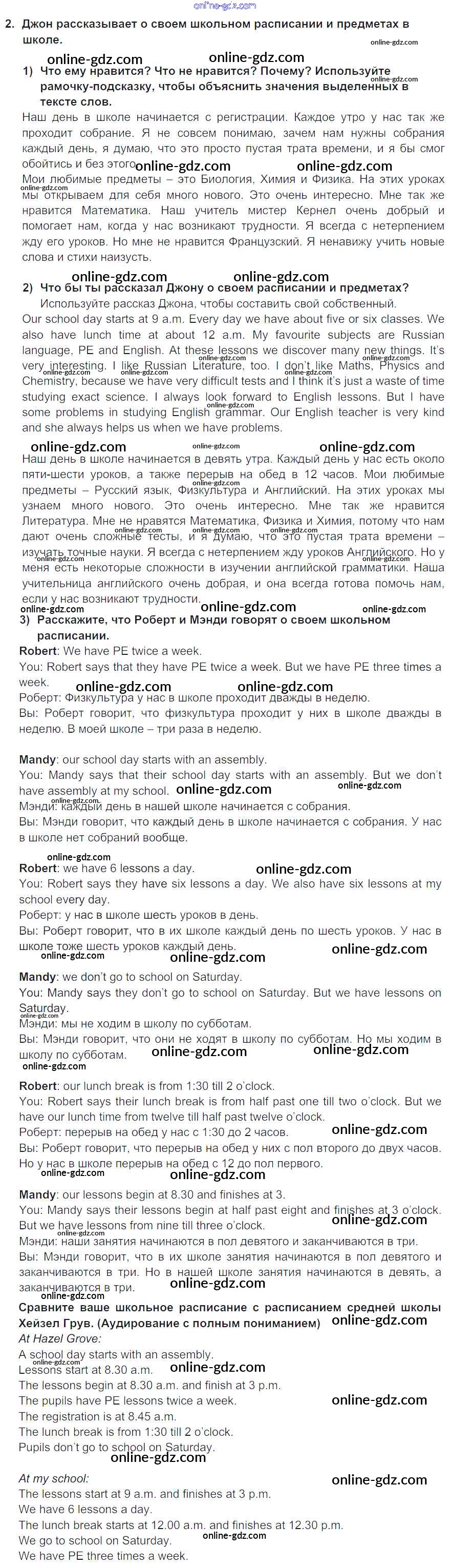 Готовые домашние задания по Английскому языку за 7 класс Учебник Кузовлев, Лапа УМК 2015 - Lesson 3 Unit 1. Are you happy at school? 2