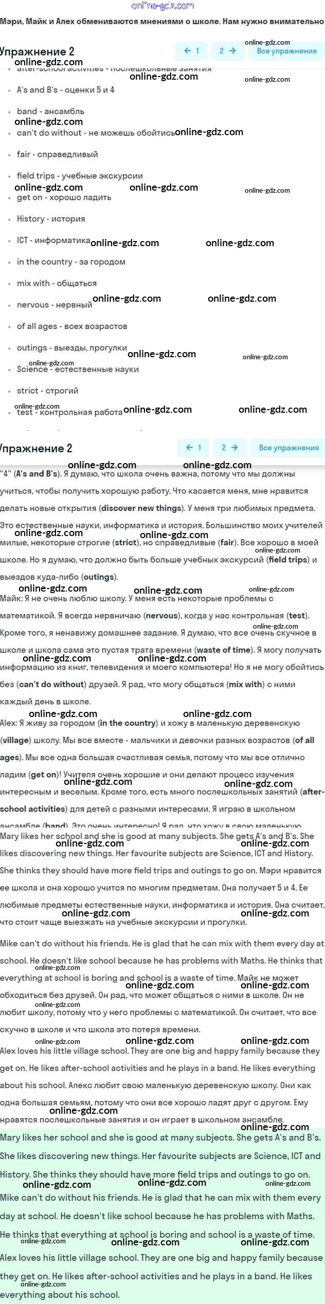 Готовые домашние задания по Английскому языку за 7 класс Учебник Кузовлев, Лапа УМК 2015 - Lesson 4 Unit 1. Are you happy at school? 2