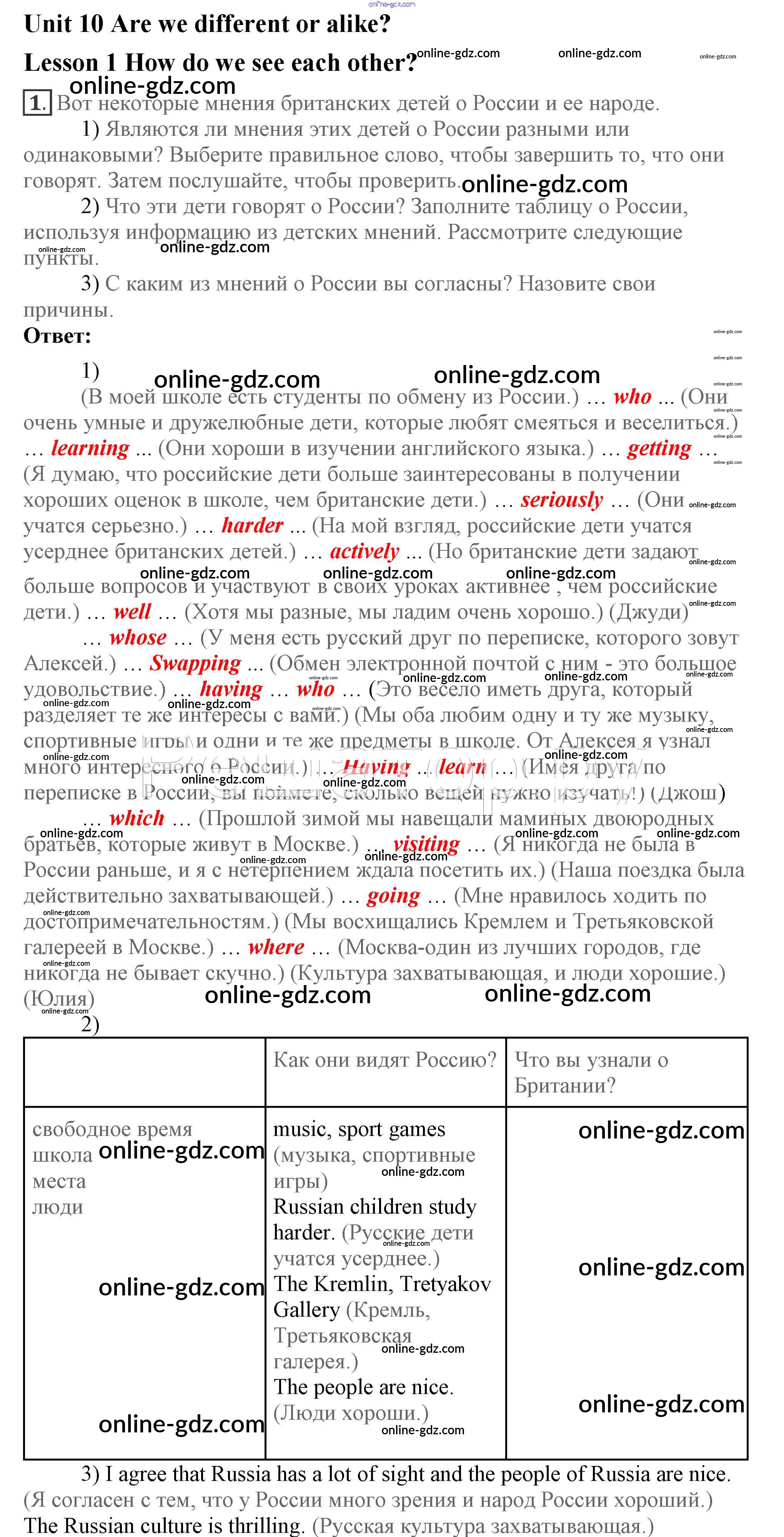 Готовые домашние задания по Английскому языку за 7 класс Учебник Кузовлев, Лапа УМК 2015 - Lesson 1 Unit 10. Are we different or alike? 1